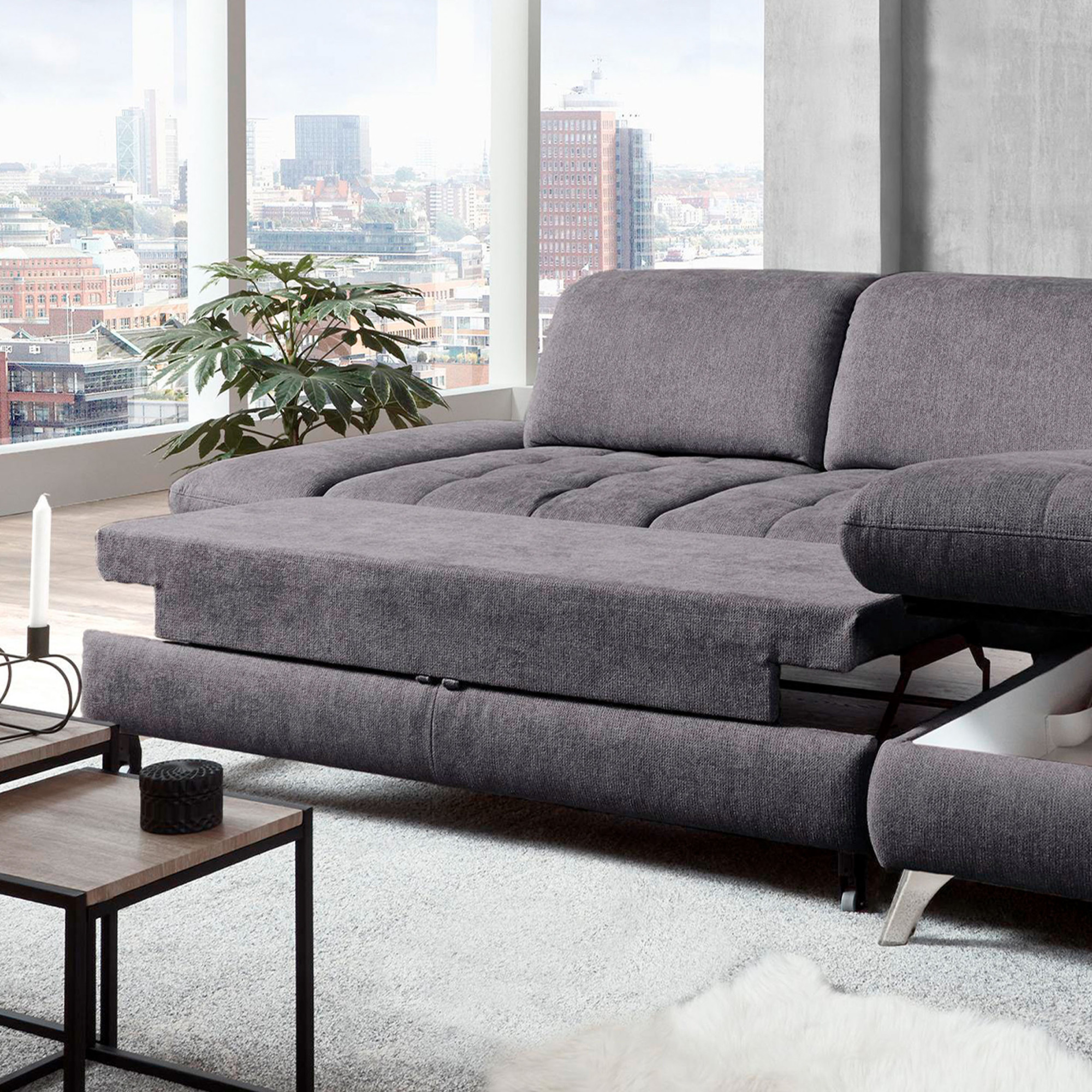 • Stauraum und Ausziehfunktion für Gäste
