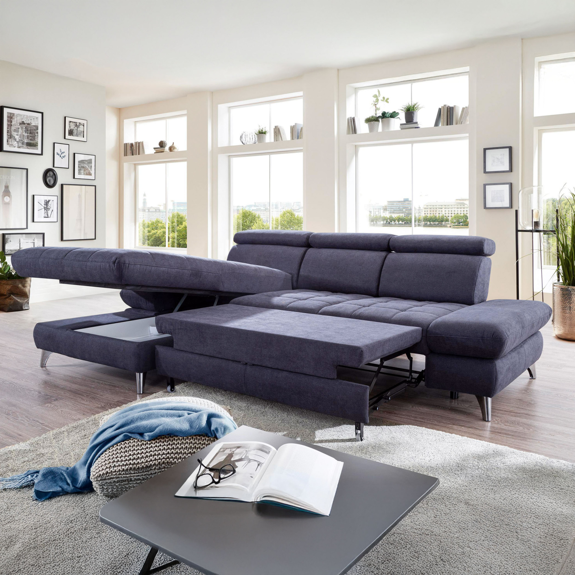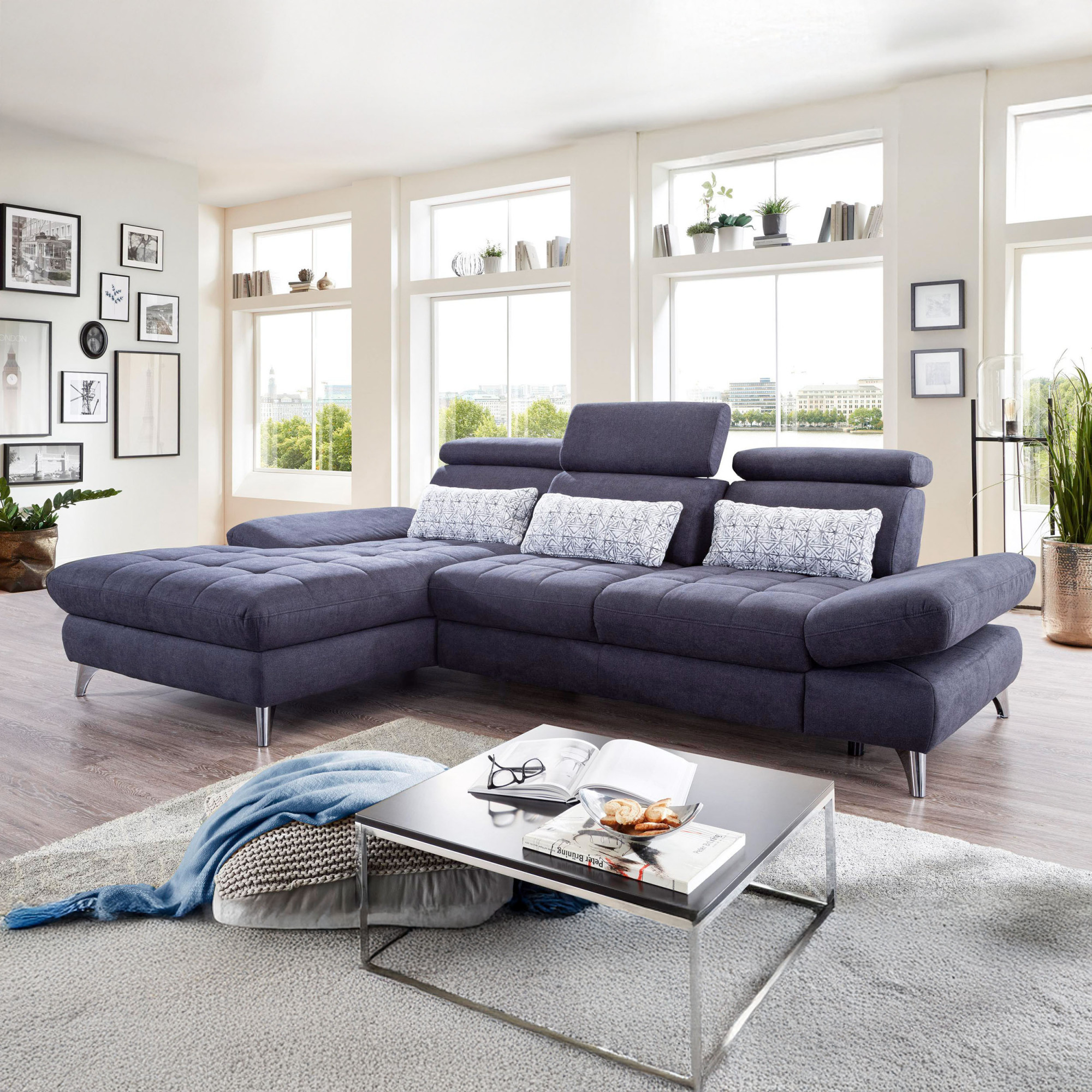 Ecksofa Karolina L-Form Stoff dunkelgrau mit Metallbeinen