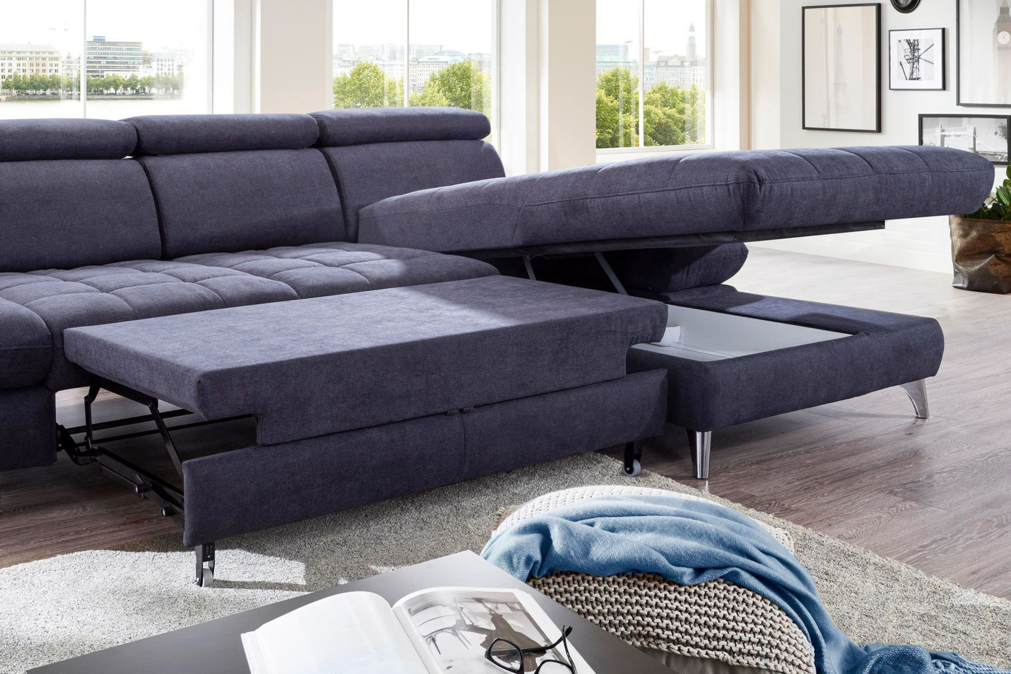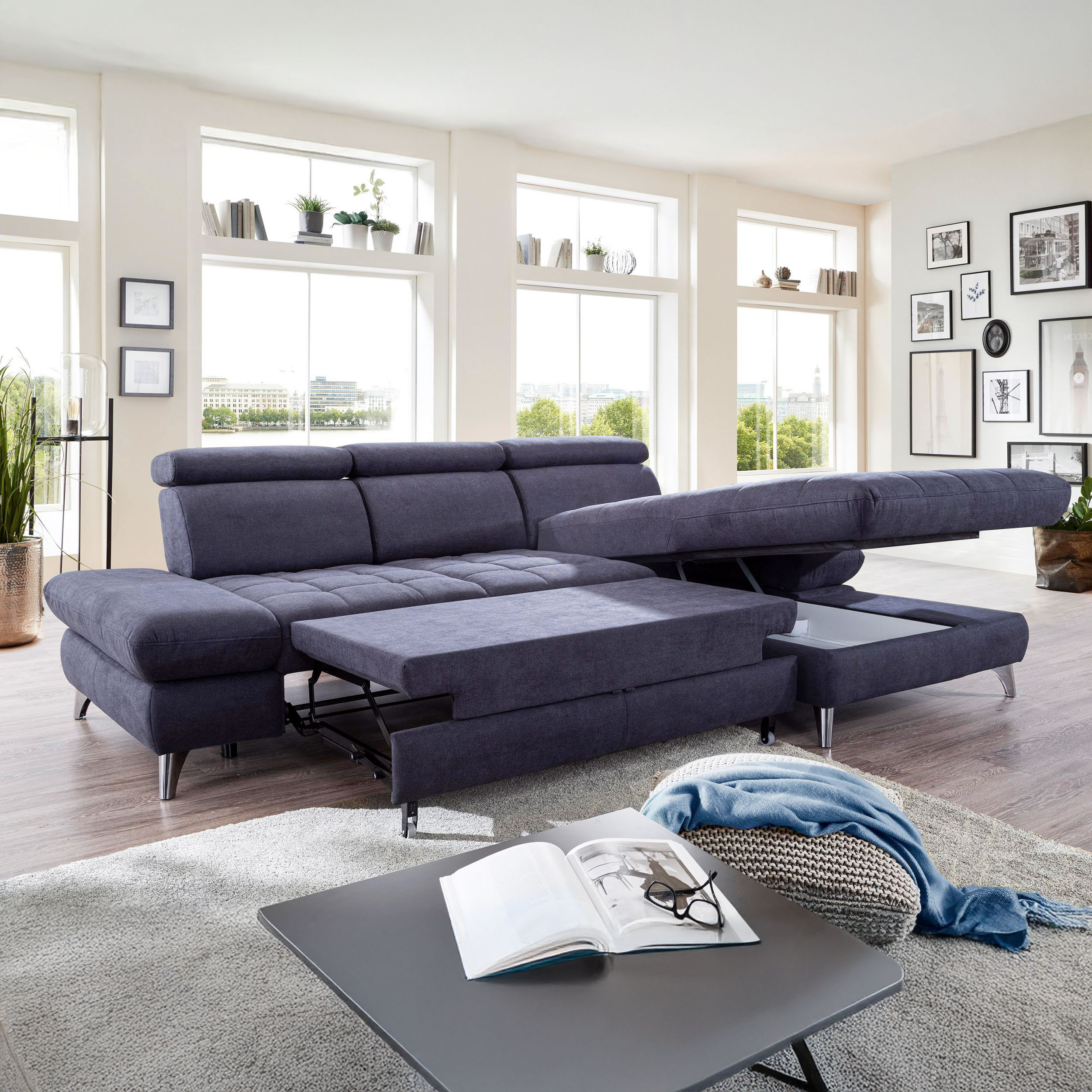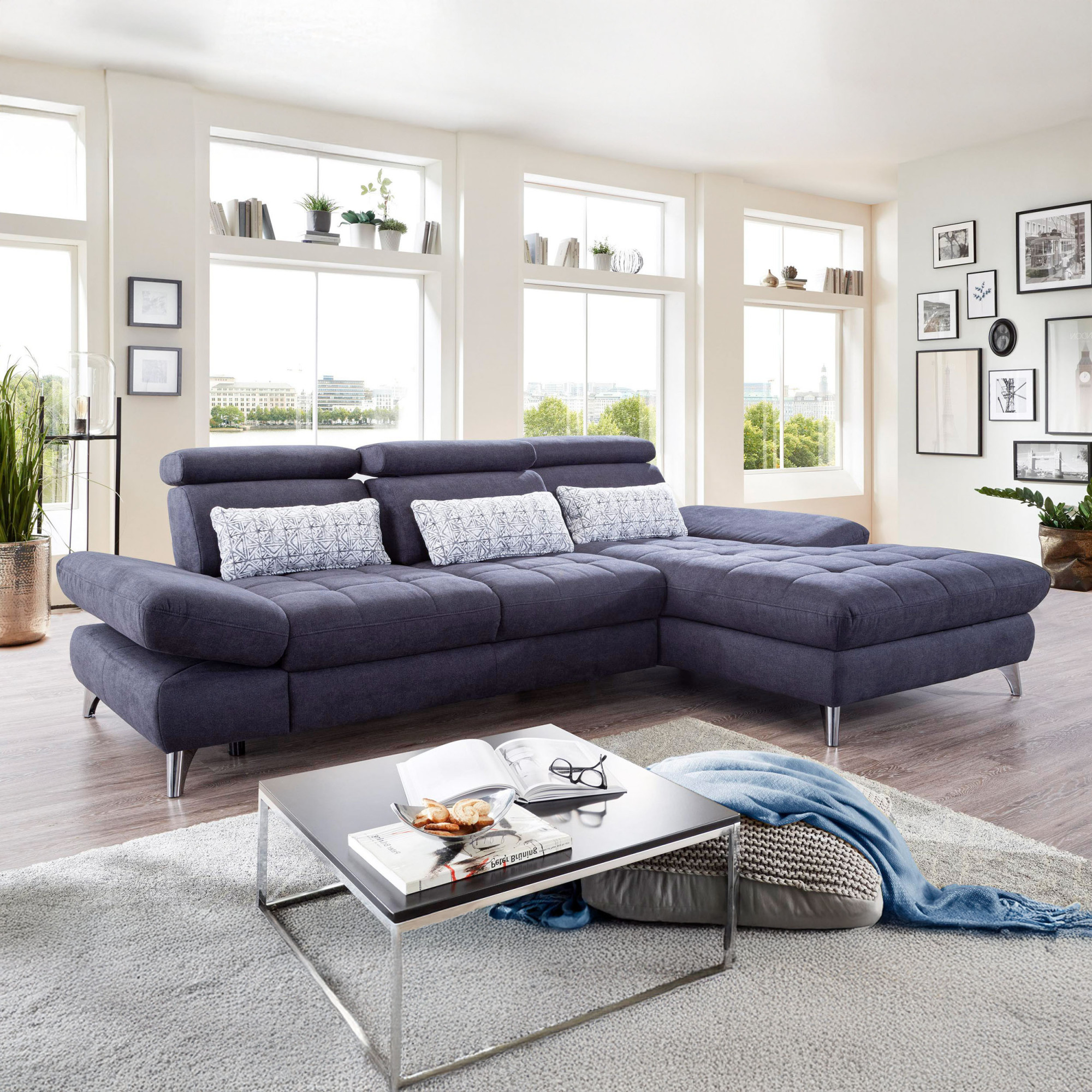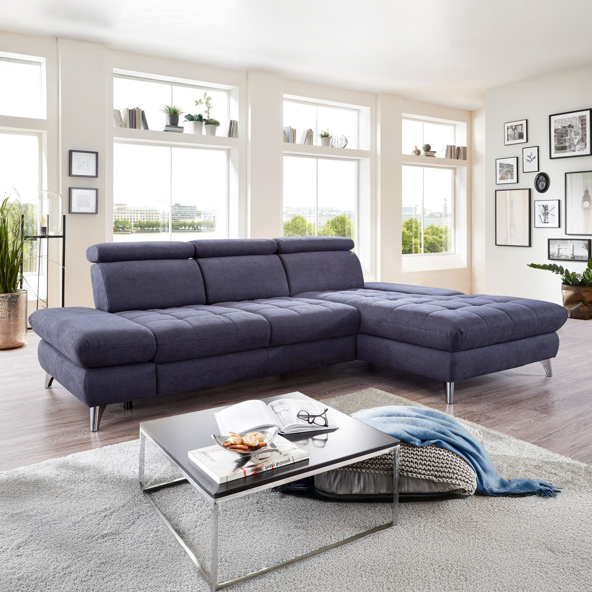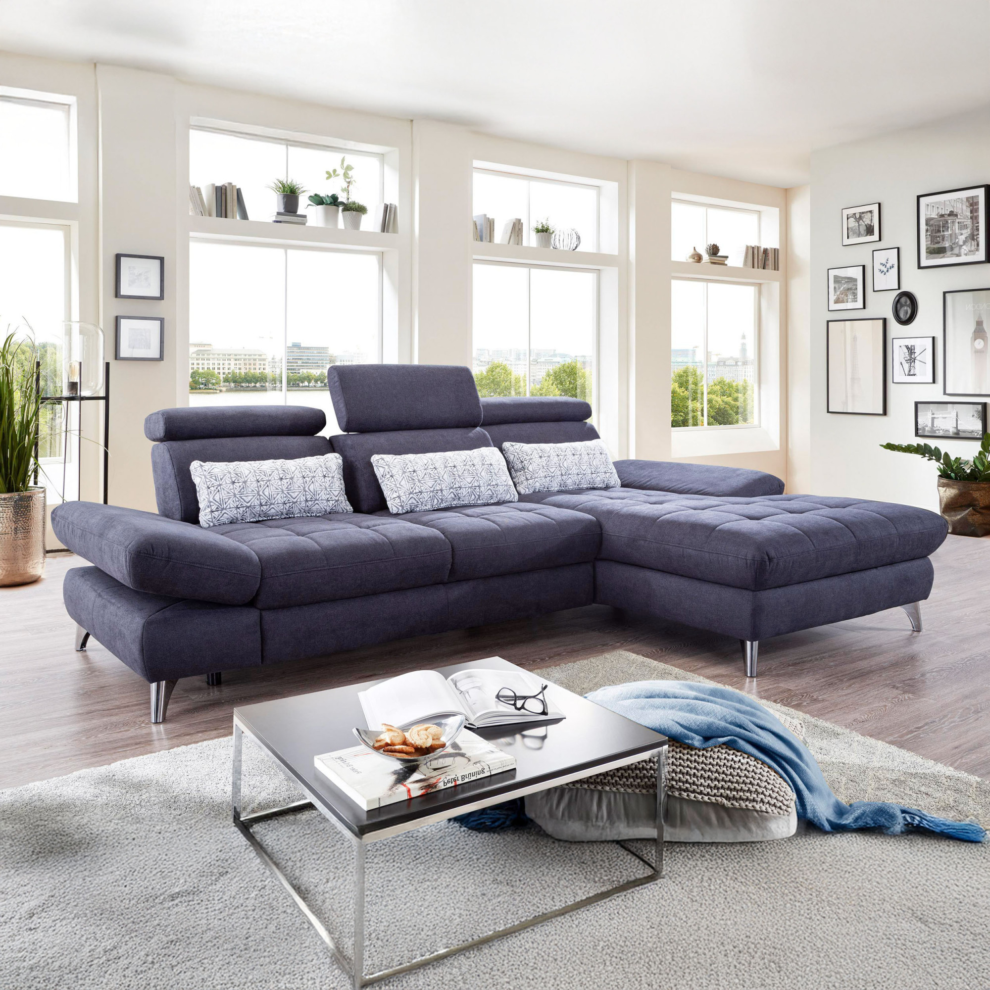 Ecksofa Stoff dunkelgrau L-Form mit Metallbeinen chrom