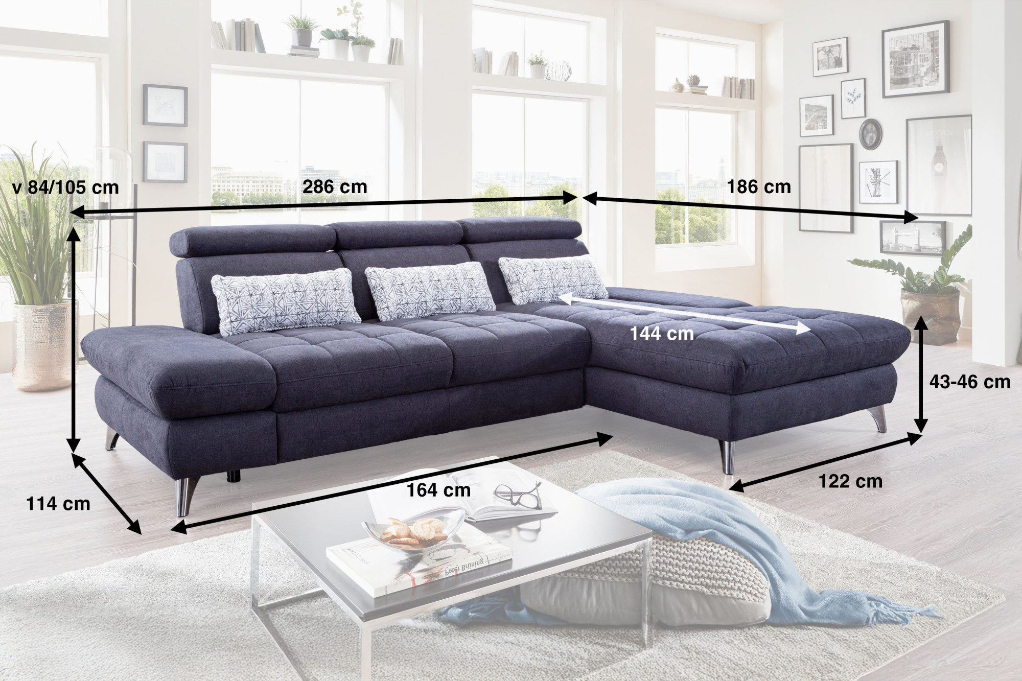 Das angezeigte Modell 7090_68_FKT hat Länge 286 cm a Liegestuhl 186 cm. Ecke rechts.