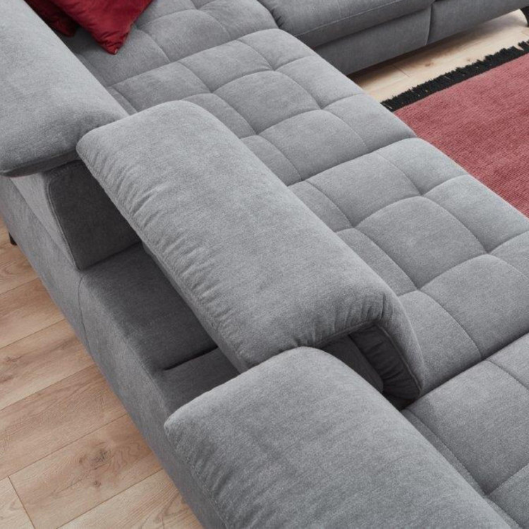 Basis-Modell bietet eine verstellbare Sitzhöhe an für maximalen Komfort, mit der Möglichkeit, viele weitere Funktionen gegen Aufpreis hinzuzufügen. Stellen Sie sich vor, Sie könnten Funktionen wie Schlafmodus, Stauraum im Longchair oder Ottoman, verstellbare Armlehnen und Kopfstützen hinzufügen.. Außerdem können Sie aus mehreren Arten von Beinen und Farben wählen, die an Ihre persönlichen Vorlieben angepasst werden können, um perfekt in Ihr Interieur zu passen. Die Stoffversion der Sitzgarnitur kann zweifarbig sein., was es ermöglicht, ein einzigartiges und stilvolles Aussehen zu schaffen.