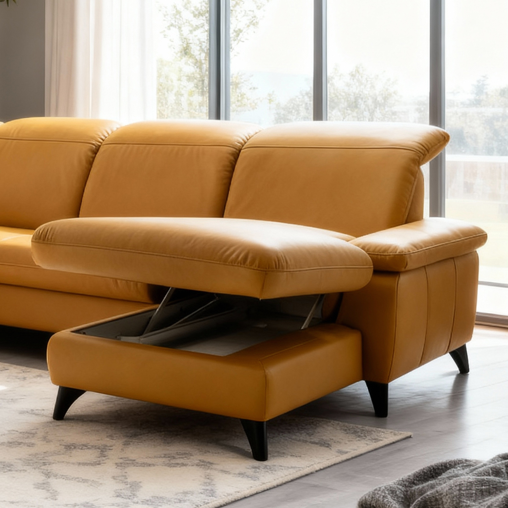 Die Funktionen des Sitzes sind ebenfalls optional – Sie können wählen Einstellung der Kopfstützen, , Speicherplatz, , Funktion des Schlafes, , Sitzhöhe oder sogar TV Neigungsfunktion. Jedes Detail ist so durchdacht, dass es Ihnen maximalen Komfort bietet und sich Ihrem Lebensstil anpasst. Es ist auch möglich, auszuwählen Taschenfederkernpolsterung der Sitzflächen für noch höheren Komfort und ergonomische Unterstützung des Körpers.