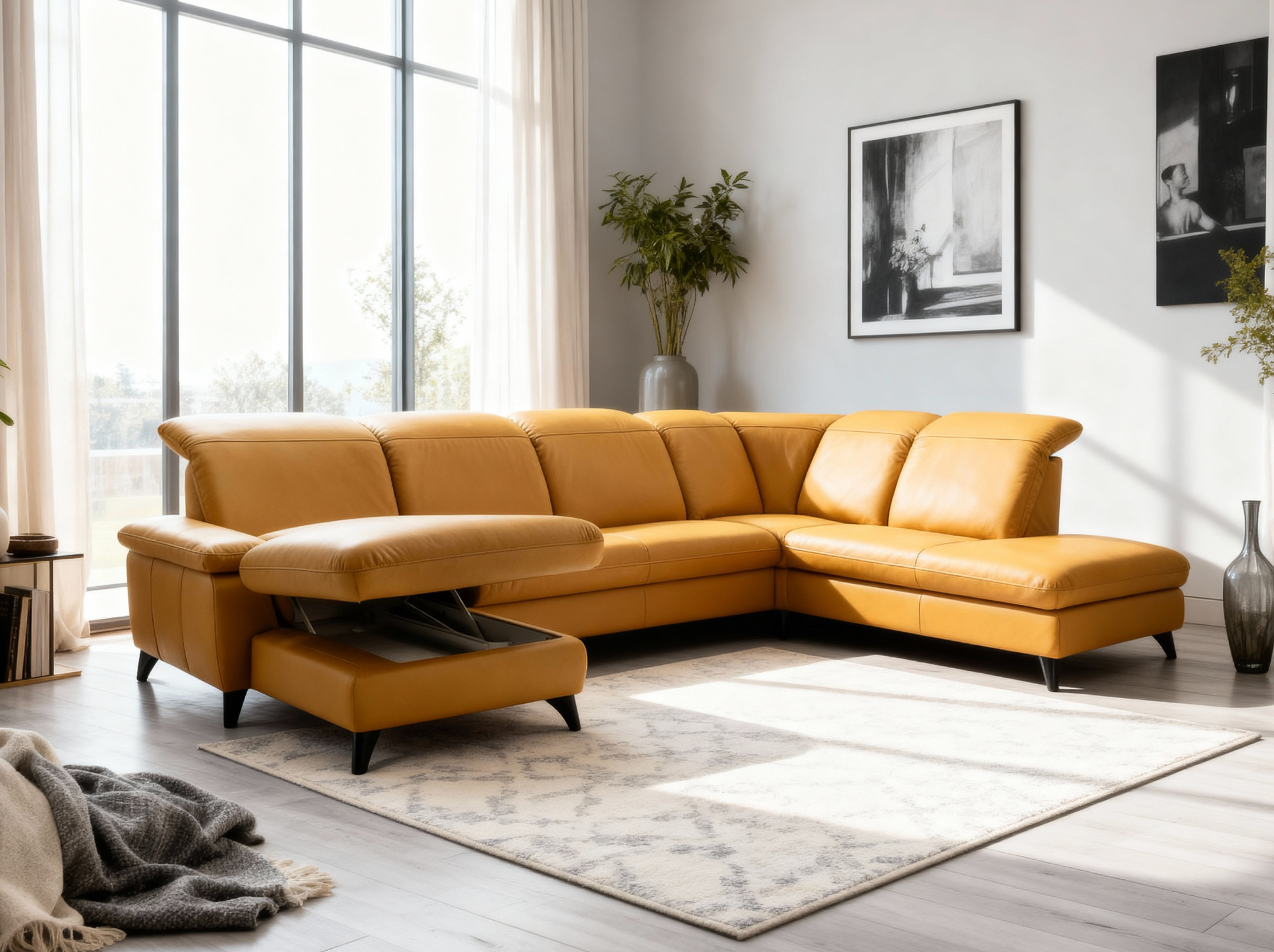 Luxuriöse Ledersitzgarnitur Magma in U-Form – Planungs-Sitzgarnitur