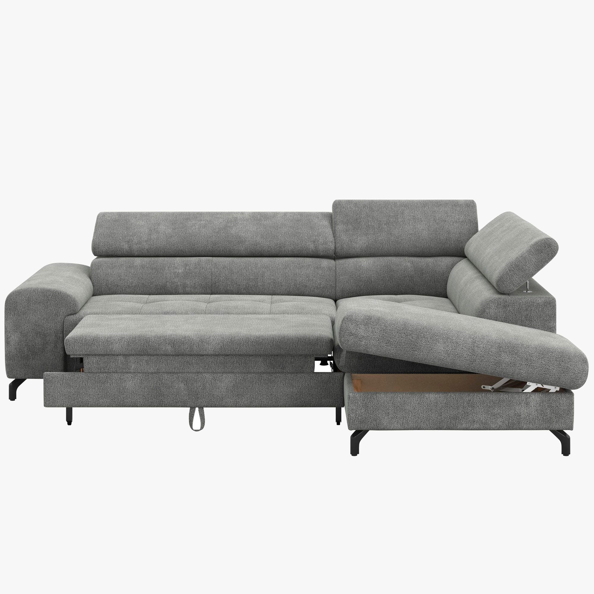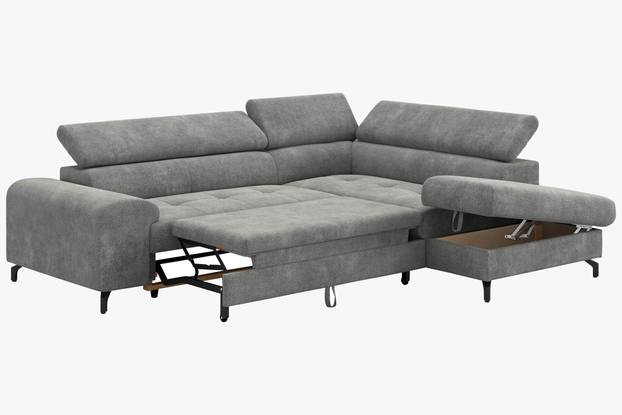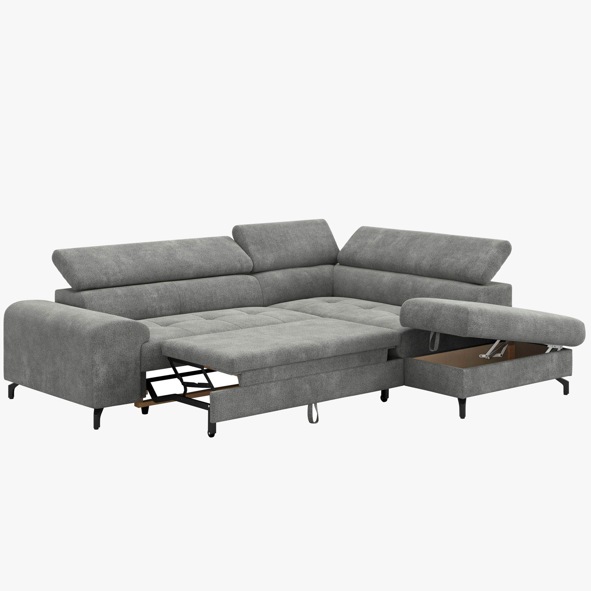 Ecksofa mit Schlaffunktion und Stauraum rechts Platinfarben