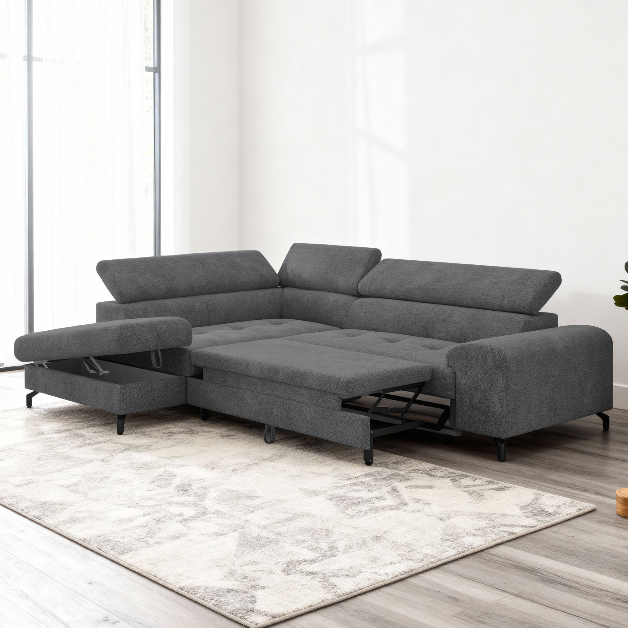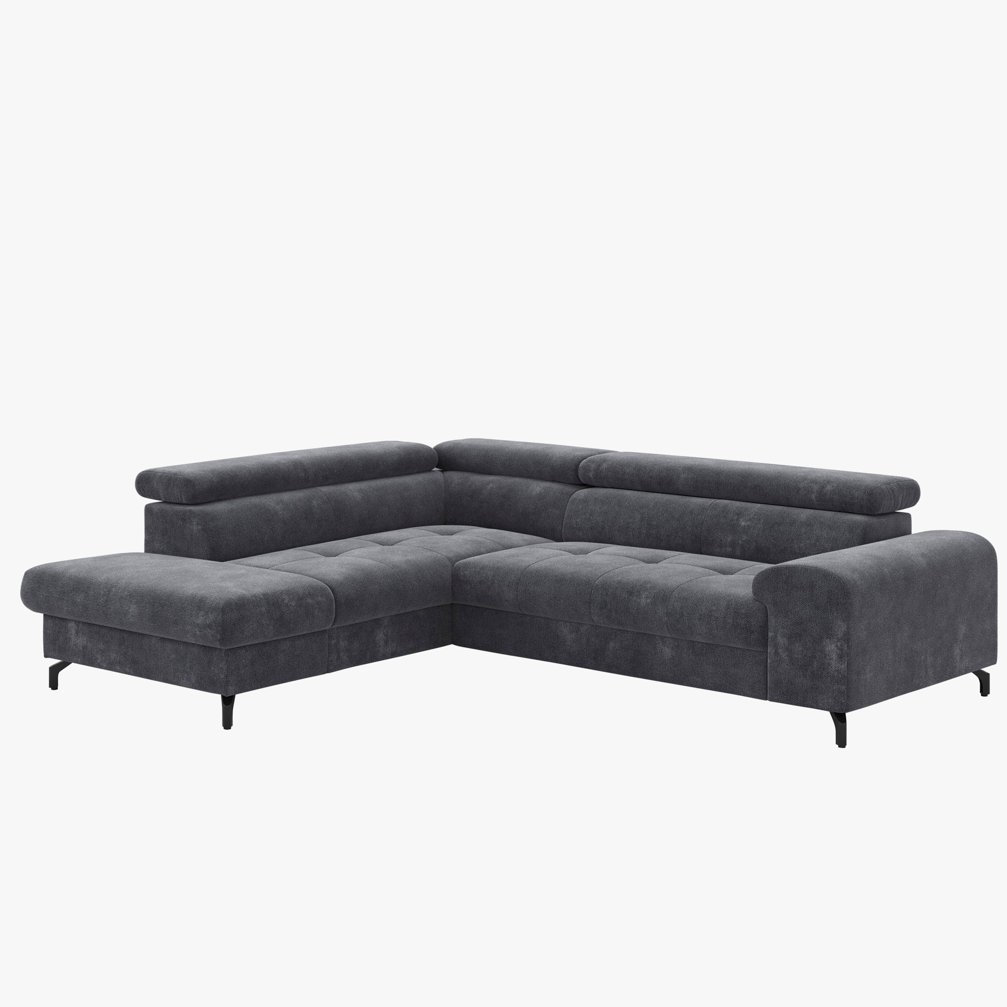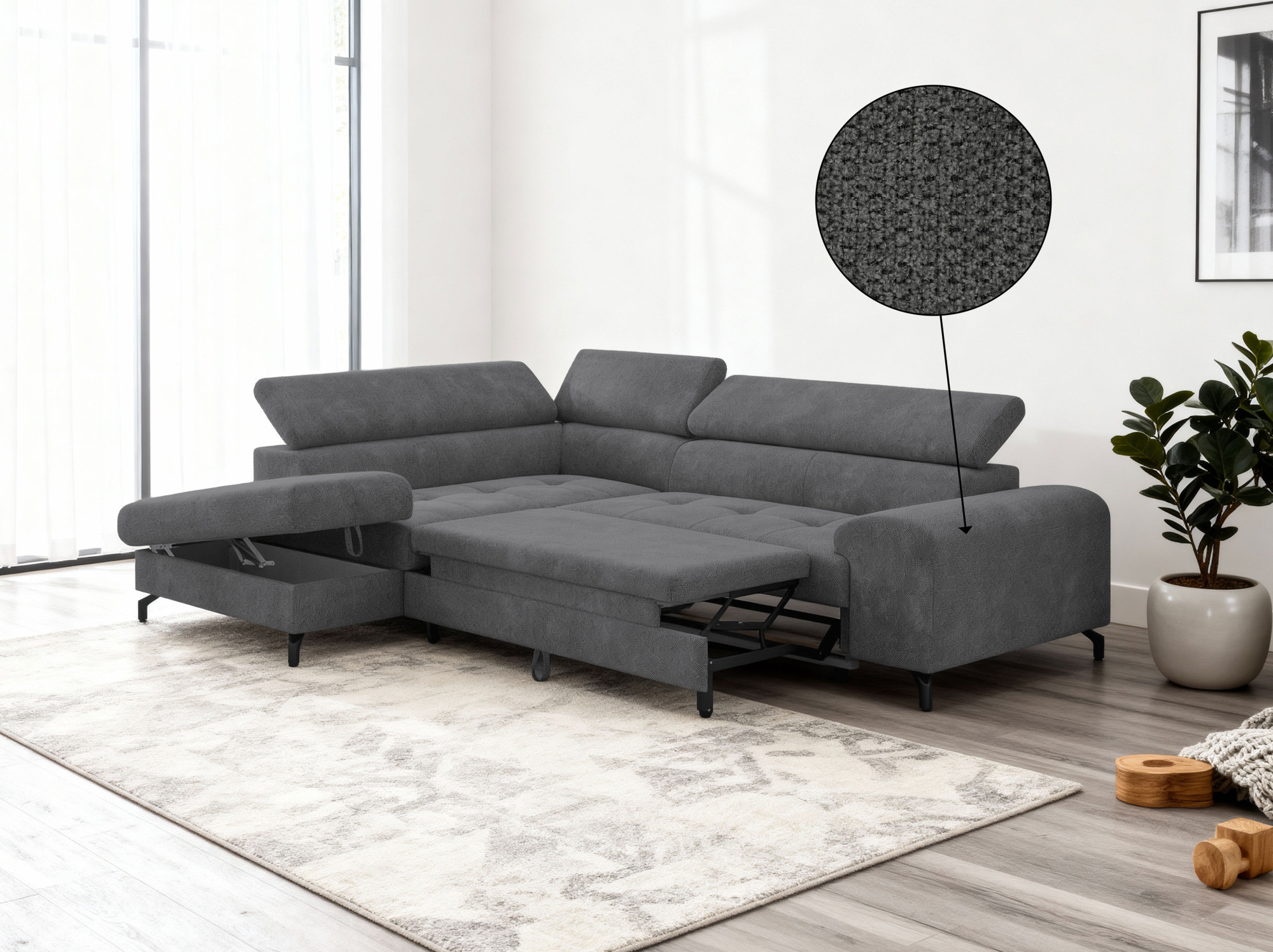 Ecksofa mit Schlaffunktion und Stauraum links Kohlefarben