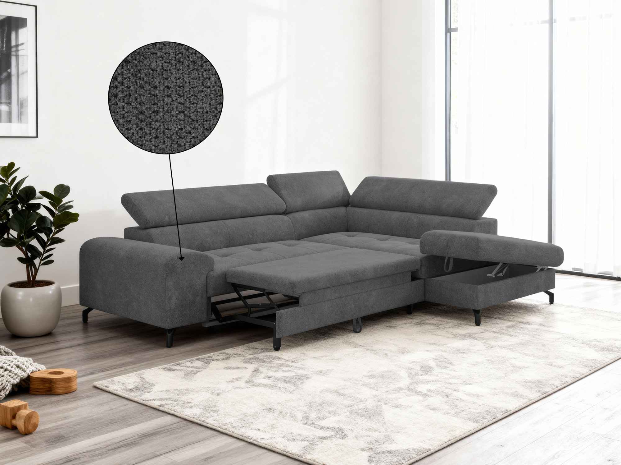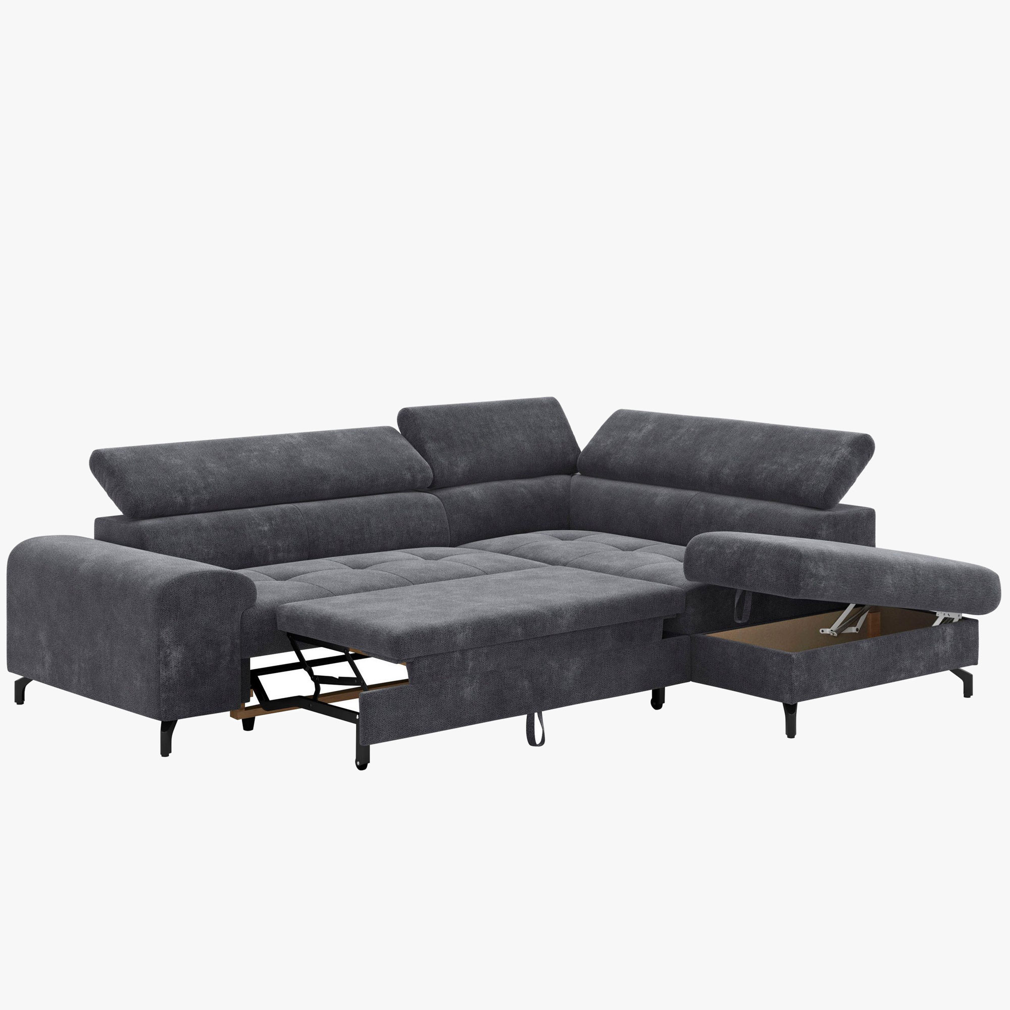 Ecksofa mit Schlaffunktion und Stauraum rechts, Farbe Coal