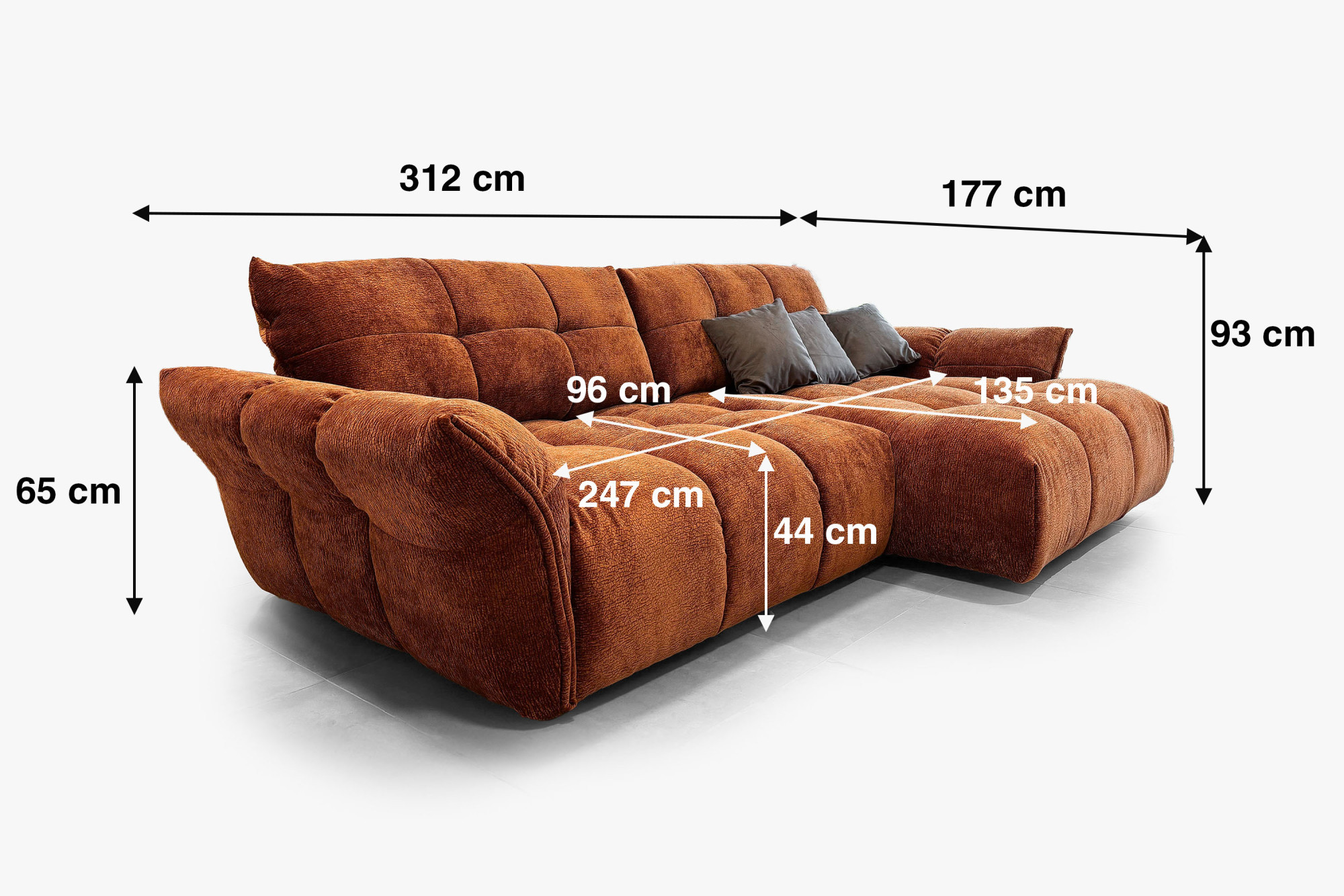 Die moderne Sitzgarnitur Tino ist die ideale Wahl für Haushalte, die maximalen Komfort, Funktionalität und hochwertige Verarbeitung zu einem erschwinglichen Preis suchen. Dank der breiten und weichen Sitzfläche ist dieses Sofa hervorragend für tägliche Entspannung, Faulenzen und Fernsehen geeignet. Nach dem Entfernen der Rückenkissen entsteht eine komfortable Schlaffläche von 245 × 117 cm, die sich für regelmäßiges Schlafen eignet. Das Sofa Tino ist aus Hartholz und Kiefernholz konstruiert, was hohe Stabilität und Langlebigkeit garantiert. Hochwertige Füllungen, Federn und Schaumstoffschichten bieten auch bei langfristiger Nutzung optimalen Halt.