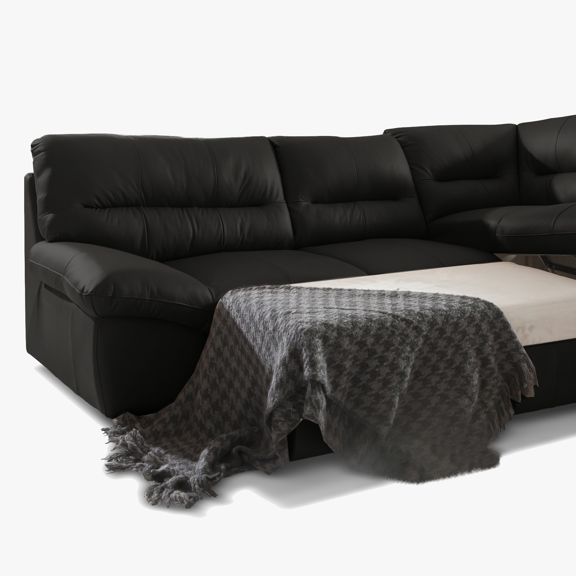 Ecksofa aus echtem schwarzem Leder, 3-Sitzer