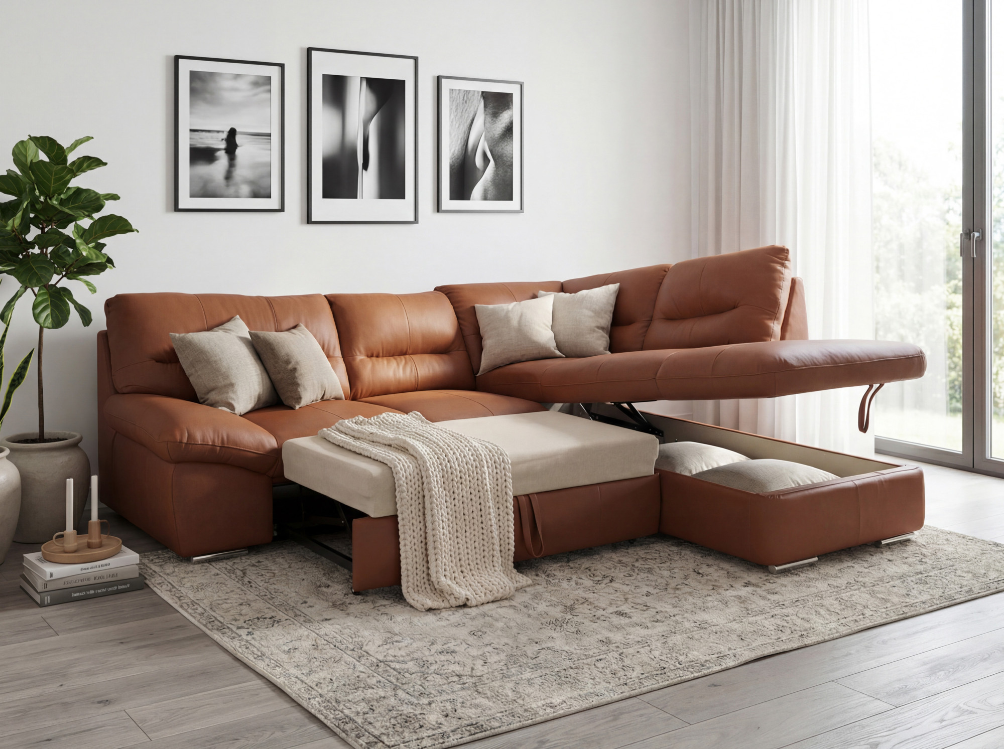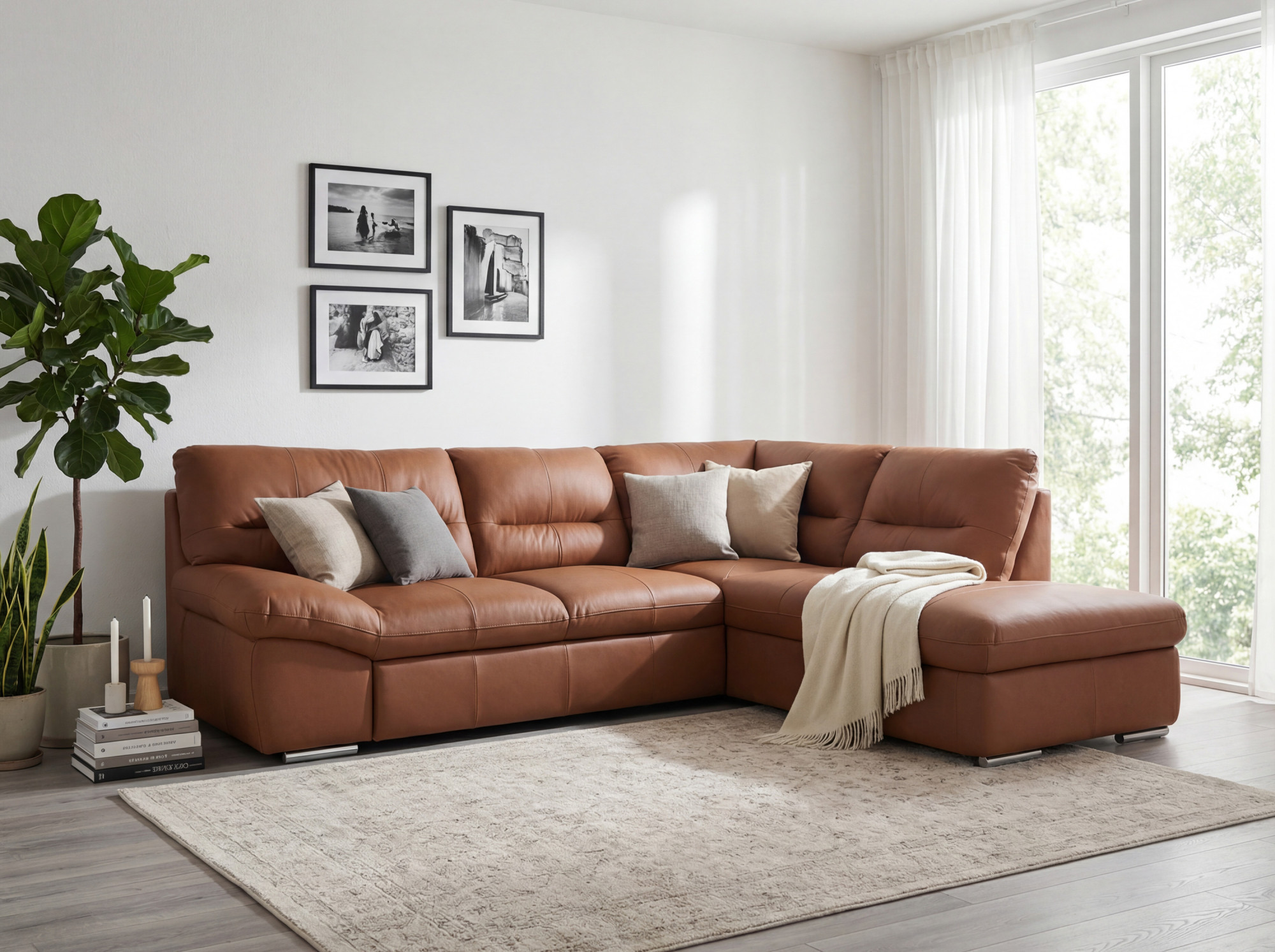 Diese Eck-Sitzgarnitur – Echtleder ist die perfekte Kombination aus Stil, Praktikabilität und Komfort. Sie besteht aus erstklassigen Materialien, die Langlebigkeit garantieren und zugleich großzügiges Sitzen für Familie und Gäste bieten. Wenn Sie in Ihrem Wohnzimmer eine elegante Dominante wünschen, die gleichzeitig praktische Stauraumlösungen und eine Ausklappfunktion bietet, zögern Sie nicht. Unser Familienunternehmen ist seit 1993 am Markt und bedient jährlich über 50.000 Kunden in der gesamten EU. Wir verfügen auch über eine eigene Logistik, sodass wir für eine sichere und schnelle Lieferung bis zu Ihnen nach Hause sorgen. Bestellen Sie dieses Sofa noch heute und genießen Sie Luxus und Komfort in einem!