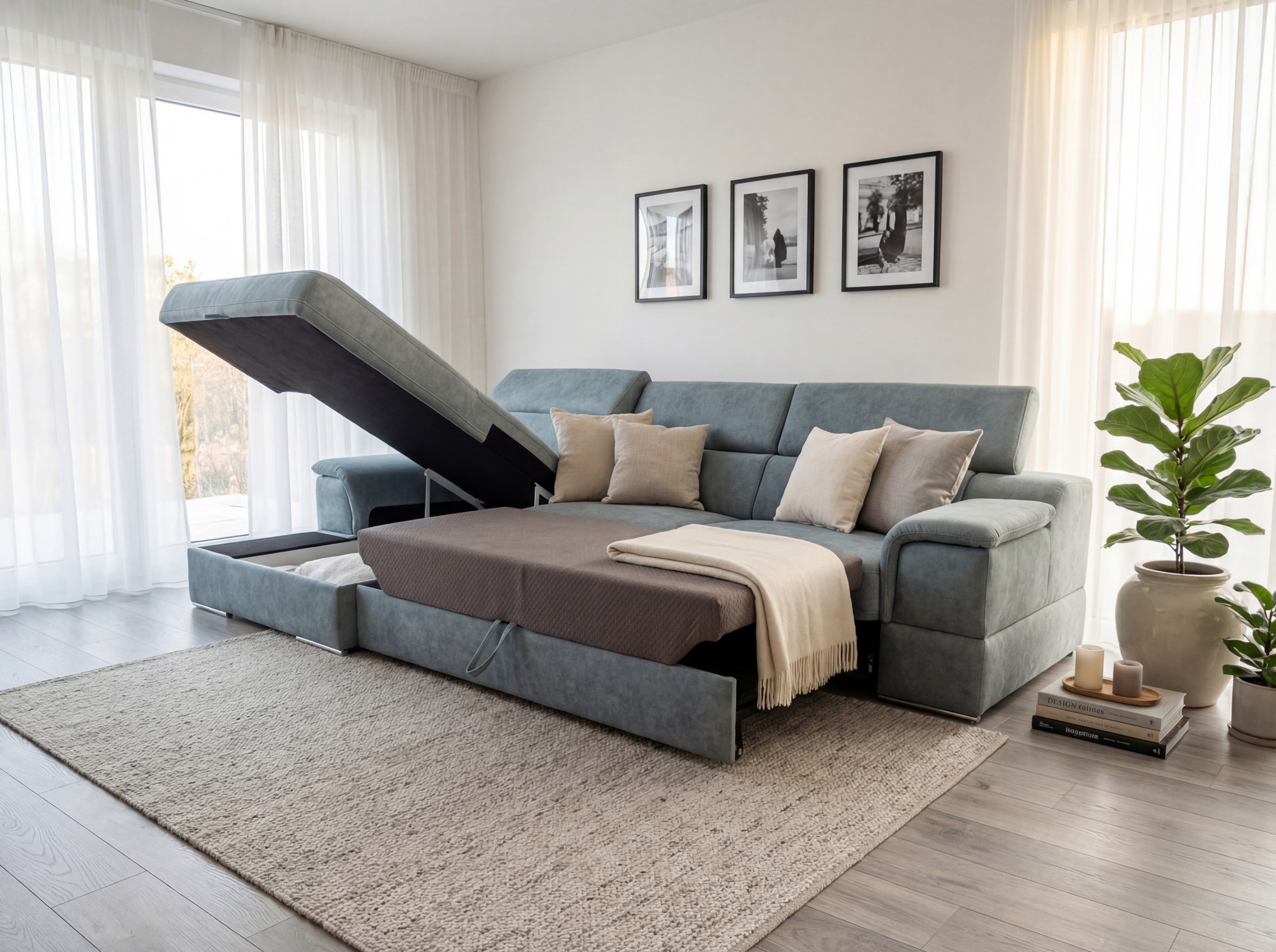 Grundlage des hohen Komforts ist der sitzfläche aus hoch elastischem Schaum auf Wellfedern, die eine optimale Körperstütze gewährleistet, sowie die Rückenlehne aus elastischem Schaum auf flexiblen Gurten. Die Sitzgruppe ist mit der Schlaffunktion vom Typ Dolphin (QF) ausgestattet, die eine schnelle und einfache Ausklappung ermöglicht und sich auch für häufigere Übernachtungen eignet. Ein praktisches Extra ist der Stauraum, ideal für Bettwäsche oder Decken.