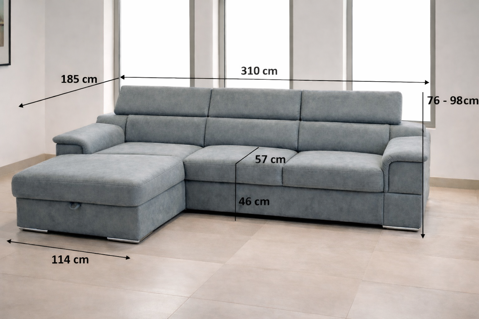 Die Sitzgruppe LUCIANO verbindet modernes Design, praktische Funktionen und langfristig bewährte Qualität. Dank der modularen Lösung erhalten Sie eine Sitzgruppe nach Maß, die sich perfekt an Ihren Raum und Lebensstil anpasst. Schlaffunktion, Stauraum und verstellbare Kopfstützen machen sie zur idealen Wahl für den täglichen Gebrauch sowie für gelegentliche Übernachtungsgäste. Unser Unternehmen bedient jährlich mehr als 50.000 Kunden in der gesamten EU. Wir sind seit 1993 am Markt tätig, verfügen über einen eigenen Fuhrpark und liefern regelmäßig in die Länder CZ, SK, HU, AT und PL. Gegen Aufpreis ist auch die Möbellieferung bis in die Wohnung möglich.