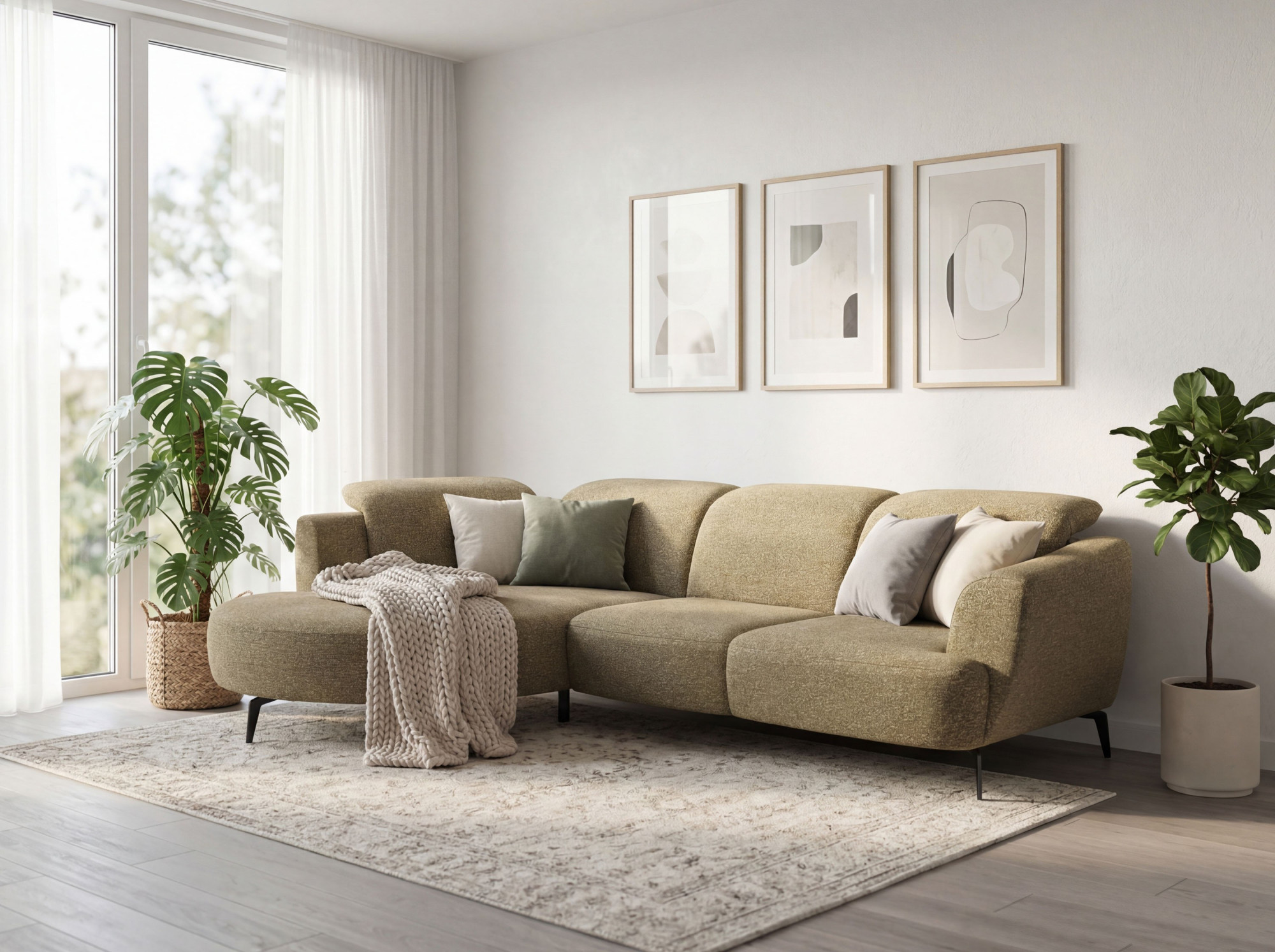 Sitzgarnitur ZOE stellt eine harmonische Verbindung von modernem Design, hohem Komfort und praktischer Variabilität dar. Dank sanft abgerundeter Formen, eleganter Linien und subtiler Metallfüße wirkt das Sofa leicht und luftig, bietet jedoch eine vollwertige und bequeme Sitzgelegenheit für den täglichen Gebrauch. Es ist die ideale Wahl für moderne sowie zeitlose Innenräume, in denen nicht nur das Aussehen, sondern auch Funktionalität und lange Lebensdauer eine Rolle spielen. ZOE wird schnell zum Mittelpunkt des Wohnzimmers und gleichzeitig zum entspannenden Platz für die ganze Familie.
