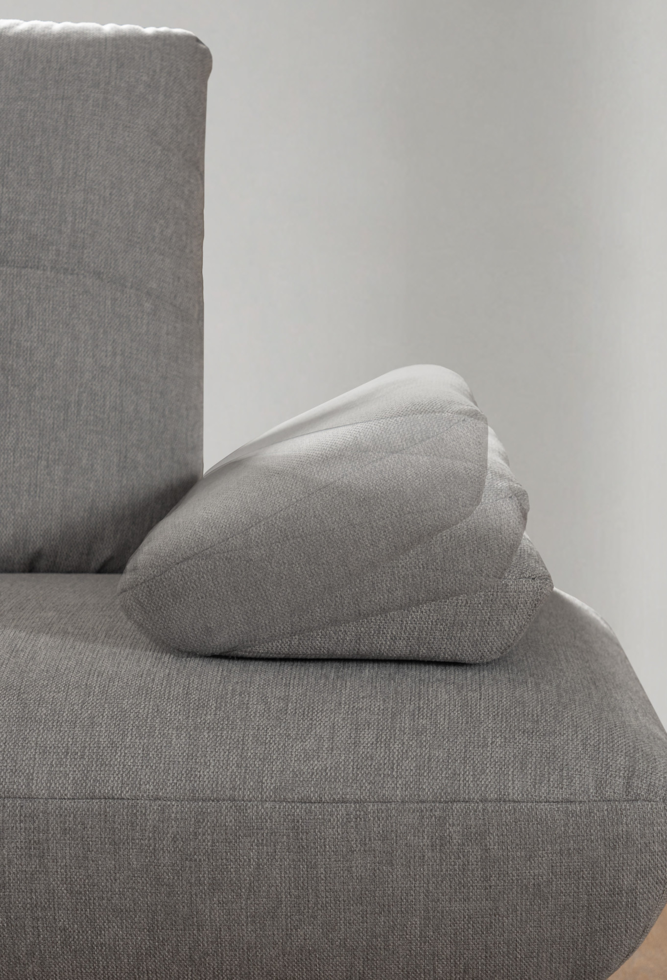 - Die trapezförmige Ecke hat feste Lehnen, gegen Aufpreis sind diese mit Verstellmöglichkeit der Tiefe und Neigung bestellbar.