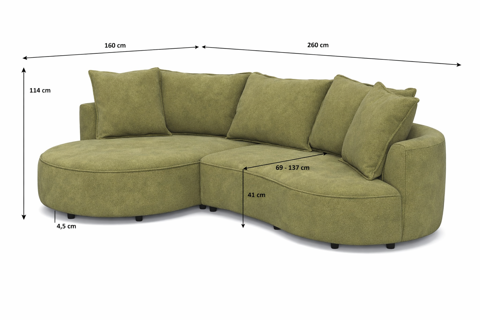 Die Basis des Sofas bildet eine stabile Konstruktion aus Hartholz und Kiefer in Kombination mit spanplatten ohne Formaldehyd. Die Sitzflächen sind mit Stahlwellfedern ausgestattet und mit hochwertigem PUR-Schaum ohne FCKW gefüllt, der optimalen Halt und Komfort beim täglichen Sitzen gewährleistet. Die Rückenlehnen bestehen aus hochgrammiger Polsterpappe, die die Formbeständigkeit der abgerundeten Teile sicherstellt, sowie statischen Gurten, die zu ergonomischer Körperhaltung beitragen. Ein großer Vorteil ist, dass große und kleine Kissen im Preis enthalten sind. Das Sofa enthält keine Lederimitation und bietet die Möglichkeit, Materialien für Sitzfläche und Korpus zu kombinieren.