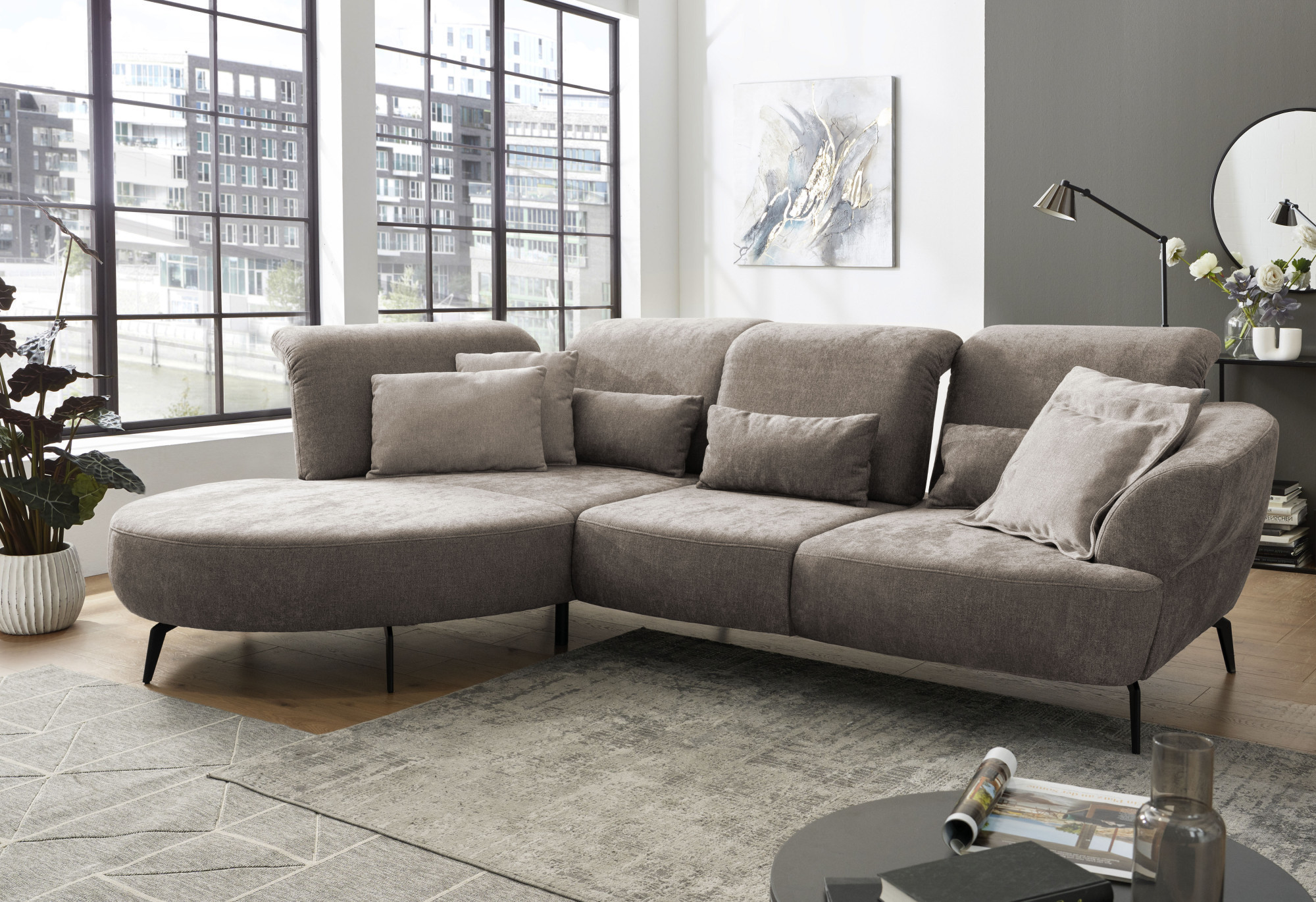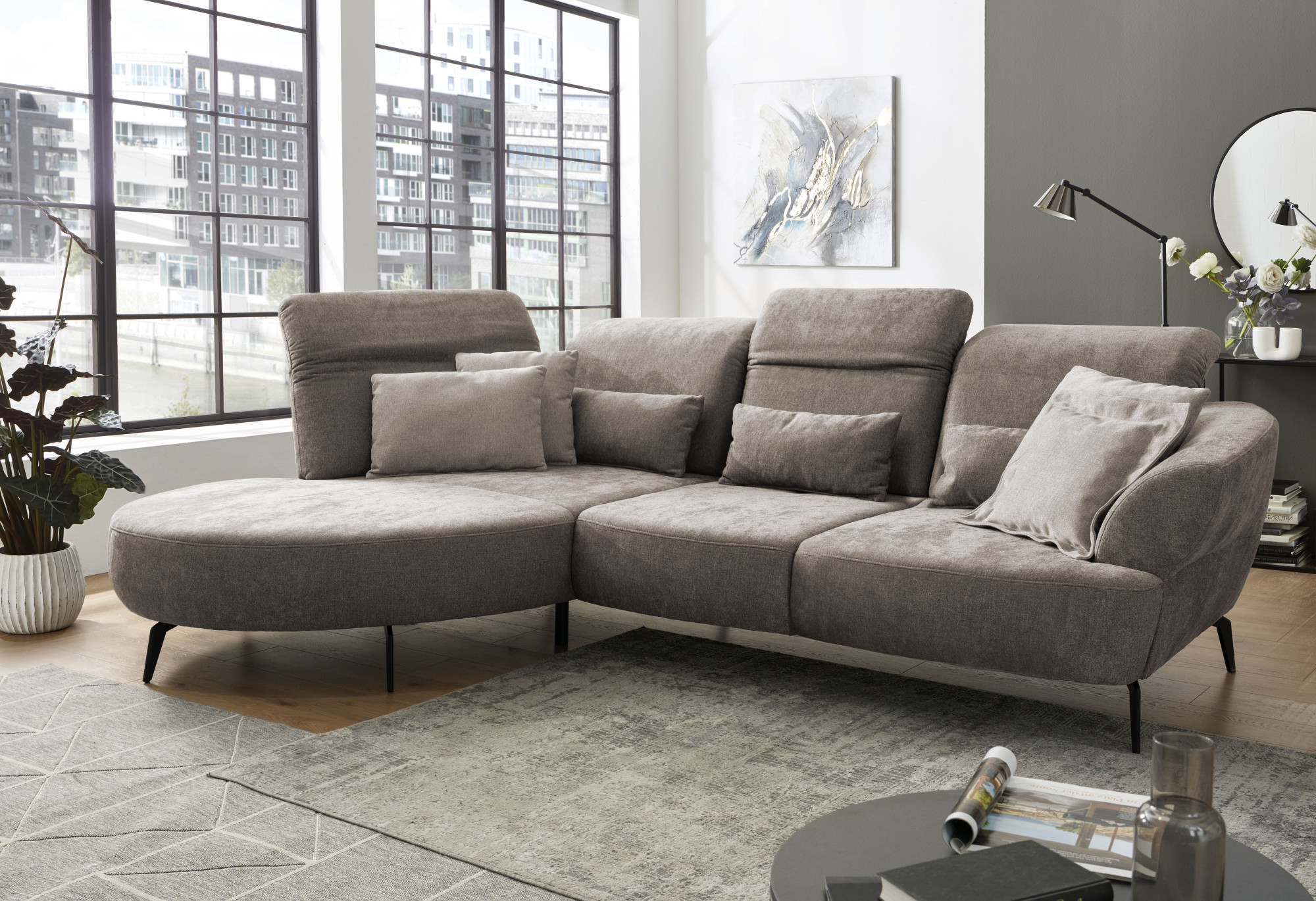 Modulares Ecksofa Dance Taupe Softclean Stoff verstellbar