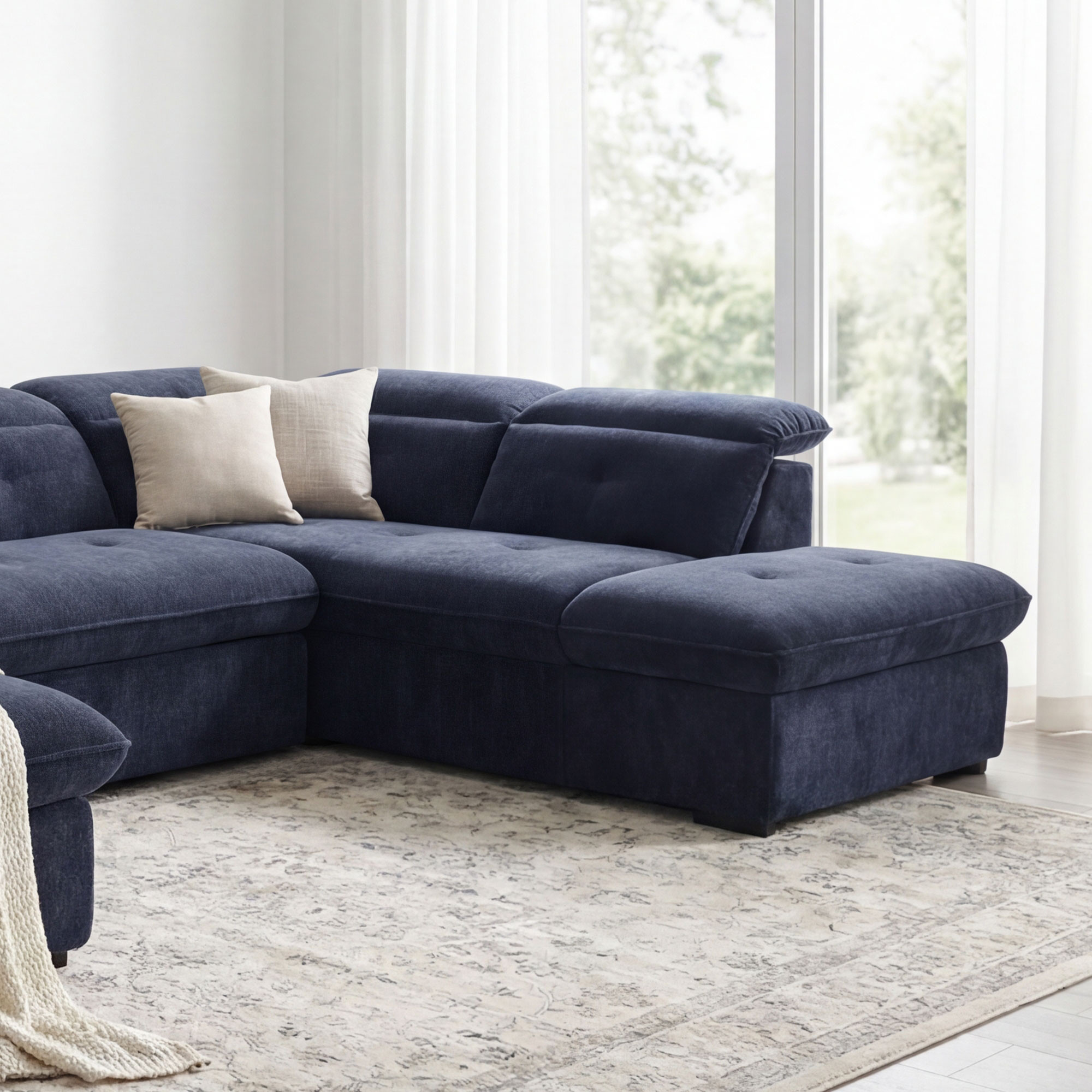 Es fehlt nicht an einem leicht ausklappbaren Bett, das auch für den täglichen Schlaf geeignet ist, zwei praktischen Stauraumfächern und verstellbaren Kopfstützen, die den Sitzkomfort deutlich erhöhen. Die Konstruktion besteht aus massivem Holz und hochwertigen formaldehydfreien Materialien, Sitzpolster aus PUR-Schaum auf Wellenfederung gewährleisten lange Haltbarkeit und Bequemlichkeit. ZOOM ist die ideale Kombination aus Größe, Funktionalität und modernem Stil – die perfekte Lösung für das familienfreundliche Wohnzimmer.