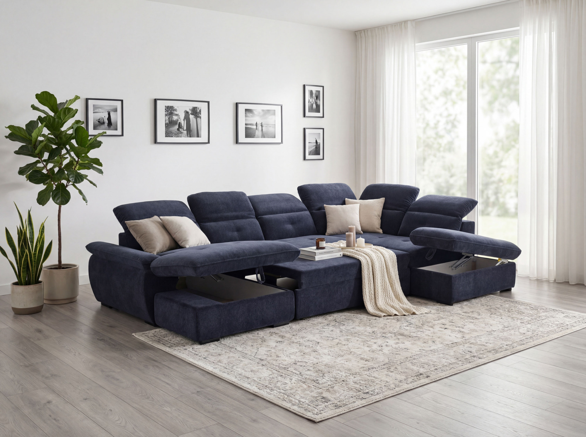 Großes U-förmiges Sofa mit Schlaffunktion und Stauraum
