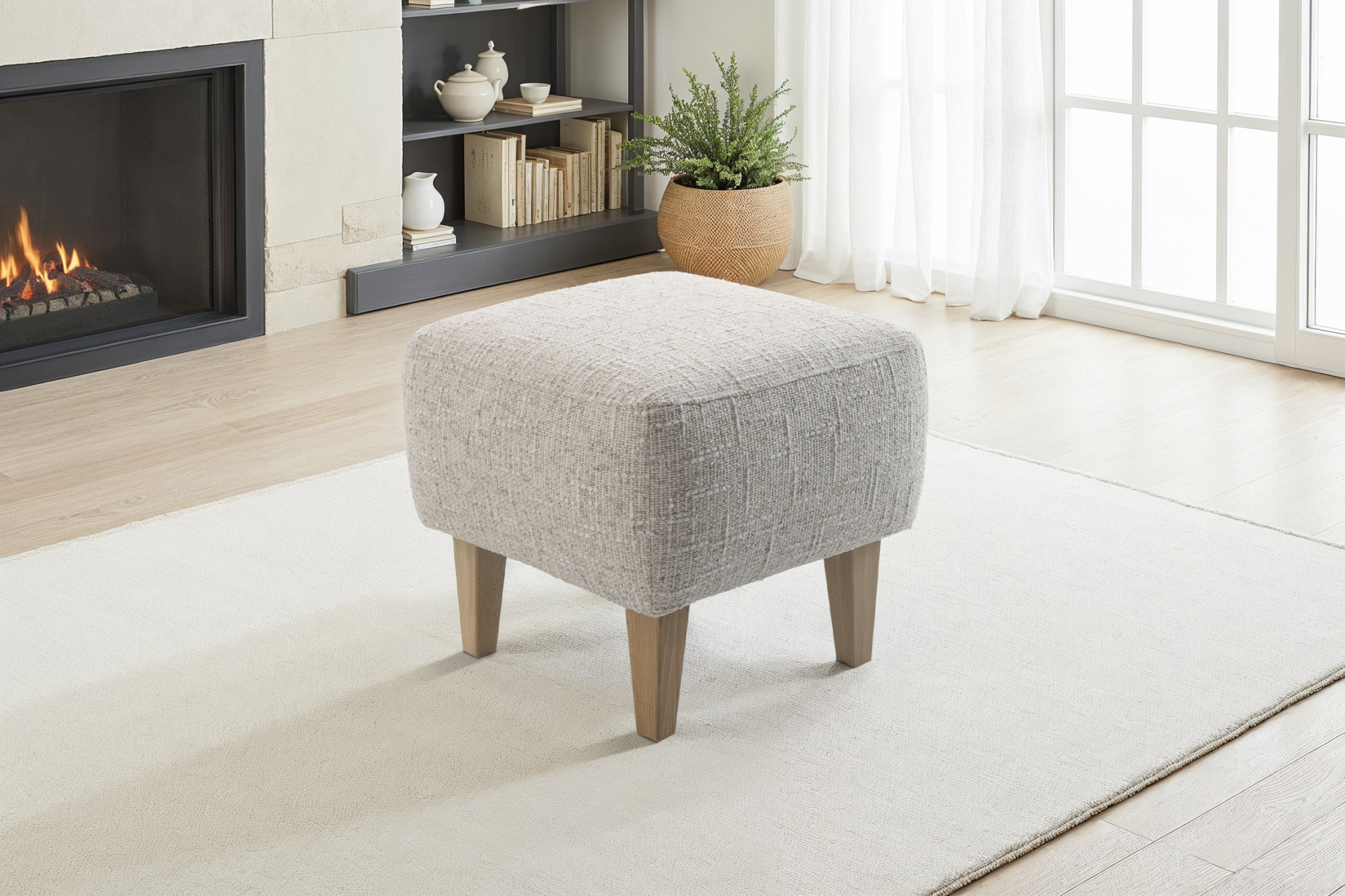 Für den Komfort sorgt eine hochwertige Füllung aus PUR-Schaum, die angenehme Unterstützung und lange Haltbarkeit auch bei täglichem Gebrauch bietet. Die stabile Konstruktion aus Massivholz und hochwertigen Plattenmaterialien gewährleistet Festigkeit und Zuverlässigkeit. Der Hocker TALVI hat die Maße ca. 53 × 48 × 53 cm (Breite × Höhe × Tiefe), wodurch er kompakt, aber gleichzeitig ausreichend komfortabel ist. Er kann in denselben Stoff- und Farbvarianten wie der Sessel bestellt werden, was eine perfekte Abstimmung des gesamten Sets im einheitlichen Stil ermöglicht.