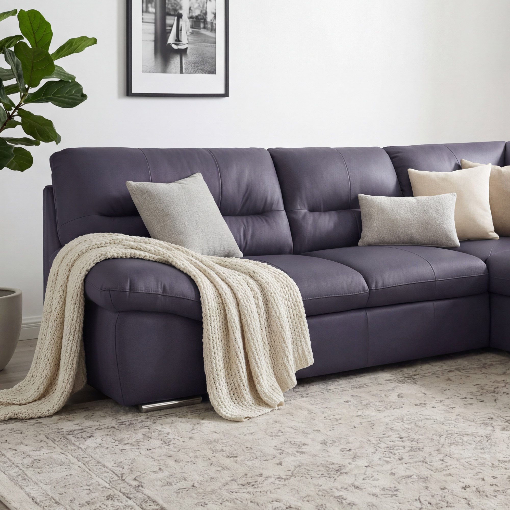 Eck-Sitzgarnitur – echtes Leder Farbe Navy Modell William ist eine hervorragende Wahl für alle, die Luxus, Komfort und praktische Funktionen schätzen. Ihr elegantes Design in Navy-Farbe ergänzt jeden Innenraum auf wunderschöne Weise und schafft gleichzeitig eine gemütliche Atmosphäre für Familien- und Gesellschaftstreffen. Der Sitzbereich ist mit hochwertigem Leder mit einer Dicke von 0,9–1,1 mm bezogen, das angenehm fleischig und widerstandsfähig gegen tägliche Beanspruchung ist. Dank der durchdachten Eckausführung (Ecke rechts) erhalten Sie nicht nur ausreichend Sitzfläche, sondern auch einfachen Zugang zu großem Stauraum unter dem Eckteil. Zum Ausklappen des Sofas dient ein praktischer Mechanismus, der Ihnen ein Gelegenheitsbett mit den Maßen 183 x 123 cm bietet.