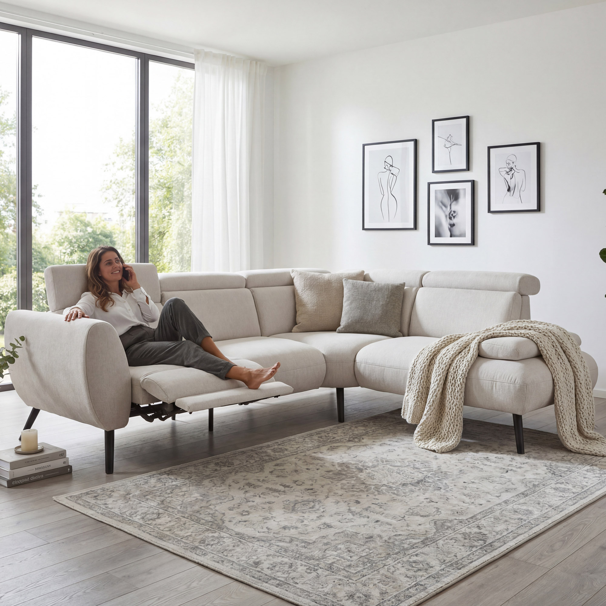 Die Sitzgarnitur CALAIS lässt sich flexibel nach der Größe Ihres Raumes konfigurieren – von einer kleineren Eckvariante mit Longchair bis hin zur großzügigen U-Form, die maximalen Komfort für die ganze Familie bietet. Dank dieser Variabilität können Sie ganz einfach eine Zusammenstellung ganz nach Ihren Bedürfnissen und der Anordnung Ihres Wohnzimmers schaffen.