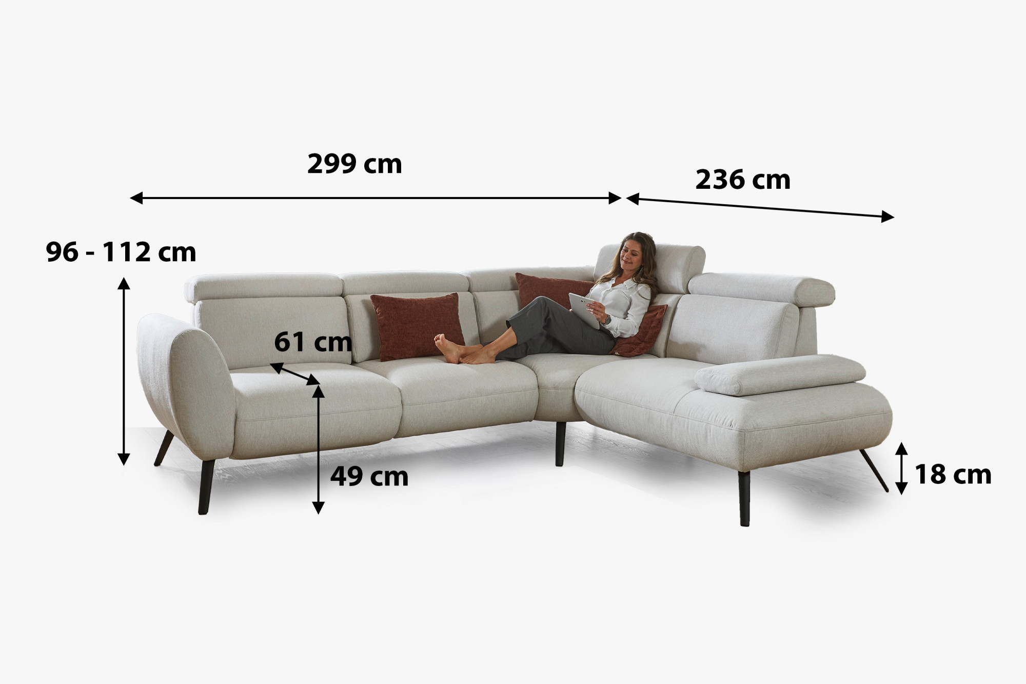 Modernes Ecksofa Calais 299x236 cm mit hohen Füßen