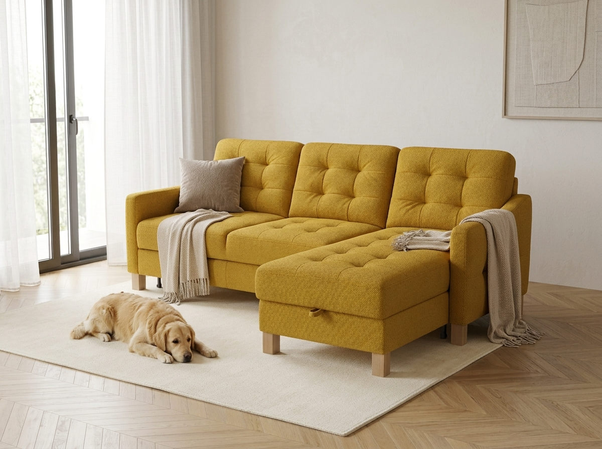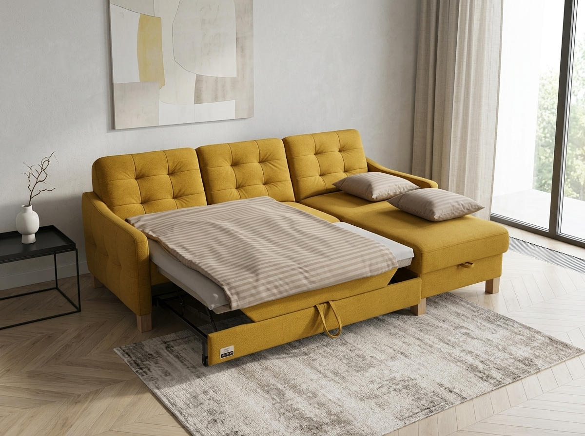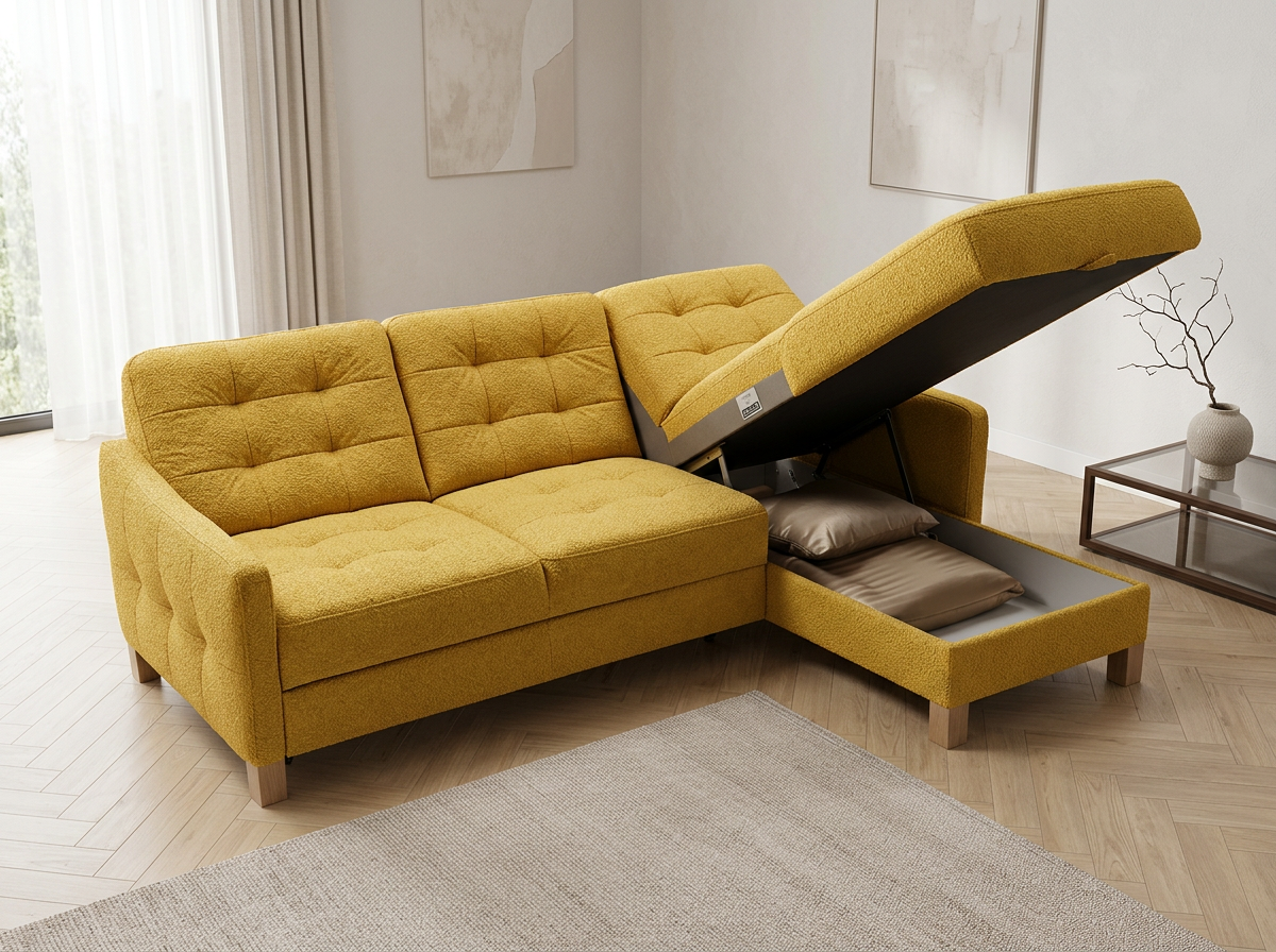 Moderne Eckcouch Malmo mit Schlaf- und Stauraumfunktion – Stil, Komfort und Praktikabilität
