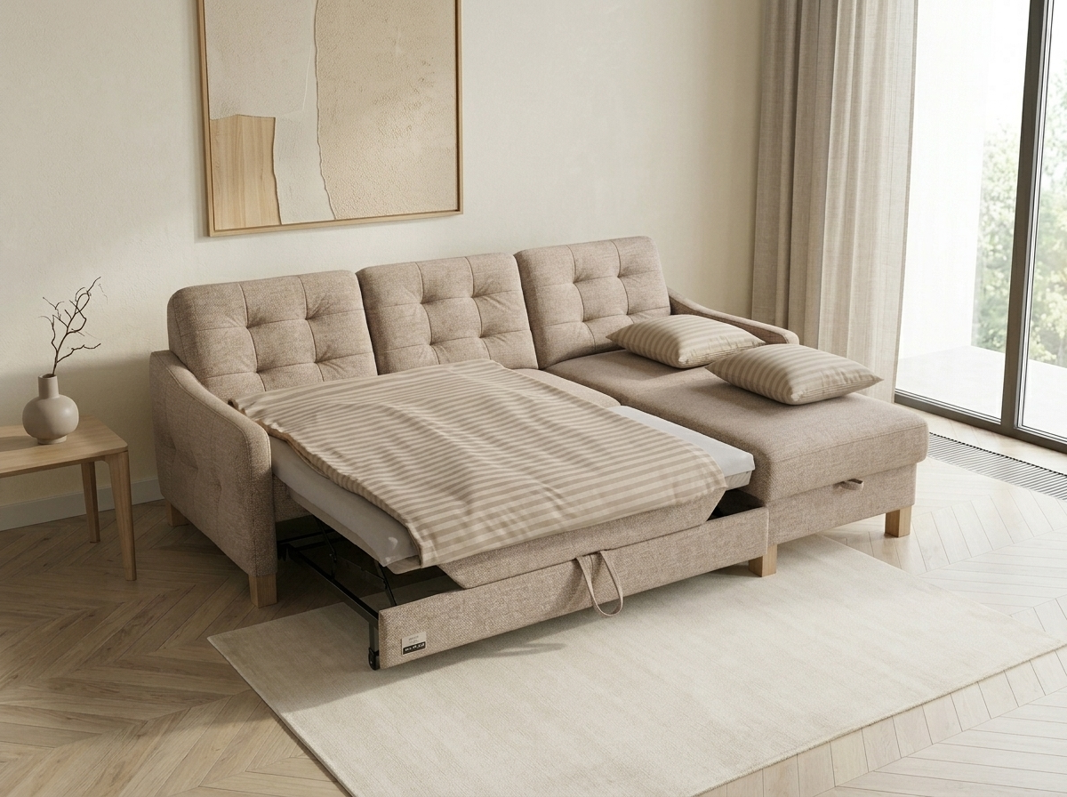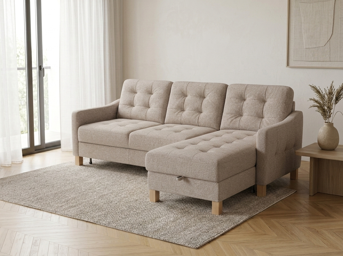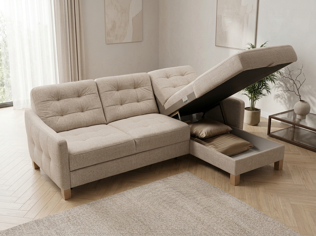 Moderne Eckcouch Malmo mit Schlaf- und Stauraumfunktion – Stil, Komfort und Praktikabilität
