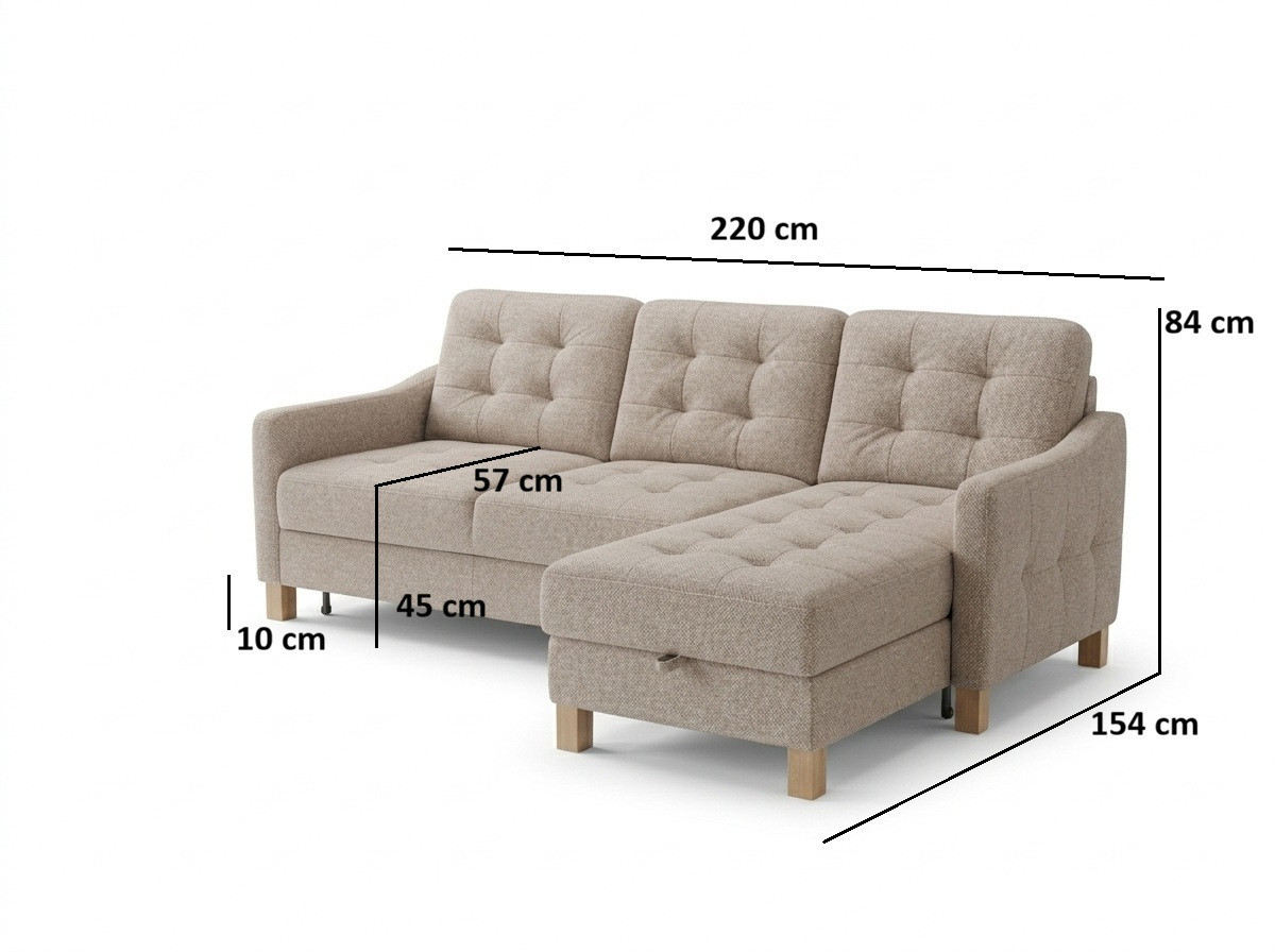 Moderne Eckcouch Malmo mit Schlaffunktion und Stauraum - rechte Ecke