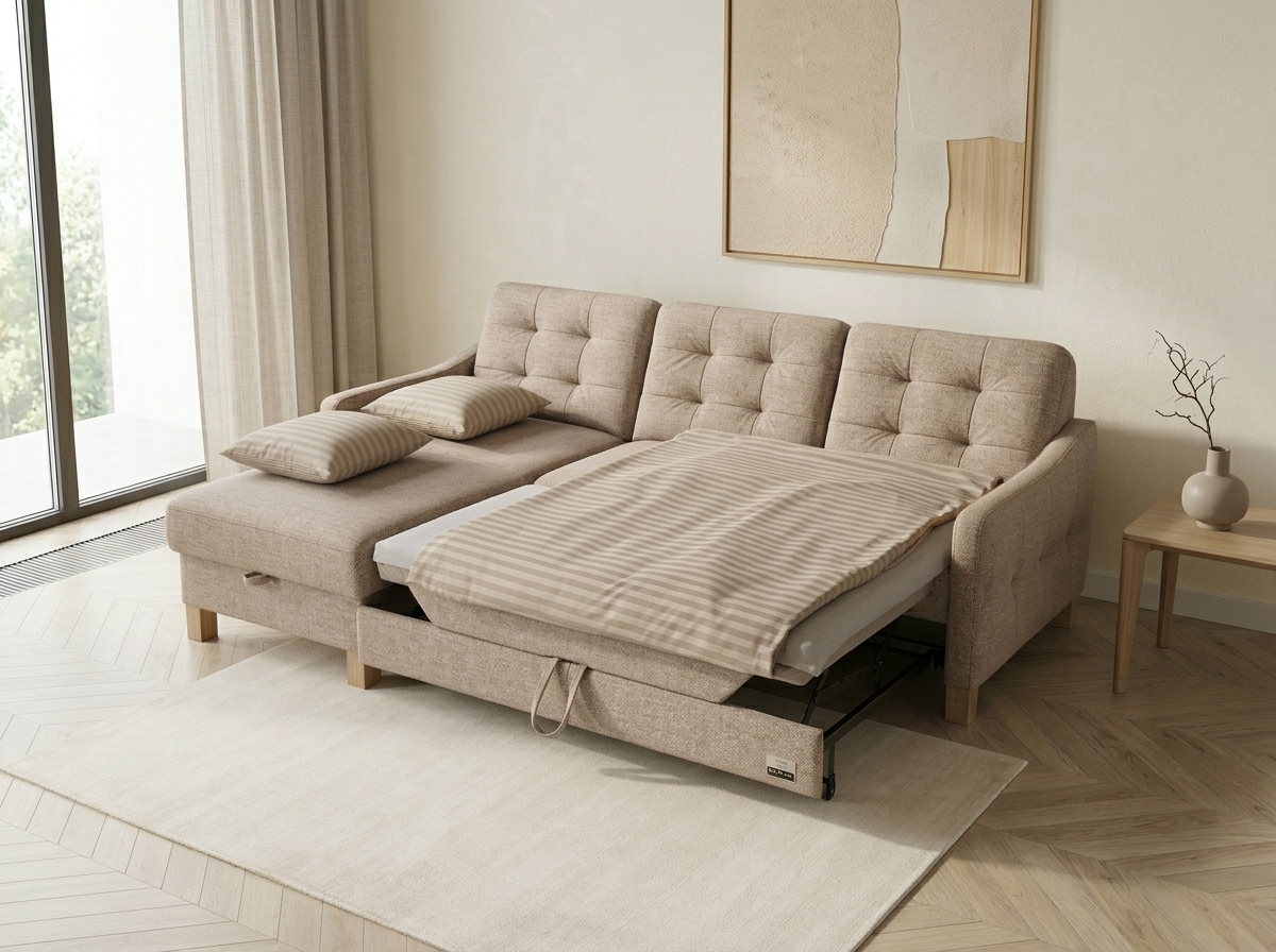 Moderne Eckcouch Malmo mit Schlaffunktion und Stauraum – Stil, Komfort und Praktikabilität