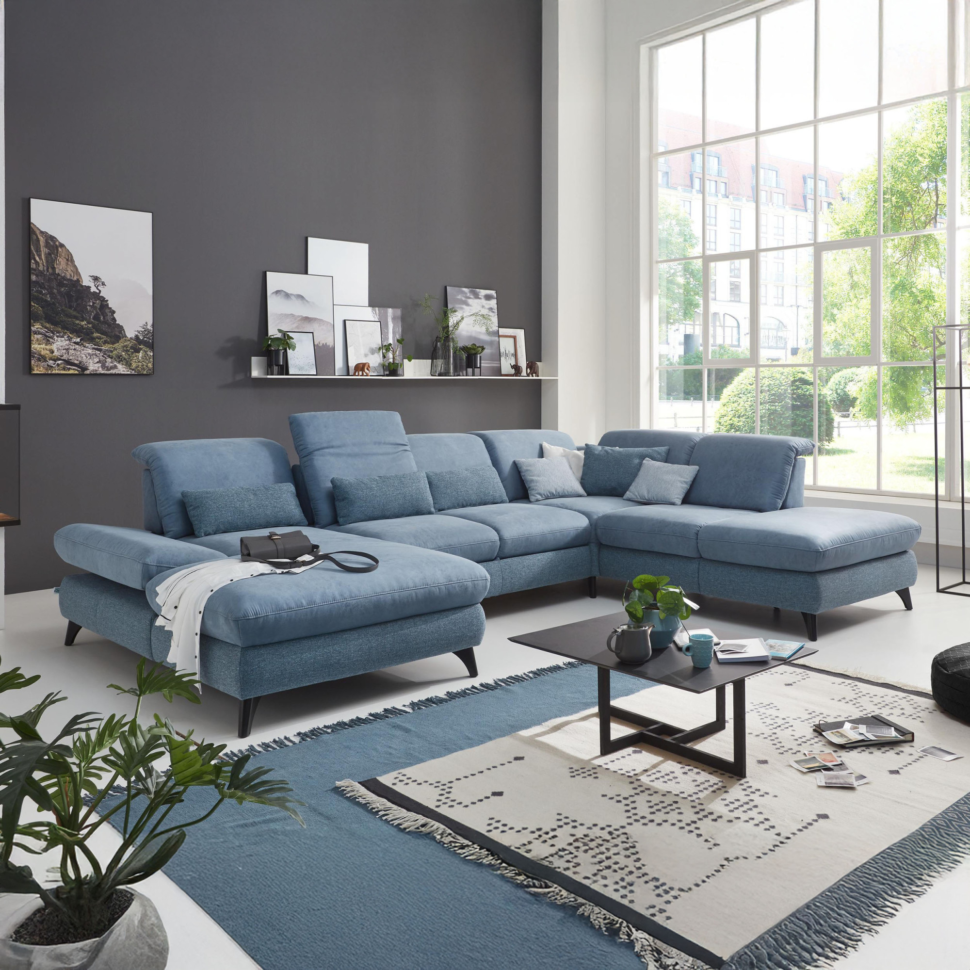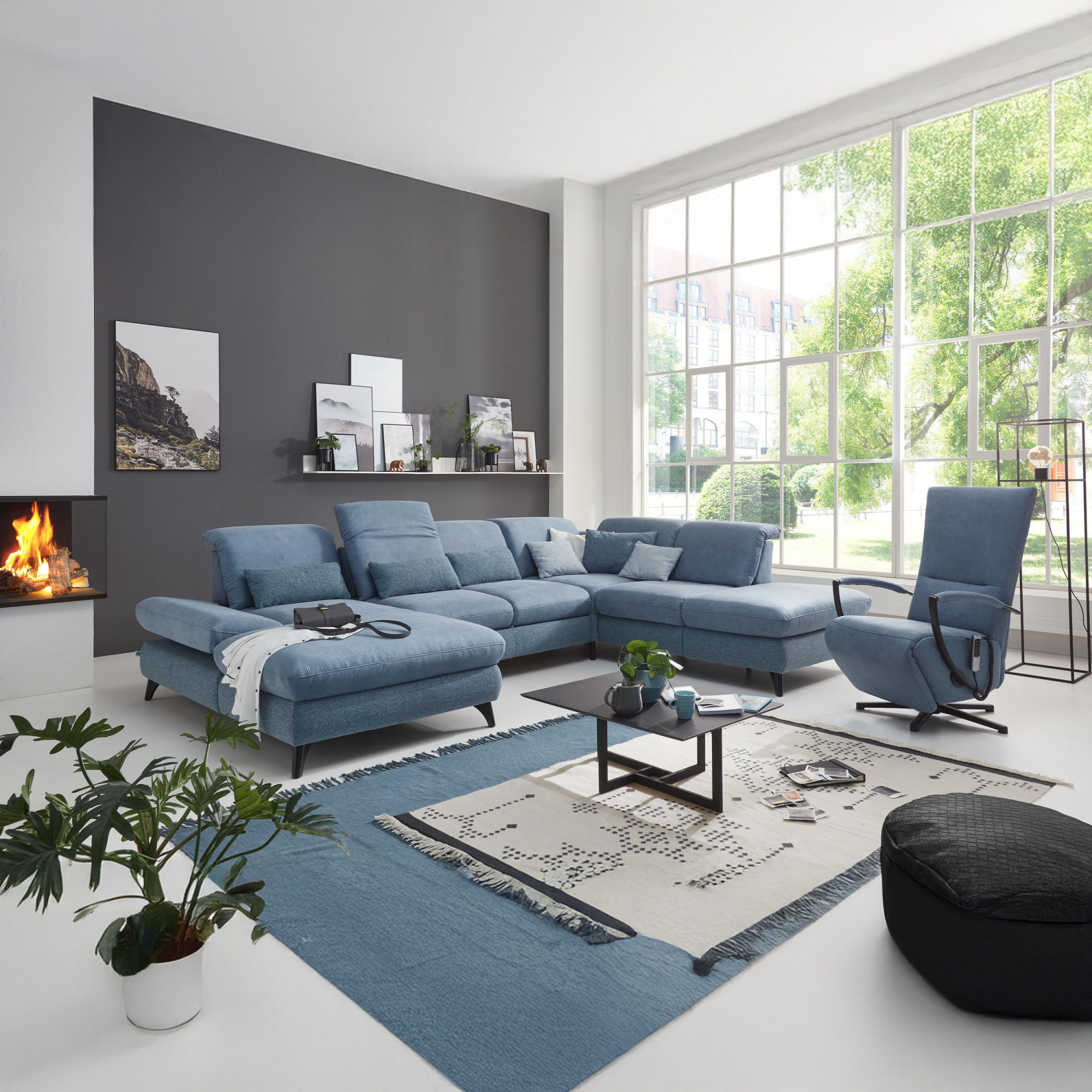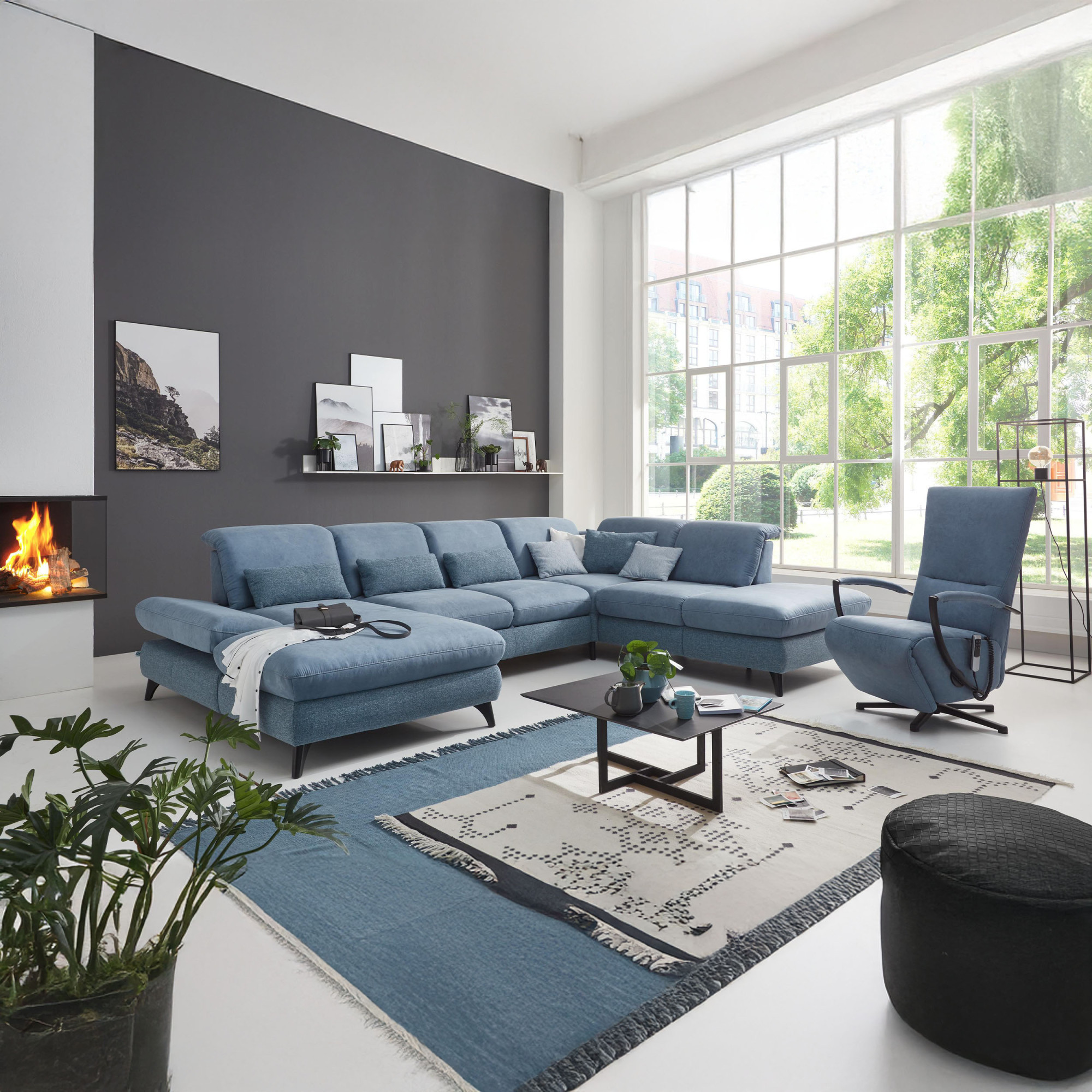 Sedergarnitur Carolina in U-Form mit Funktionsmöglichkeiten, blau