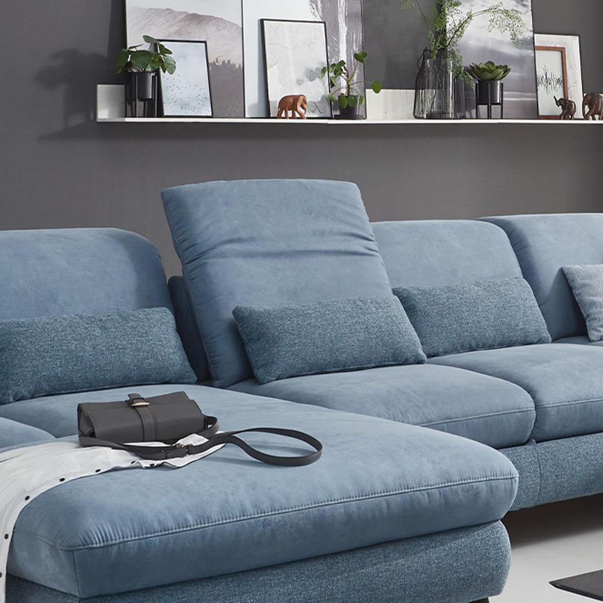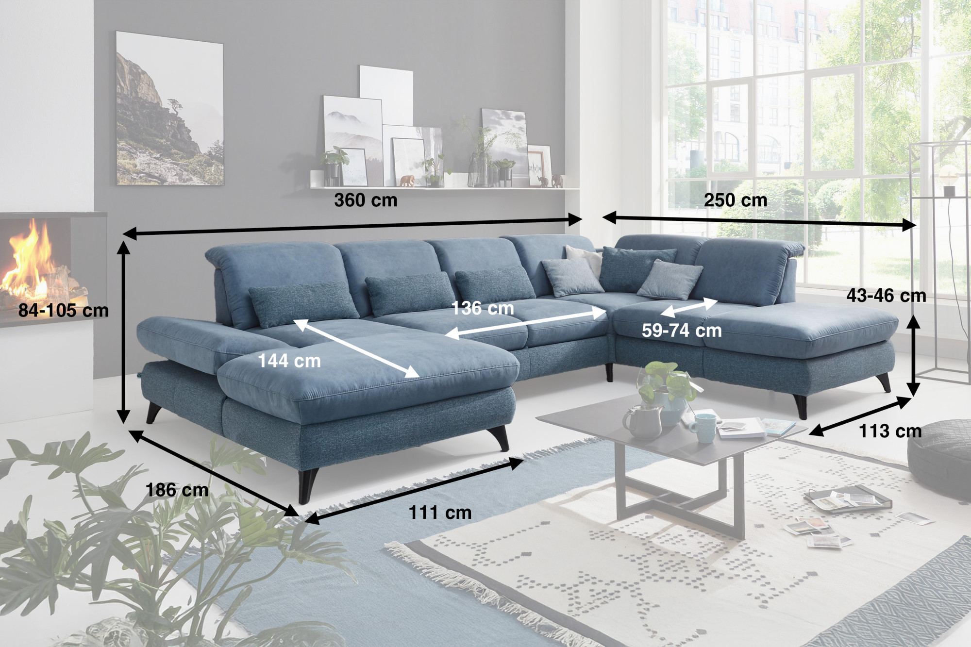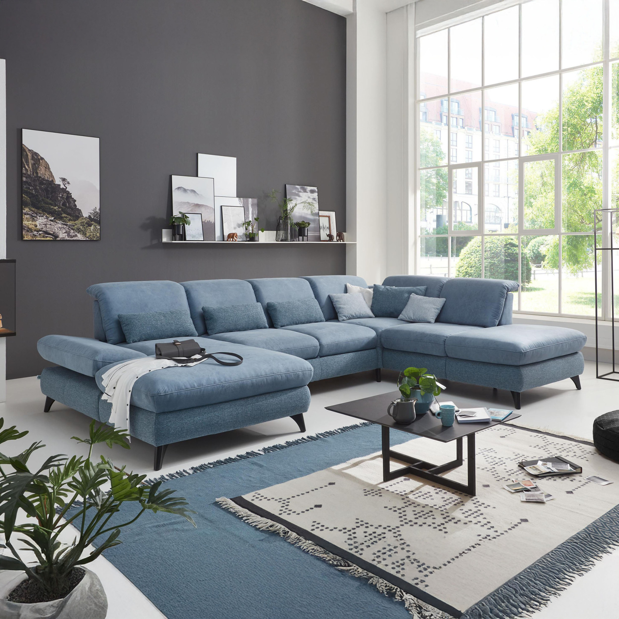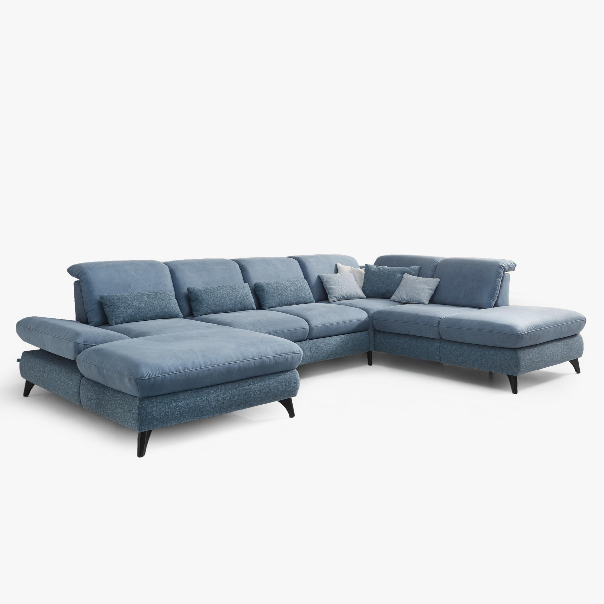 Sedergarnitur Carolina in U-Form mit Funktionsmöglichkeiten, blau