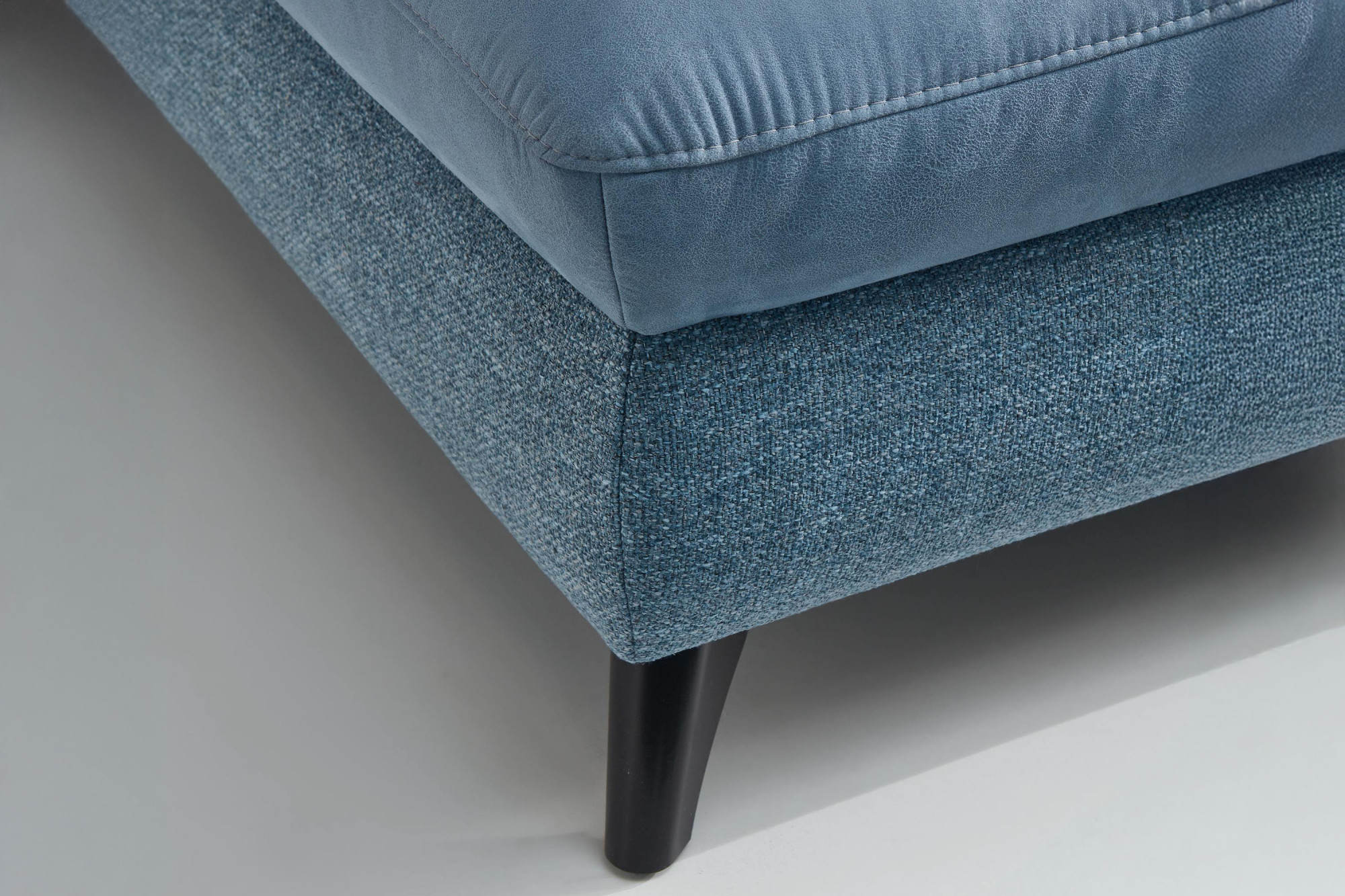 * Auf dem Bild in Stoff Bingo bluegrey + Amsterdam eisblau. Füße Typ 1 metall schwarz, Ottoman rechts