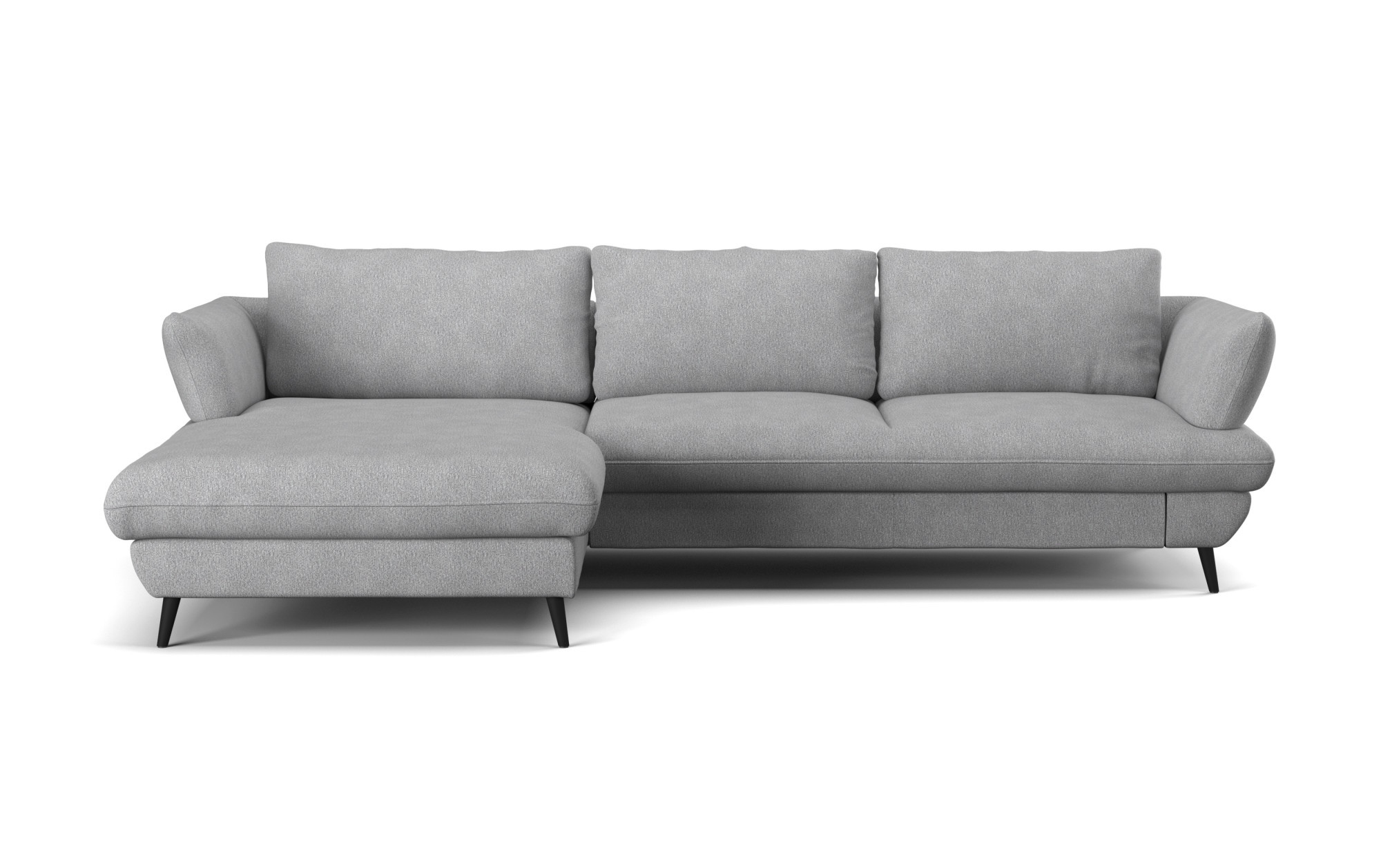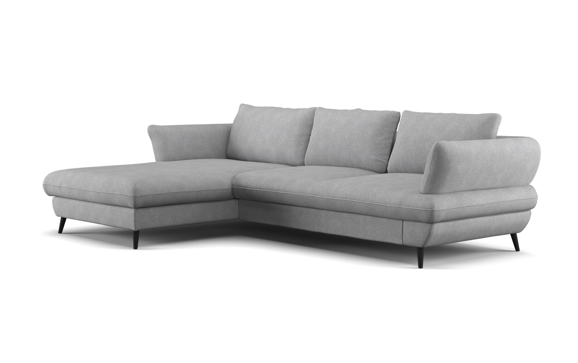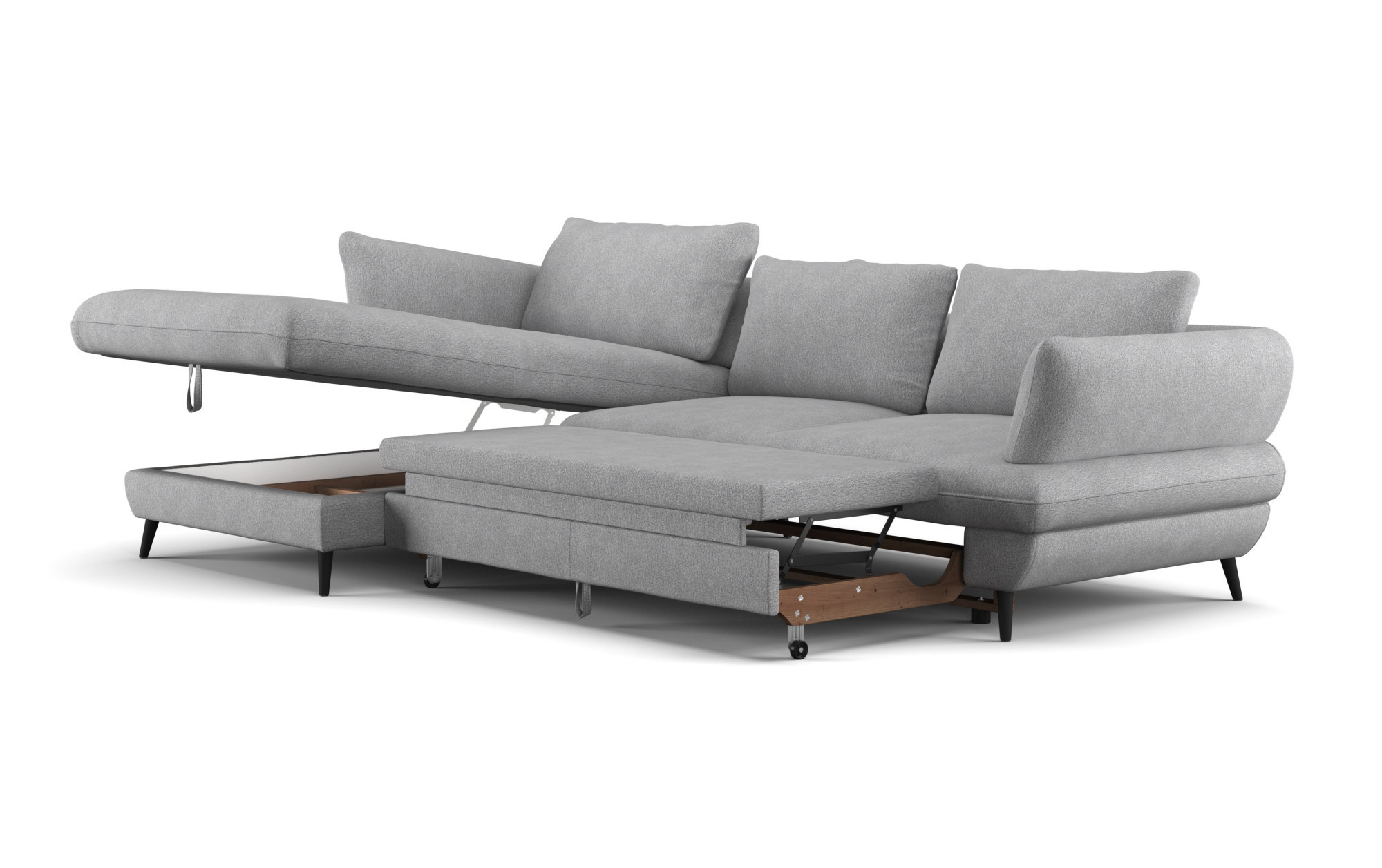 Ecksofa BALOU REC/BK-2.5F – moderne abgerundete Formen, Schlaf- und Stauraumfunktion