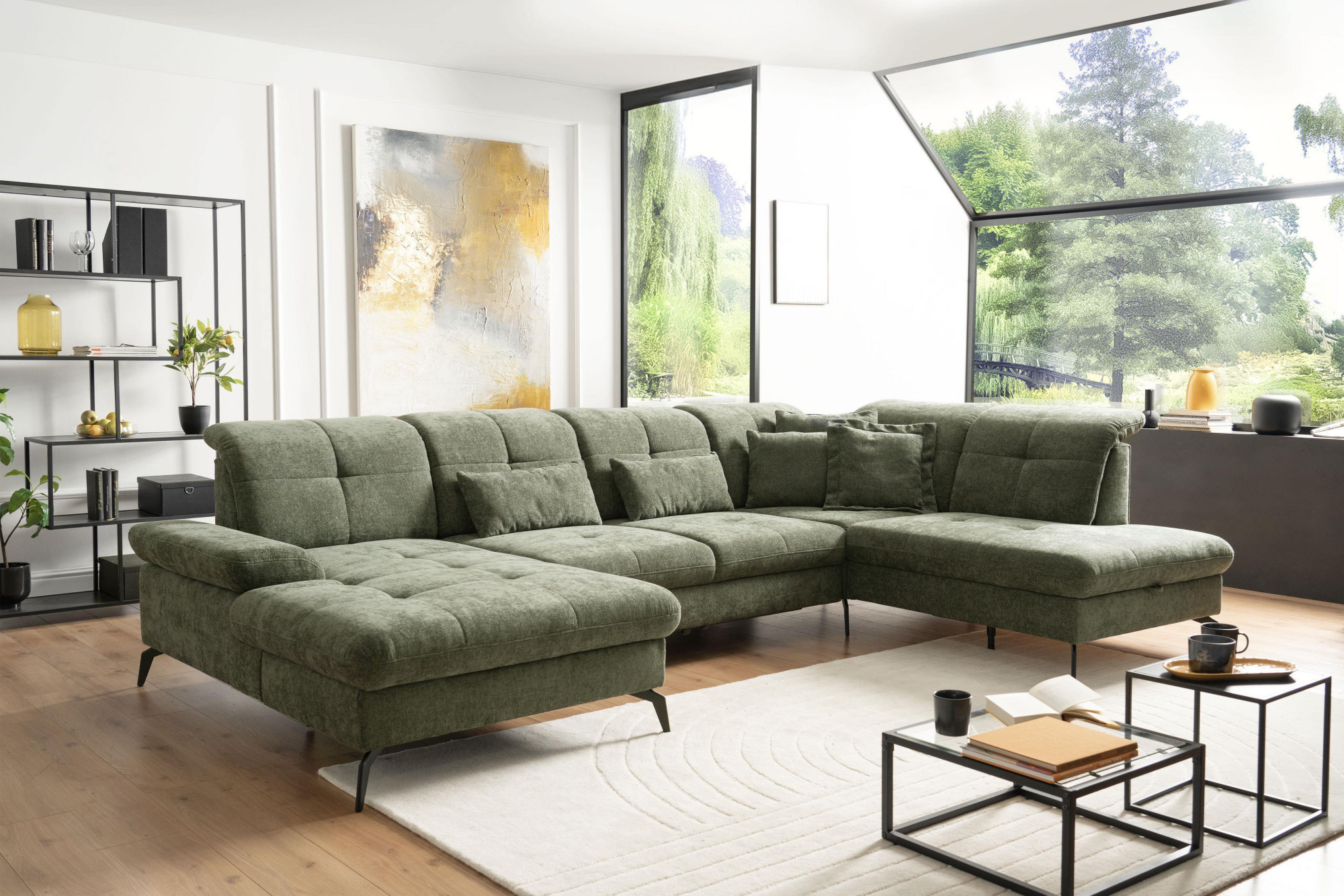 - Form: großzügige Sitzgarnitur in U-Form, geeignet für größere Wohnzimmer