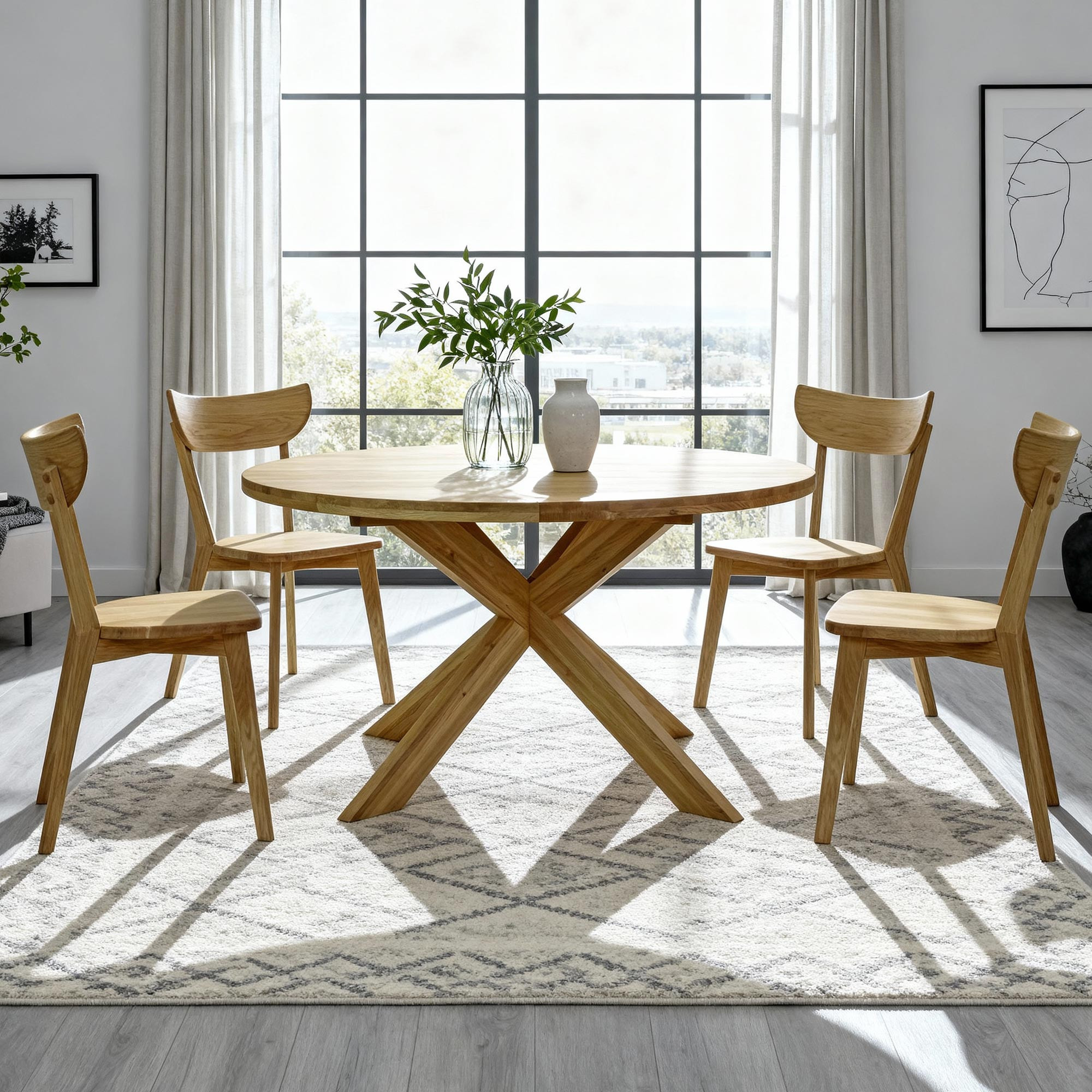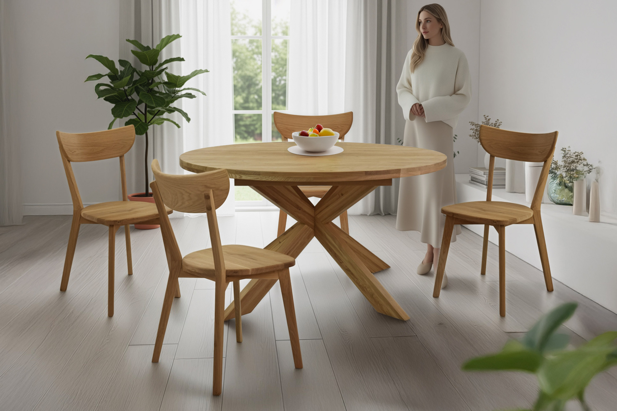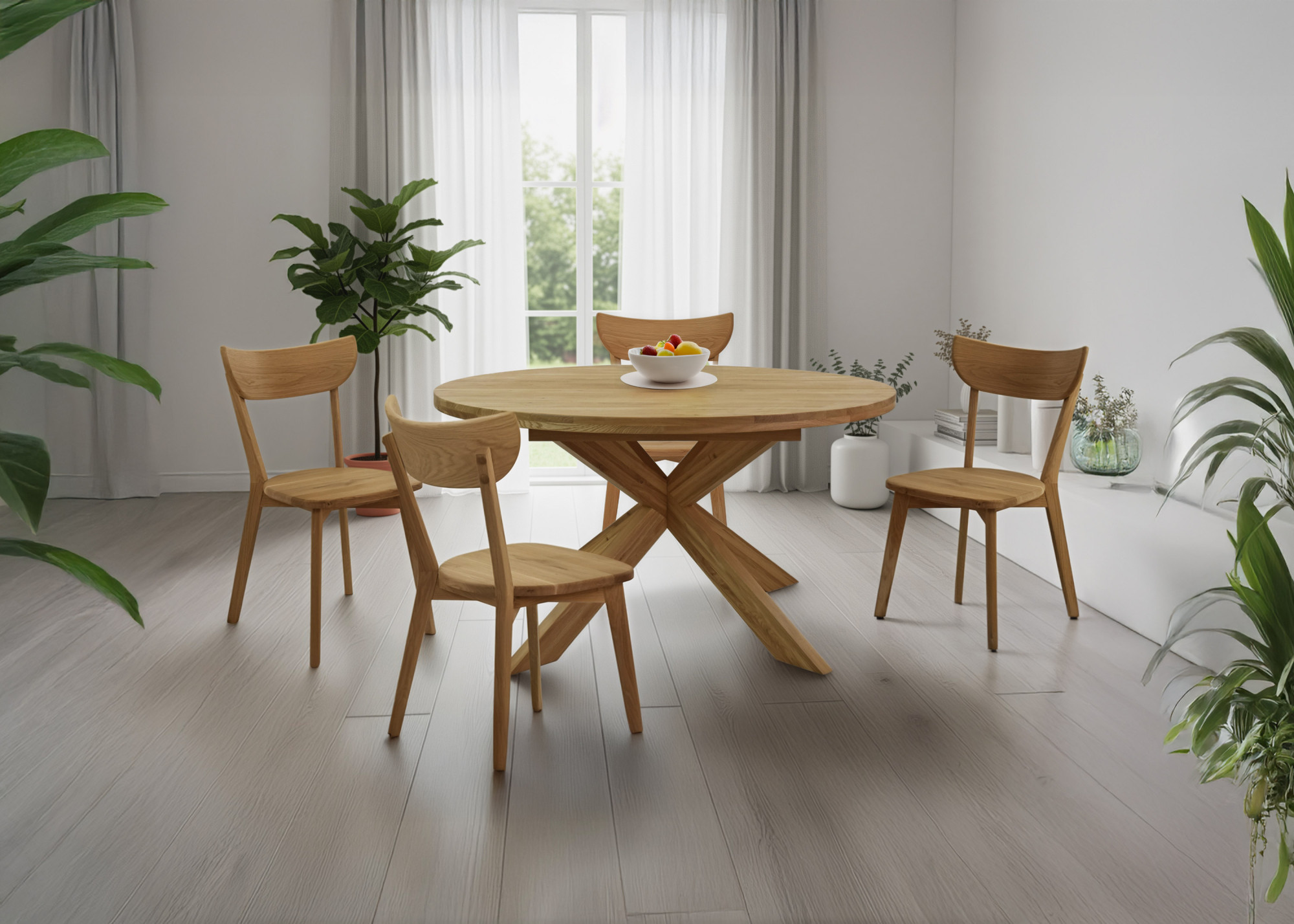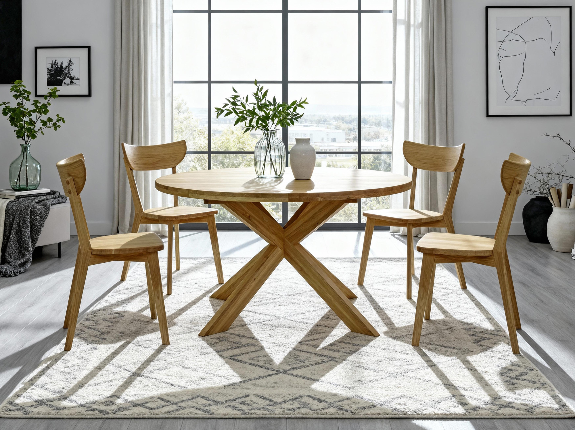 Runder ausziehbarer Tisch Modell Holger 120 cm und 4 Stühle aus Holz Modell Eva
