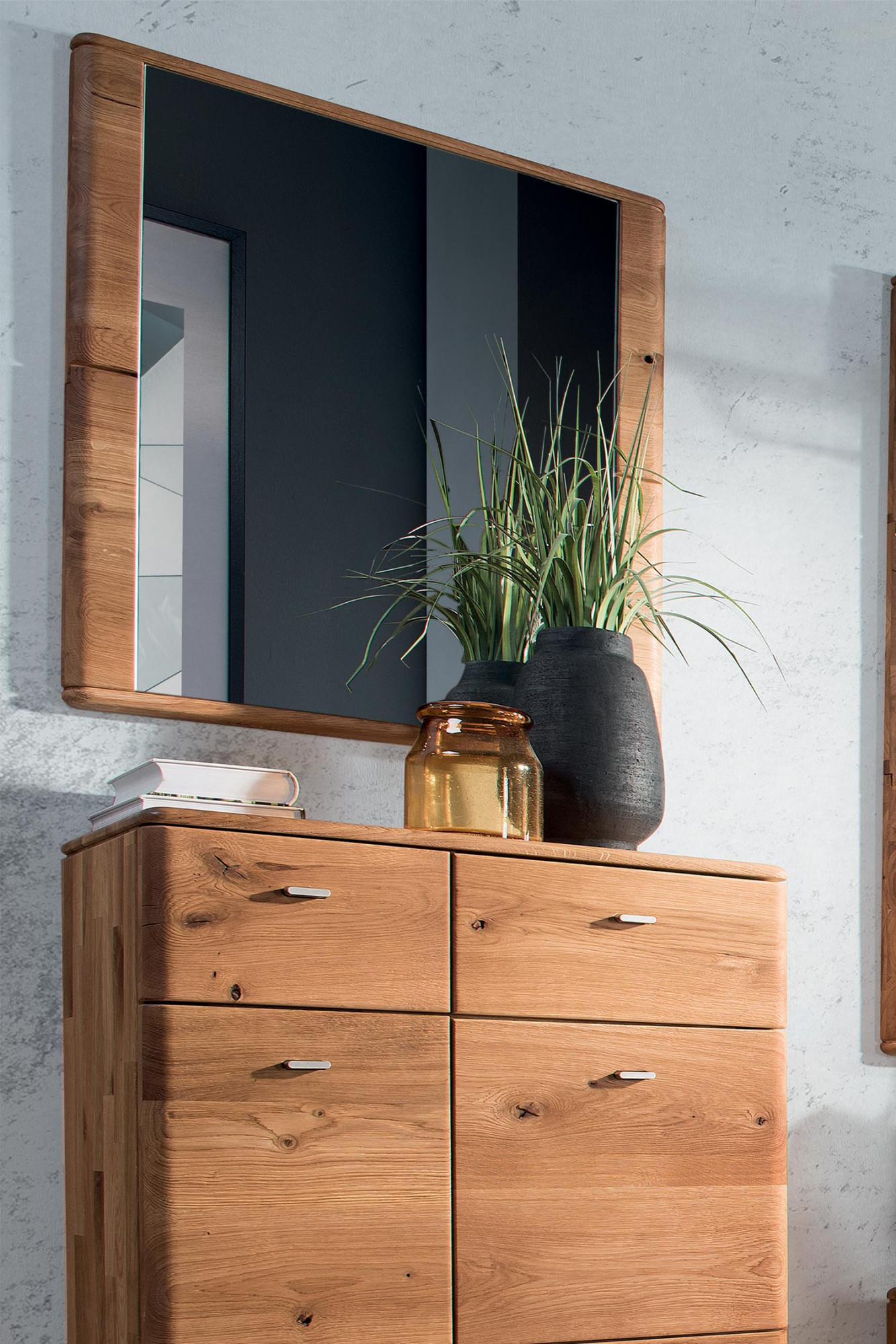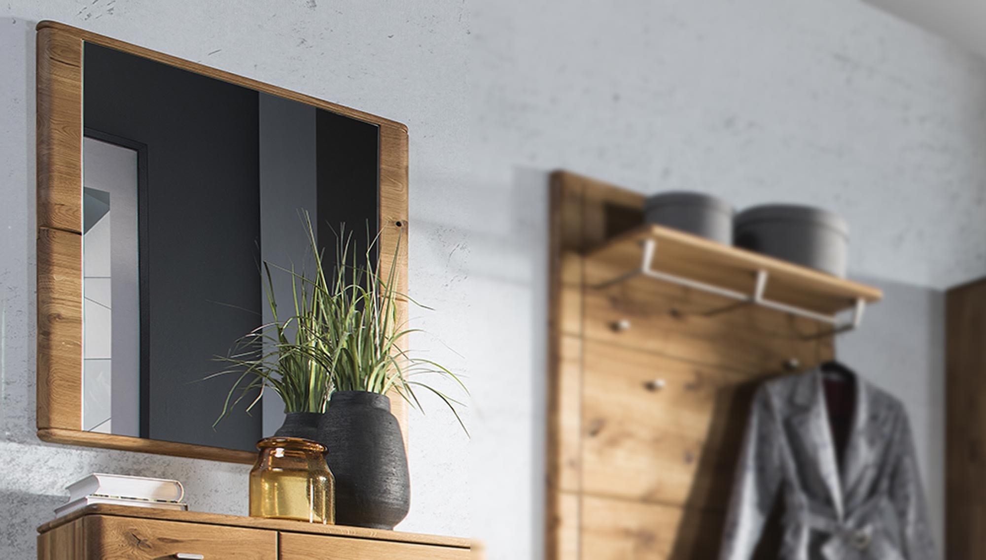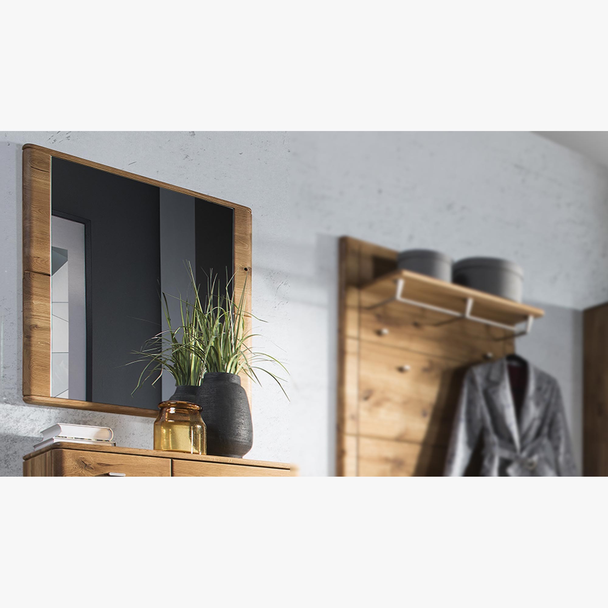 Wunderschöner und stylischer Spiegel mit Eichenrahmen, der das Möbelprogramm Texas, Jánošík oder Texas komplettiert. Der Spiegel ist zur Wandmontage bestimmt. Sie können ihn als Komplettset für Garderobenwände verwenden oder als stilvollen Solitär.