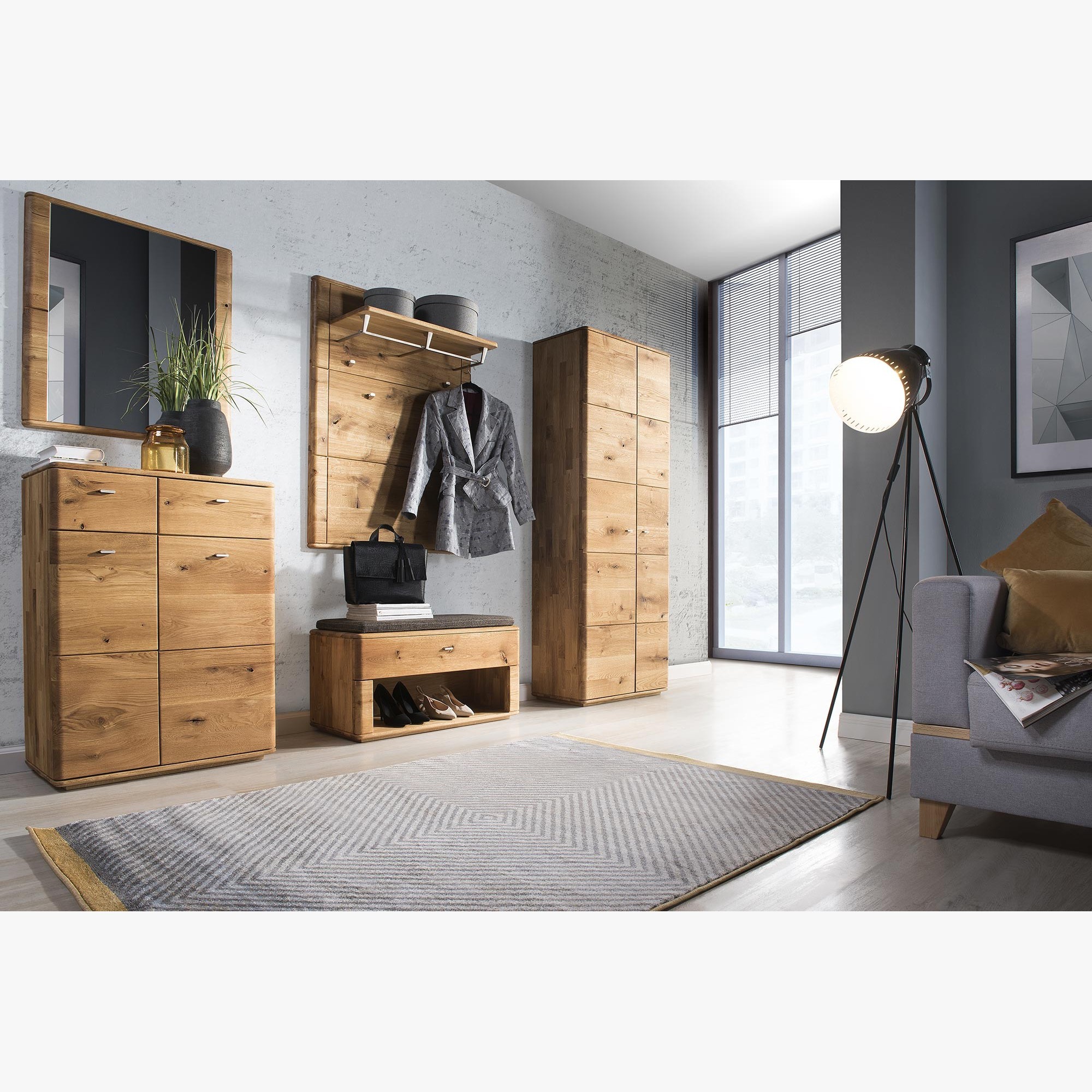 Die Kollektion Texas ist eine Erweiterung der bereits vorhandenen Möbel der Reihe Texas und der Möbel Jánošík. Sie können die Möbel also problemlos kombinieren. Die Möbel Texas sind exklusive Eichenmöbel, die für den Flur und Eingangsbereich bestimmt sind. Die Möbel umfassen Flursets, die aus massivem Eichenholz gefertigt sind. Die Möbel sind in der Farbe Naturöl erhältlich. Die Möbel enthalten ebenfalls ausgewähltes Holz, bei dem bewusst Stücke mit Ästen gesucht wurden. Zur Hervorhebung der Holzstruktur sind auch künstliche Risse im Holz eingebracht. So wie auf den Fotos. Die Möbel werden bereits montiert geliefert. Der hohe Schrank, die Regale und Spiegel müssen direkt an Ihrer Wand befestigt werden.