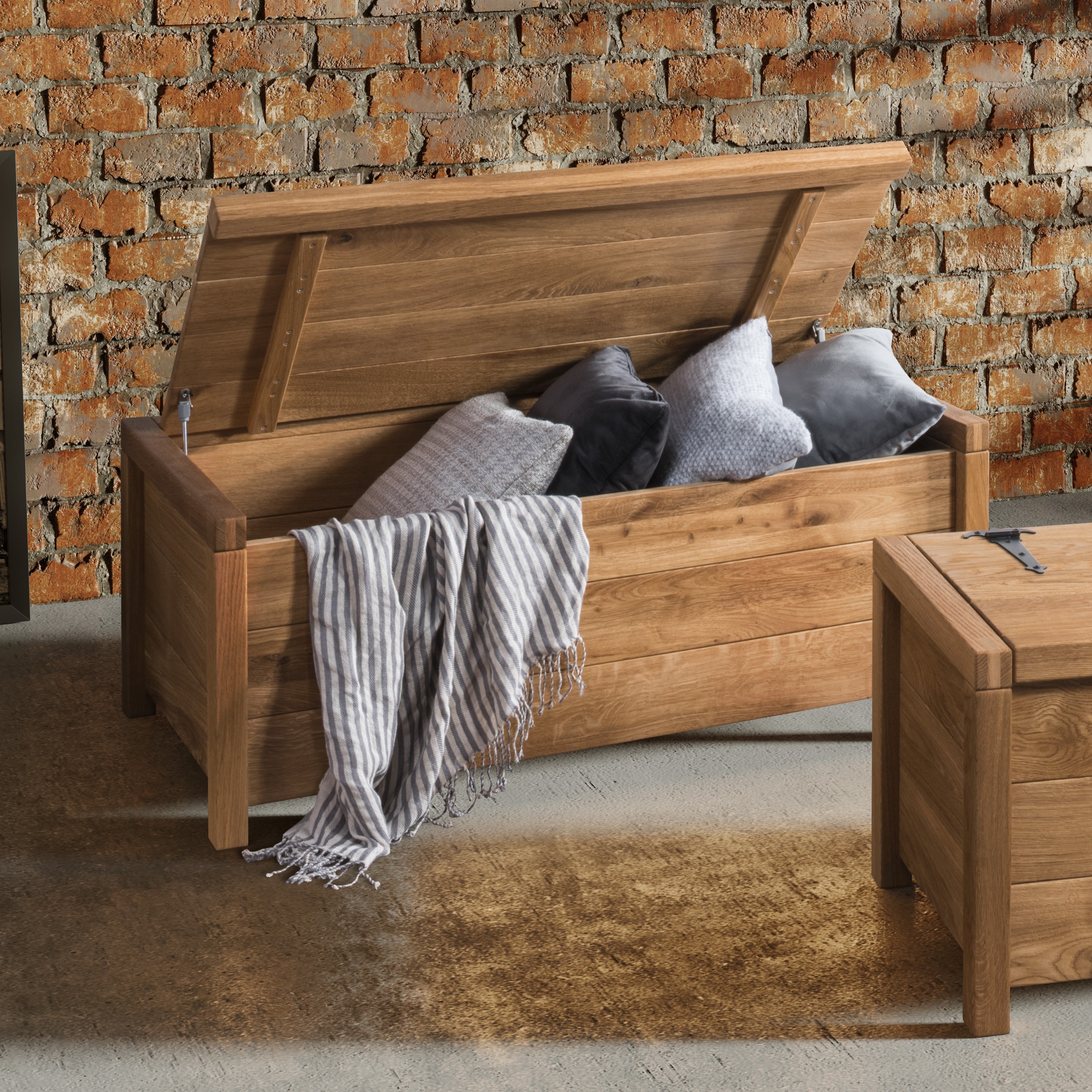 Massive Eichenholz Truhe mit Stauraum, geölt, 93x50x50 cm