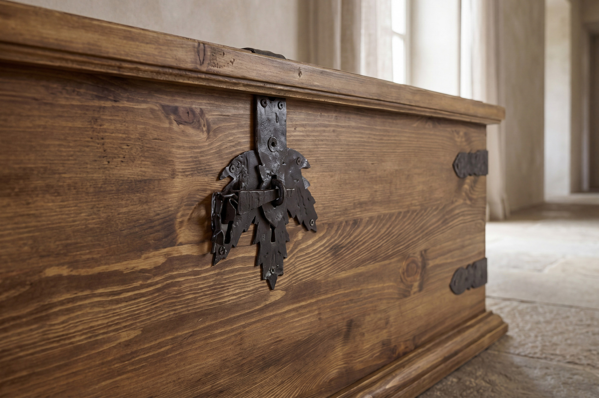 - Handgeschmiedete Beschläge – ein markantes Detail, das dem Möbelstück einen originellen Charakter verleiht.