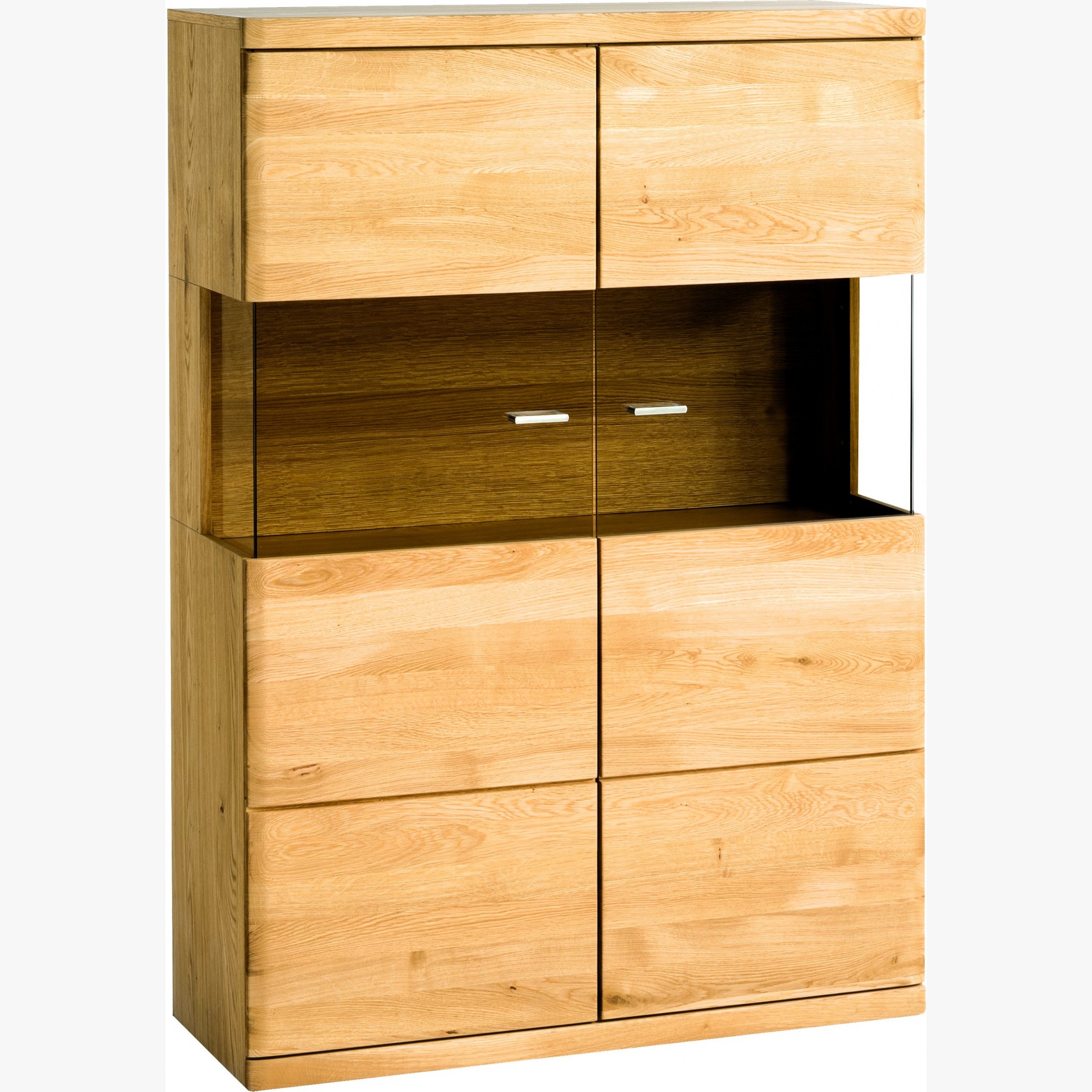 Zeitloses Möbelstück, hergestellt aus einer Kombination aus natürlichem Eichenholz und natürlichem Eichenfurnier. Die Möbel sind für das Wohnzimmer und das Esszimmer gedacht. Die Möbel haben ein zeitloses Design und sind mit Naturöl behandelt. In der Möbelkollektion Boston finden Sie die TV-Kommode in zwei Längen, eine Glastürvitrine, einen Couchtisch sowie eine ebenfalls designorientierte Kommode. Die Möbel werden fertig montiert ohne Beleuchtung geliefert, gegen Aufpreis kann eine Beleuchtung hinzugekauft werden. Die vorderen Fronten der Kommode und Türen sind aus Eichenholz, die Oberplatte - die seitlichen Korpusfüllungen sind aus natürlichem Eichenfurnier.