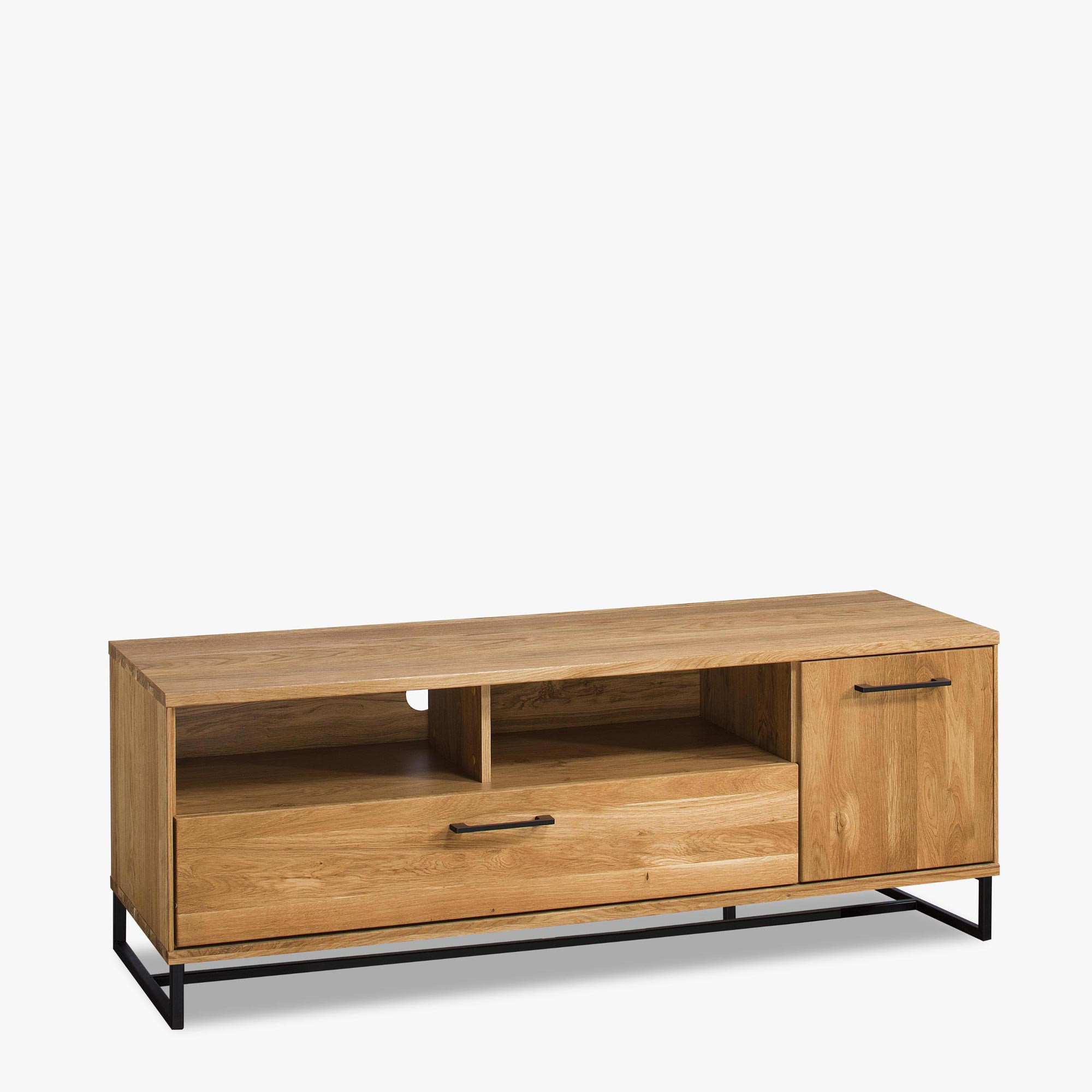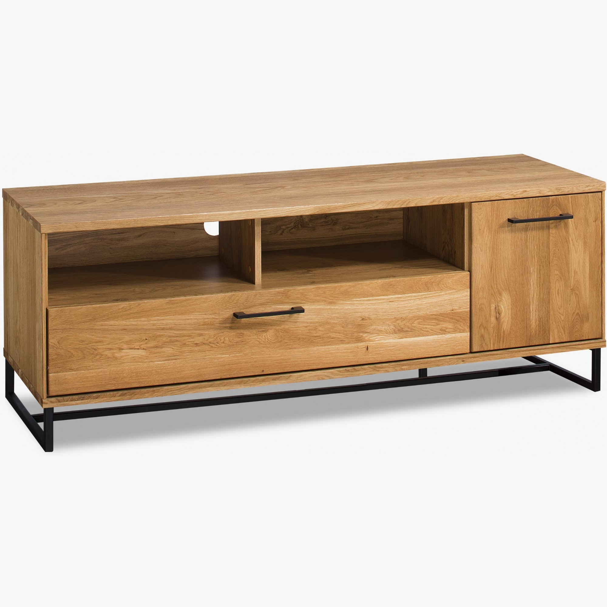 Moderner Massivholz-Möbel hergestellt aus Eichenholz in Kombination mit wunderschöner natürlicher Eichenfurnier, gefertigt im industriellen Stil. Der Charakter der Kollektion sind matte schwarze Griffe und Metallbeine in Schwarz in Kombination mit natürlichem Holz. Die Möbel sind für moderne Lofts geeignet, aber auch für Ihre Wohnung, die Sie mit originellen Möbeln aufwerten möchten. Ein wunderschönes Merkmal der gesamten Kollektion ist, dass die Möbel auf schwarzen Metallbeinen stehen.