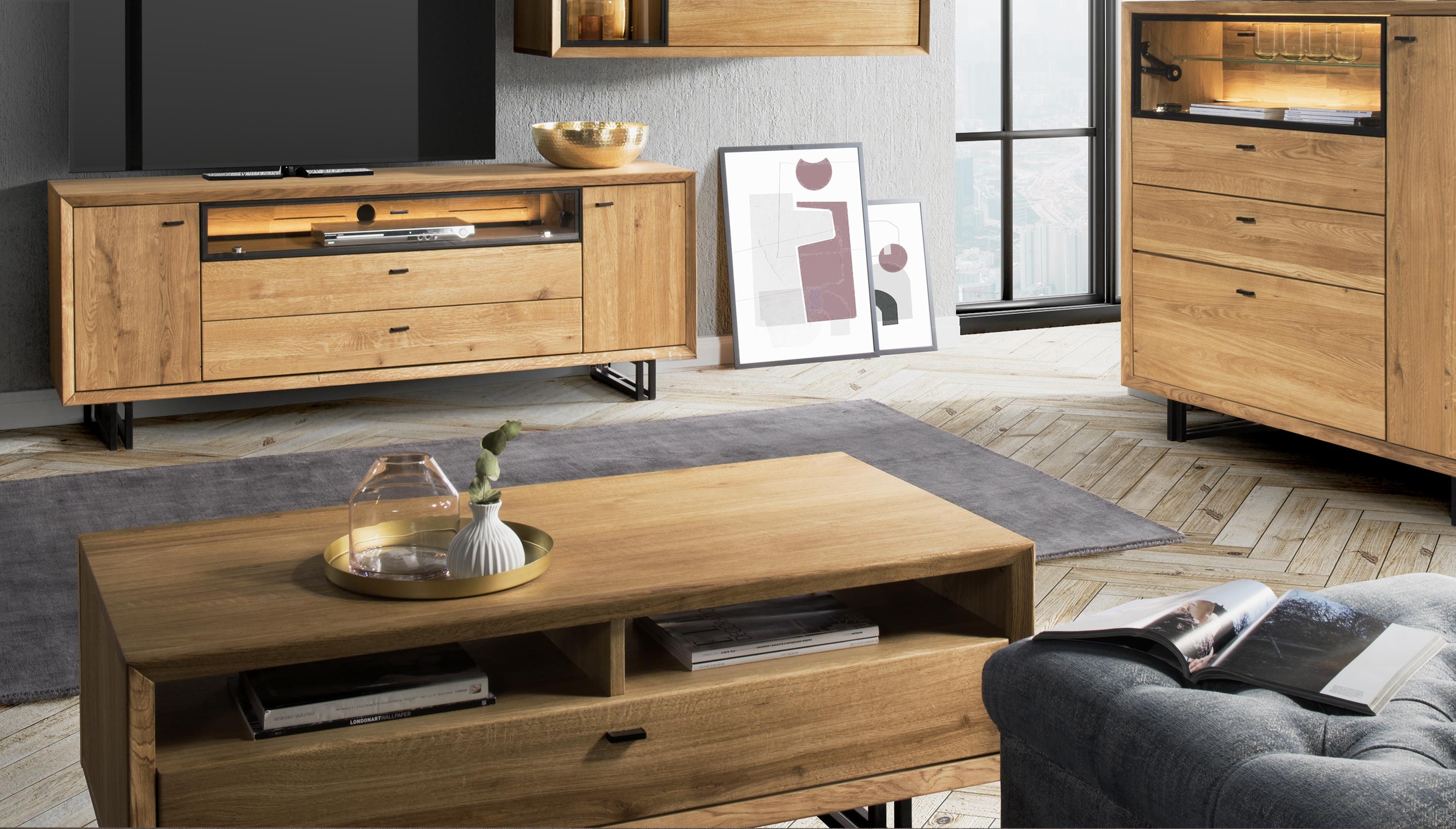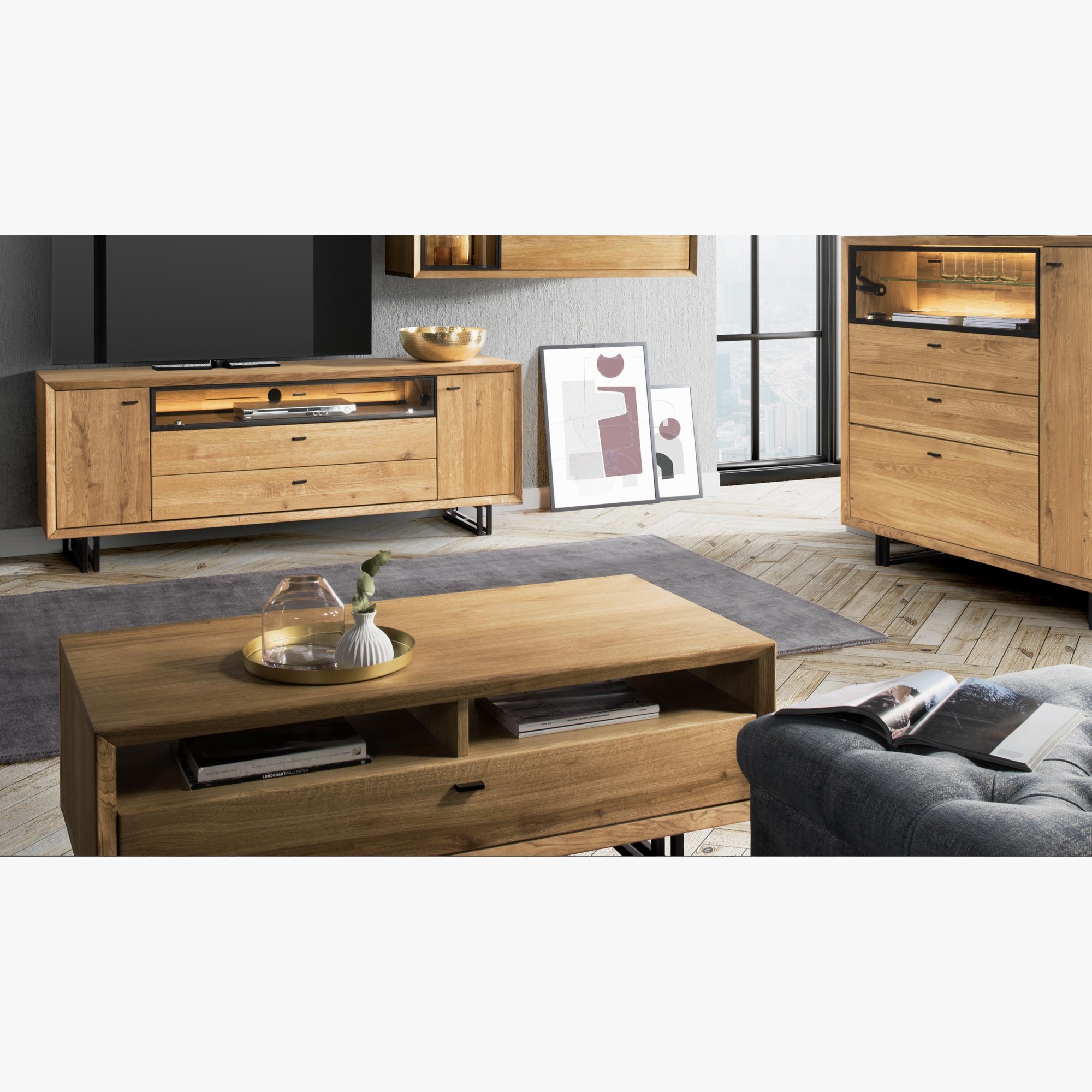 Wirklich exklusiv und designorientiert, das sind die Hauptmerkmale der Eichenmöbel aus der Kollektion für das Jahr 2020 mit dem Namen VILO. Eichenmöbel Vilo sind hauptsächlich für das Wohnzimmer bestimmt, wo Sie im Möbeltyp TV-Kommoden, Vitrinen, Regale und einen wirklich stilvollen Couchtisch finden. Selbstverständlich sind Türen und Schubladen mit leisem Soft-Close-Verschluss ausgestattet.
