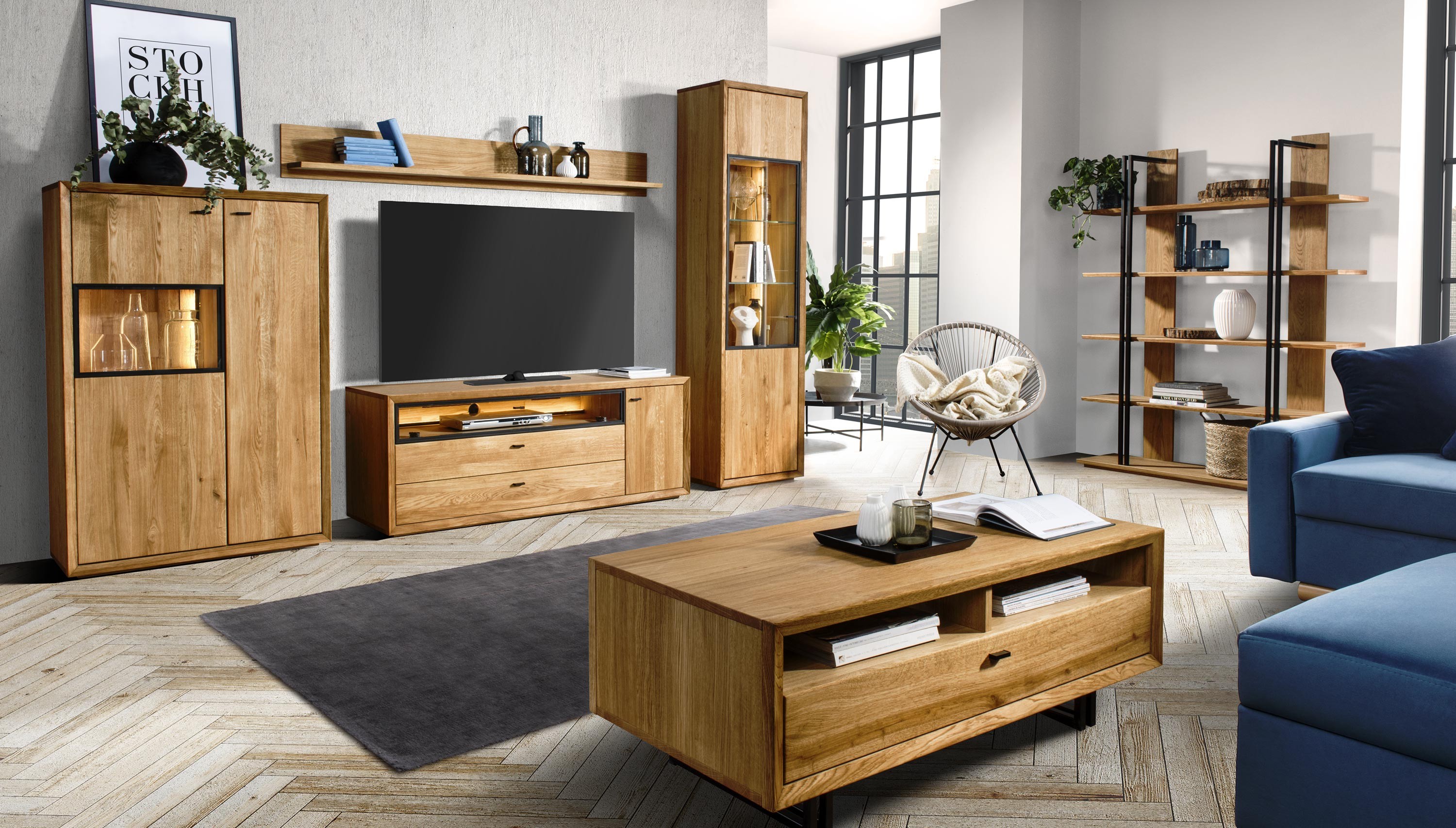 Wirklich exklusiv und designorientiert – das sind die Hauptmerkmale der Eichenmöbel aus der Kollektion VILO für das Jahr 2020. Die Eichenmöbel Vilo sind vor allem für das Wohnzimmer bestimmt, wo Sie verschiedene Möbeltypen wie TV-Kommoden, Vitrinen, Regale und einen wirklich stilvollen Couchtisch finden. Selbstverständlich sind Türen und Schubladen mit geräuschlosem Soft-Close-Verschluss ausgestattet.