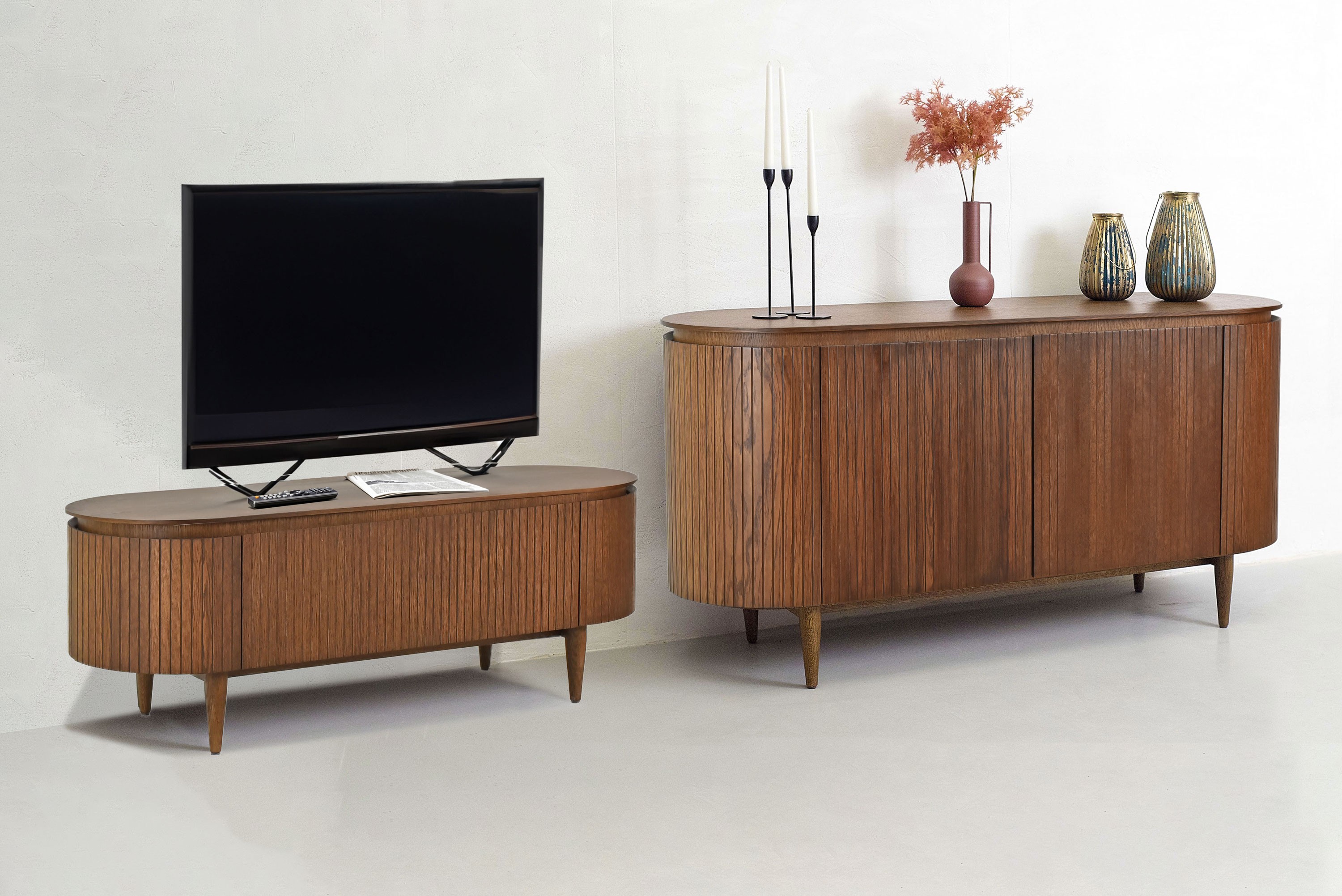 Abgerundetes TV-Möbel aus Nussbaum, Miami
