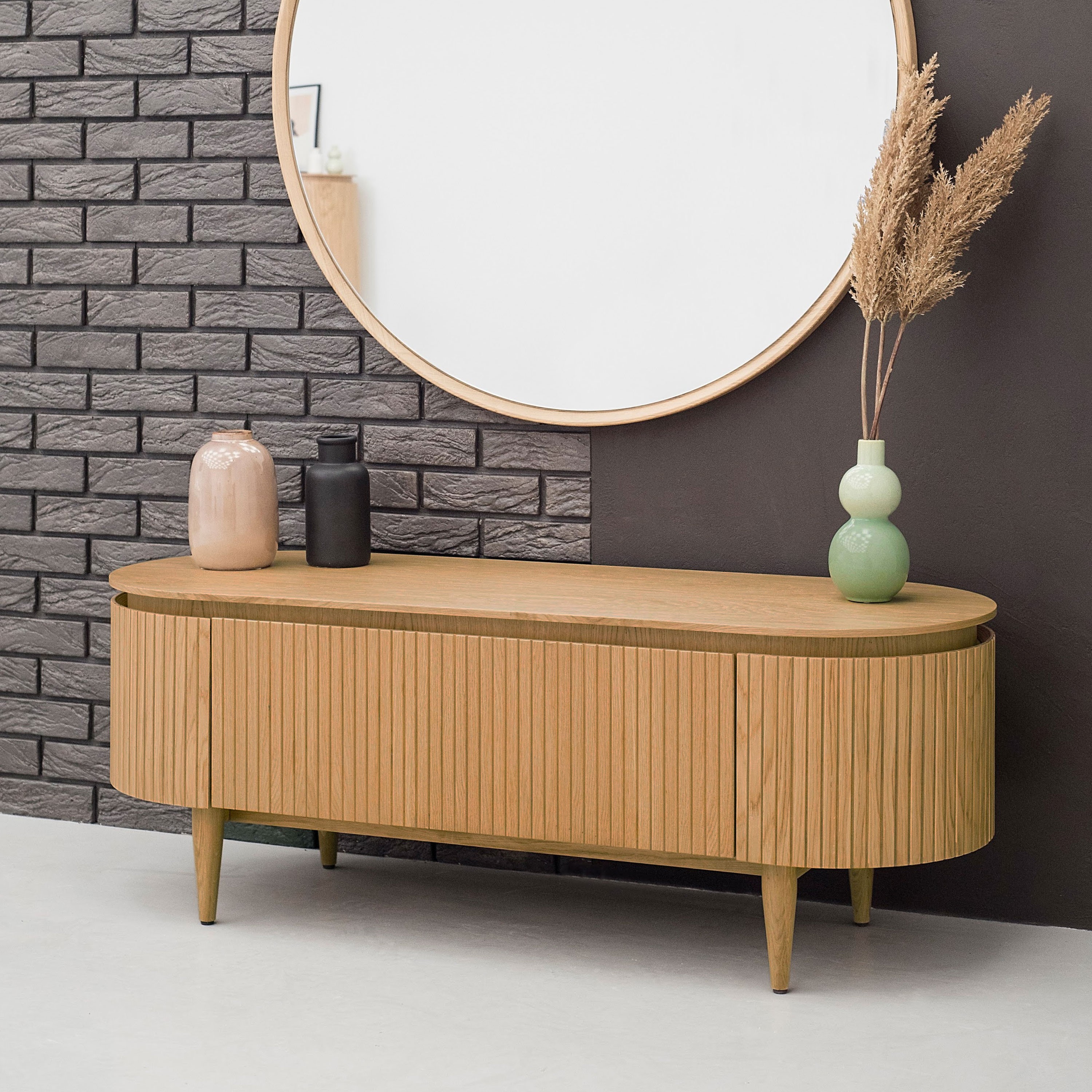 Abgerundete TV-Kommode Farbe Eiche