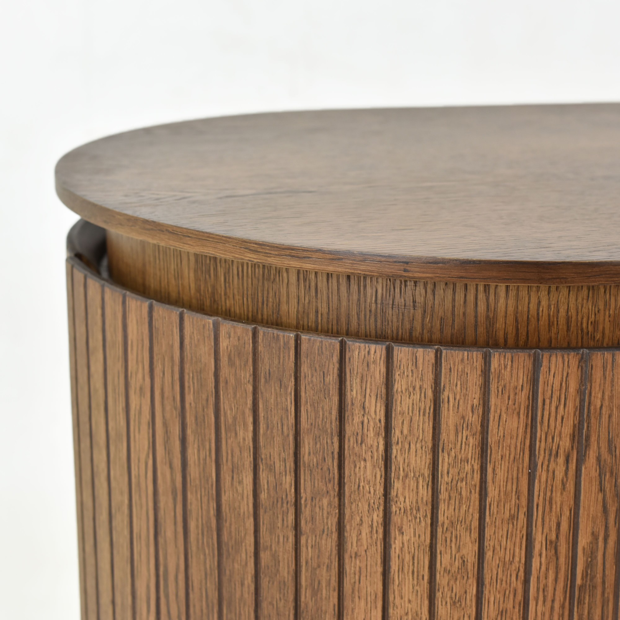 Praktische Oberflächenbehandlung: matter Lack schützt nicht nur Ihr Möbelstück vor Beschädigungen, sondern hebt auch die natürliche Schönheit des Holzes hervor und verleiht ihm ein luxuriöses Aussehen. Lamellen an den Fronten und die abgerundete Form der Möbel verleihen der Miami-Kollektion ein einzigartiges Aussehen, das zu einem sofortigen Blickfang in Ihrem Zuhause wird.