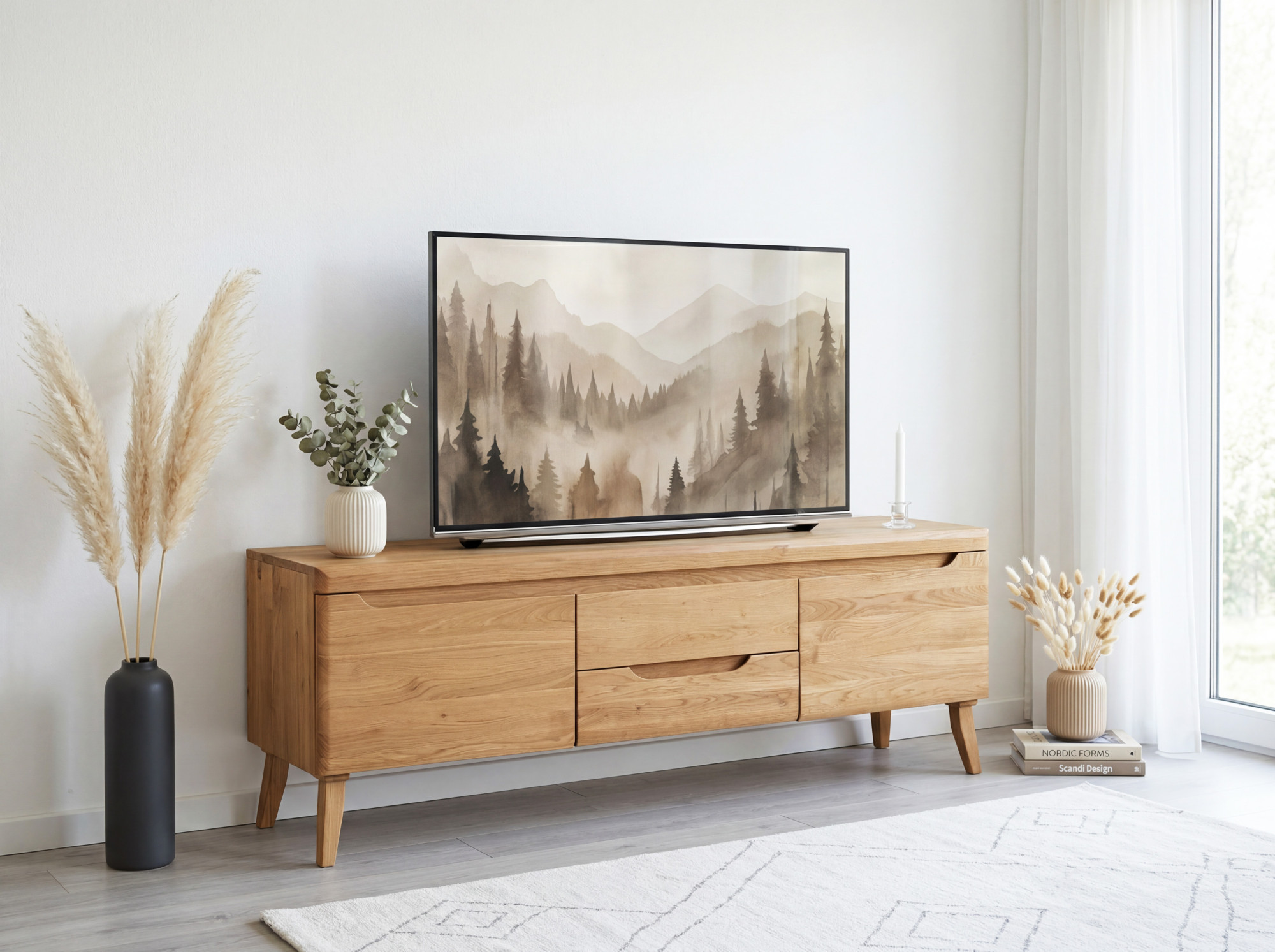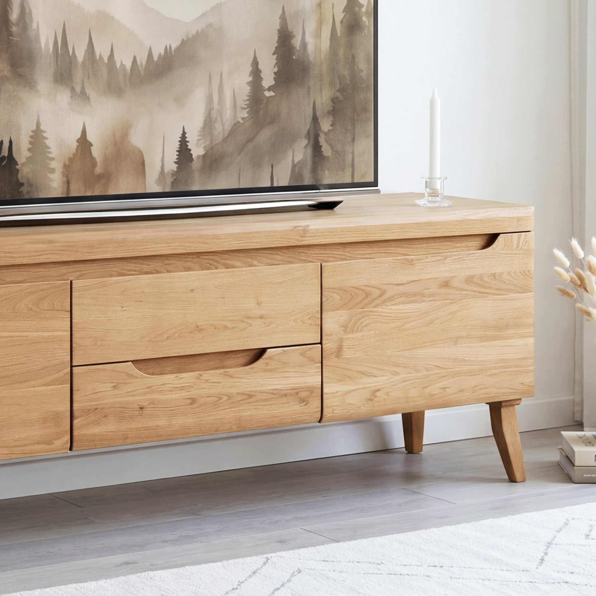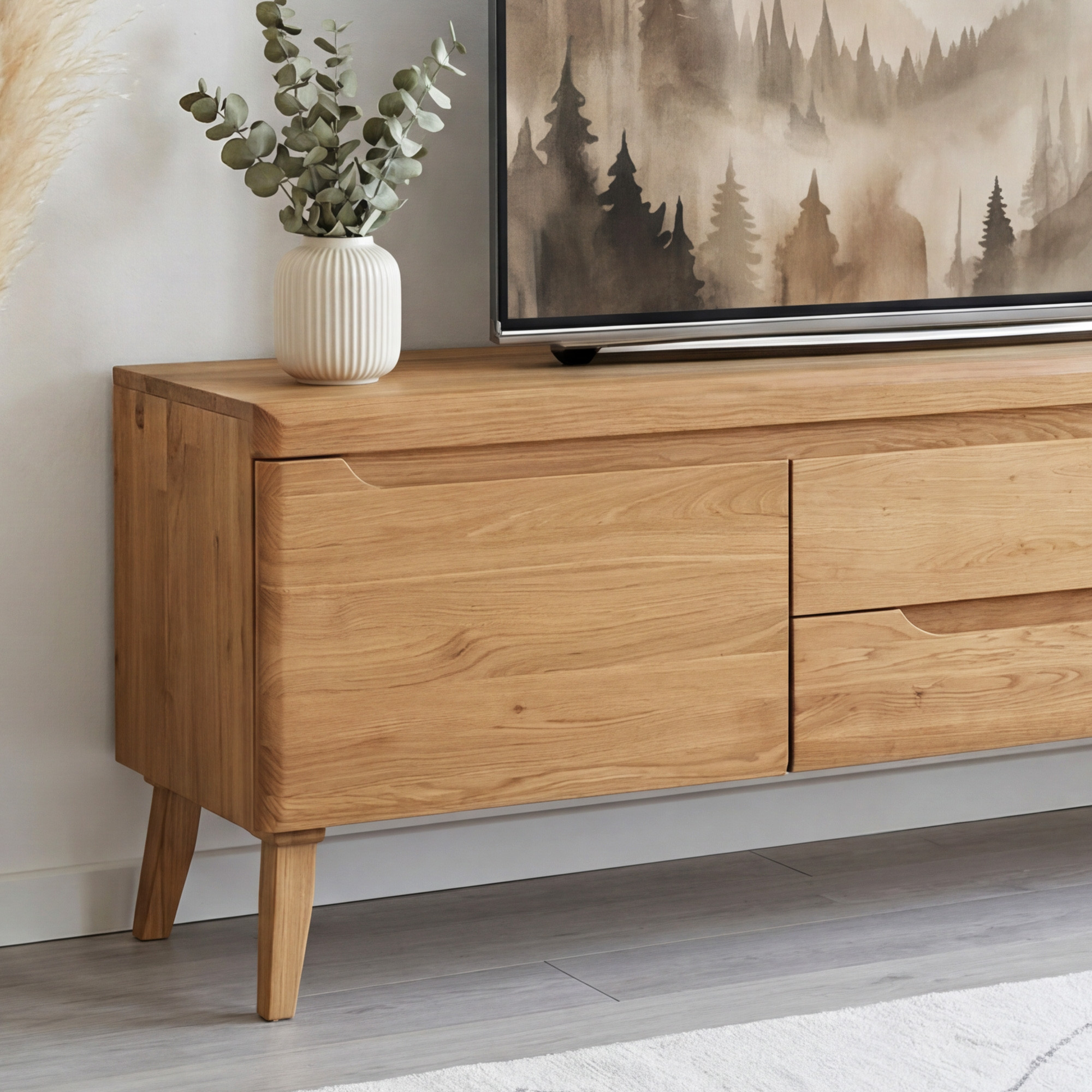 Eiche TV-Schrank Prag auf Holzfüßen – massives skandinavisches Design 160 x 58 cm