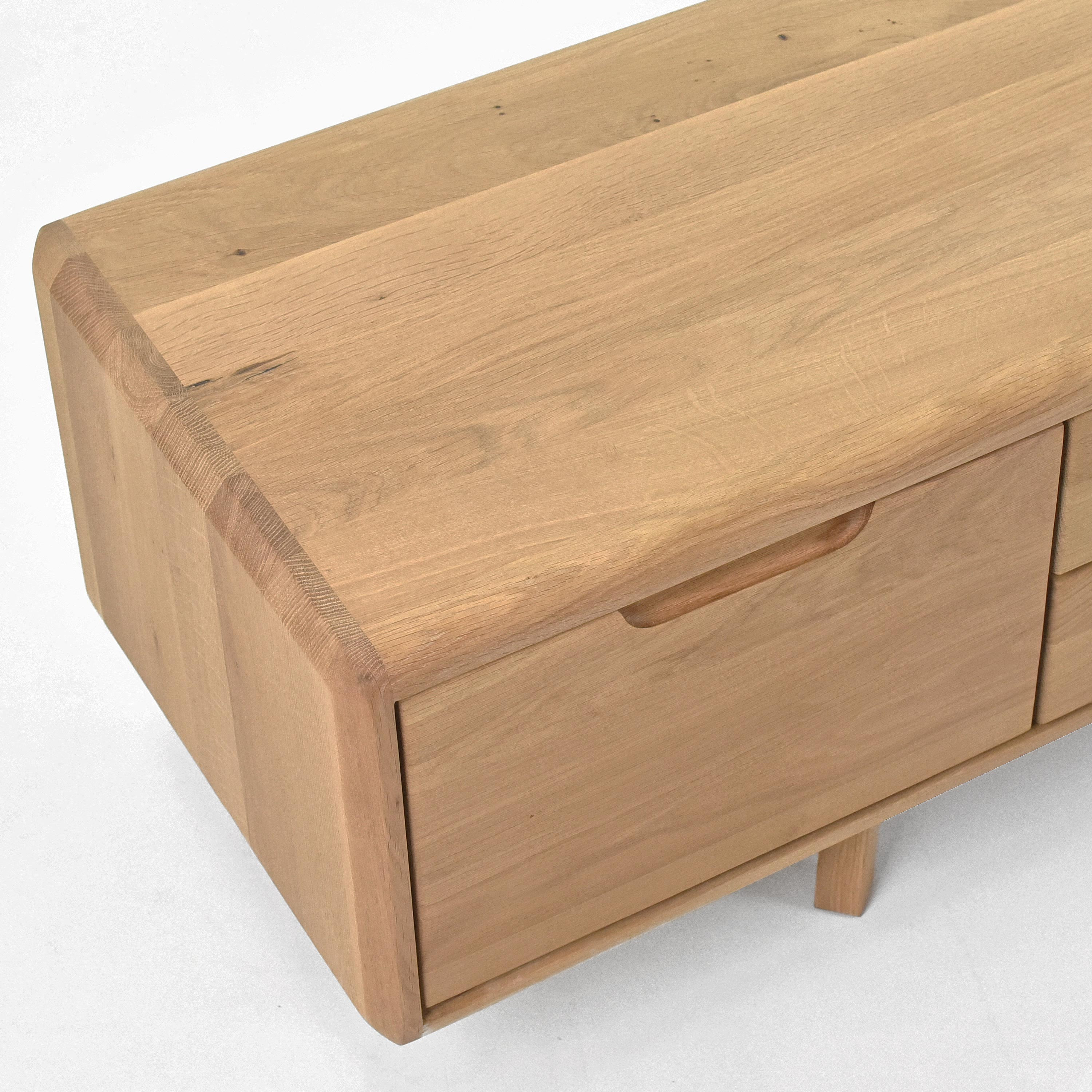 Neue Eichenmöbel-Kollektion 2024: Entdecken Sie die Schönheit modernen skandinavischen Designs in unserer exklusiven Kollektion, vorgestellt im Jahr 2024. Diese einzigartige Kollektion ist das Ergebnis der Verbindung minimalistischen Stils mit der Verwendung ausschließlich natürlicher Materialien. Jedes Möbelstück wird aus reinem Eichenholz gefertigt, einschließlich Seiten, innerer Korpusse, Oberseiten sowie Fronttüren und Schubladen. Der Fokus auf Detail und Qualität zeigt sich an den abgerundeten Kanten und der überdurchschnittlichen Stärke des äußeren Korpus von bis zu 2,5 cm, was hohe Widerstandsfähigkeit und lange Lebensdauer der Möbel garantiert.