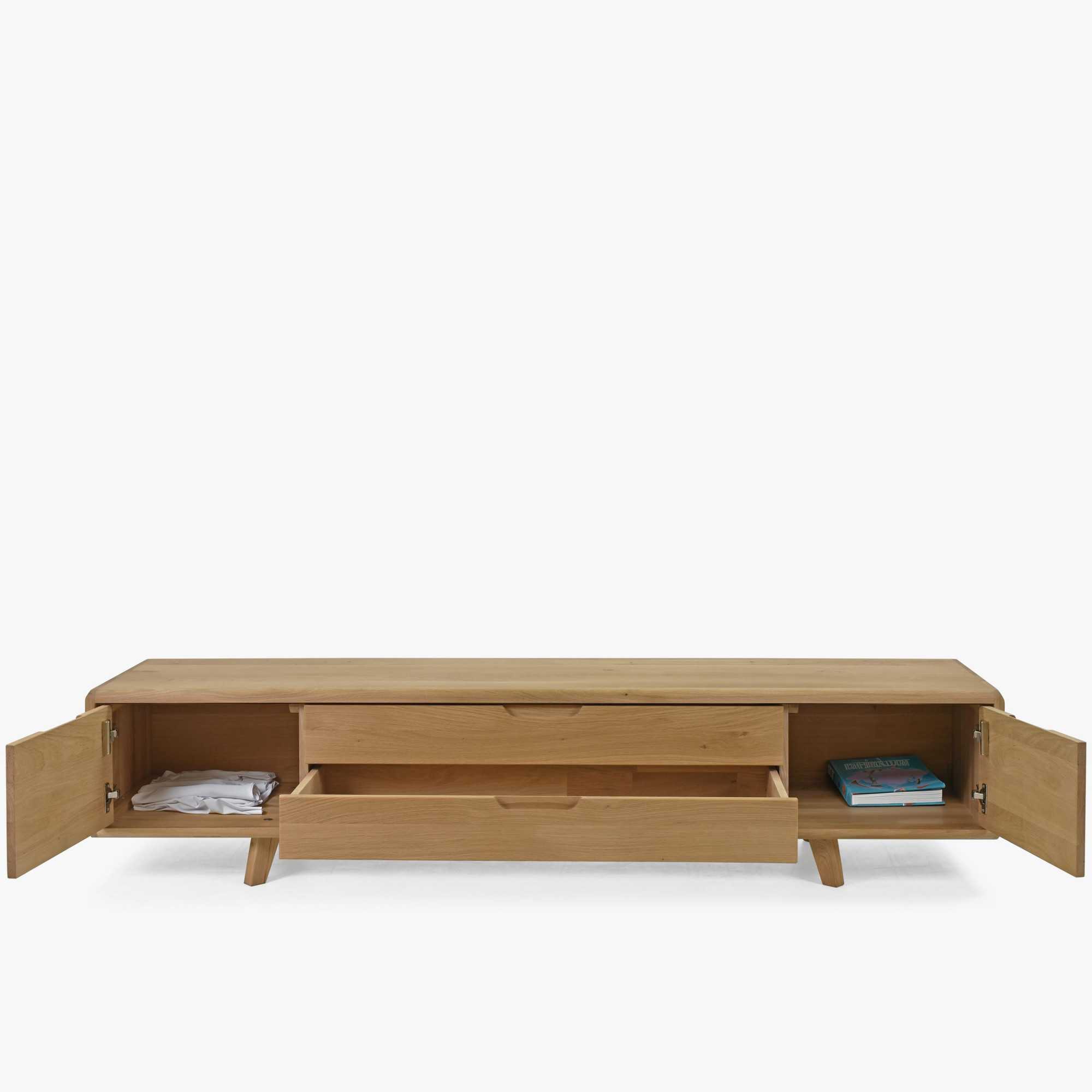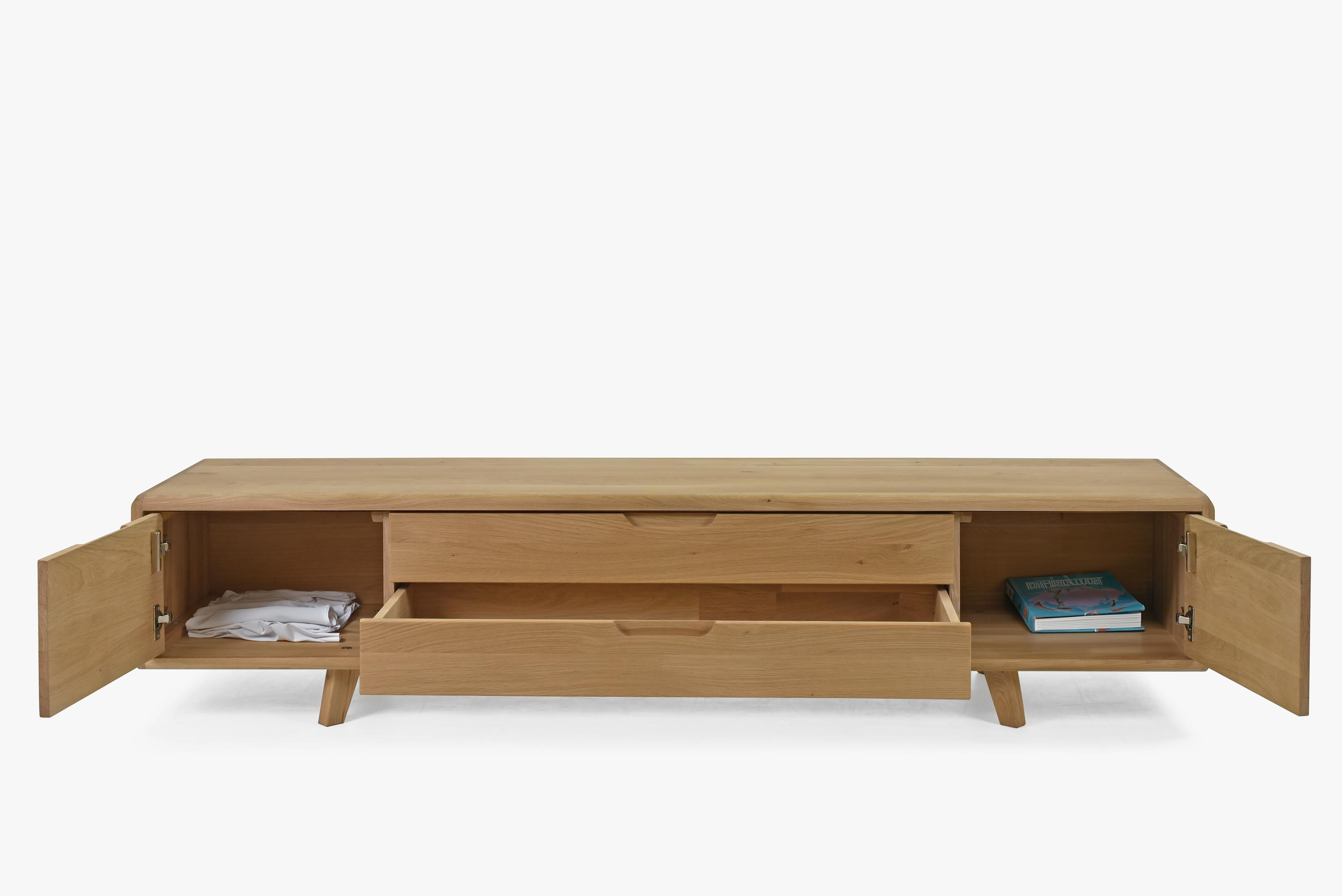Ideale Wahl für: Diese TV-Kommode ist die ideale Lösung für alle, die hochwertige und stilvolle Möbel suchen, die zugleich praktisch und funktional sind. Ihr skandinavisches Design und die Eichenholz-Ausführung schaffen eine angenehme Atmosphäre und machen den Raum gemütlich und einladend.