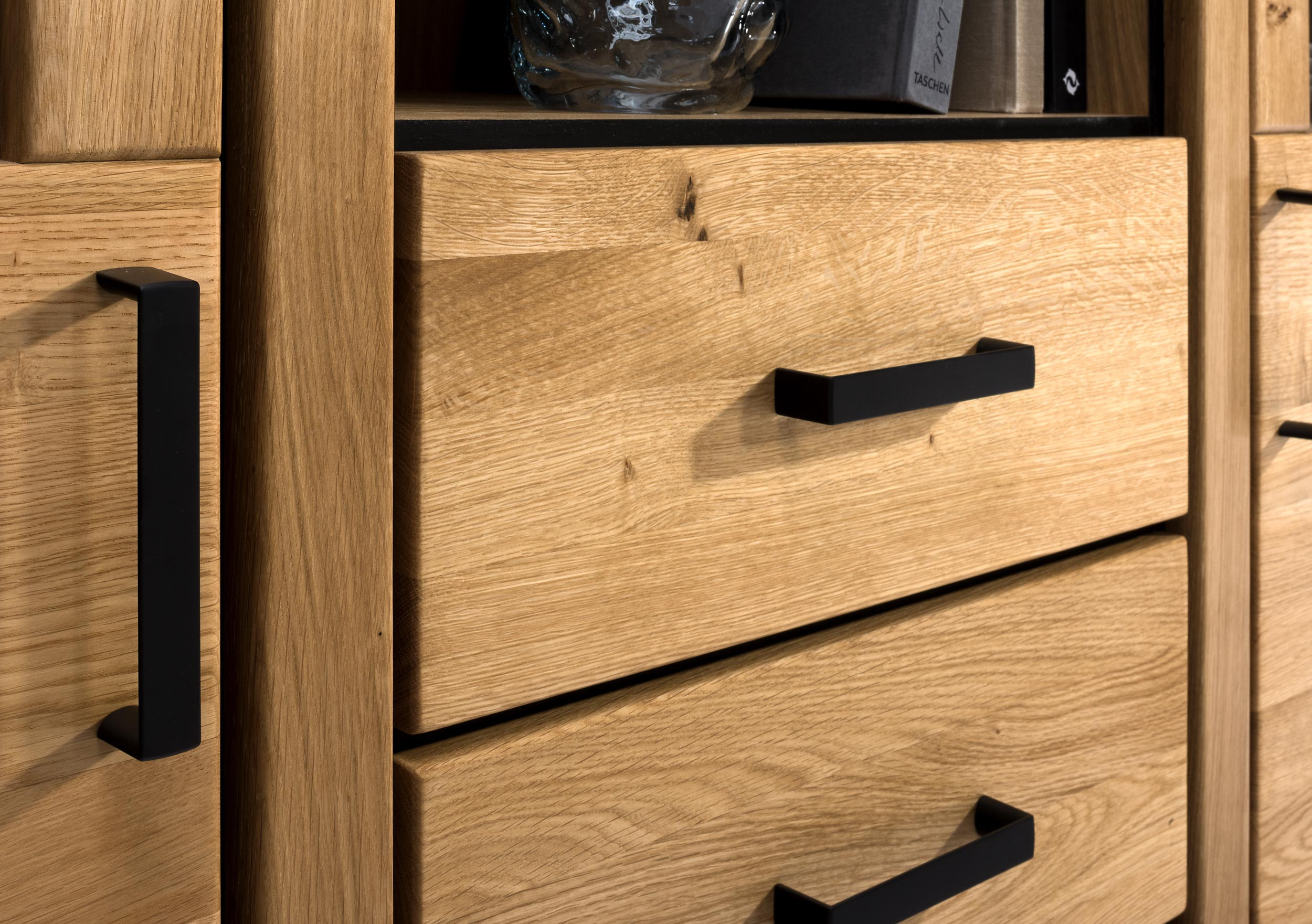 - Massives Eichenholz und natürliches Eichenfurnier für langfristige Haltbarkeit und ästhetisches Aussehen